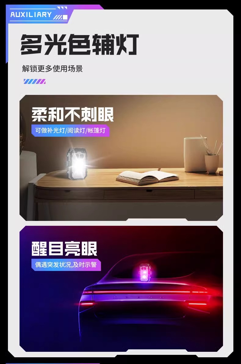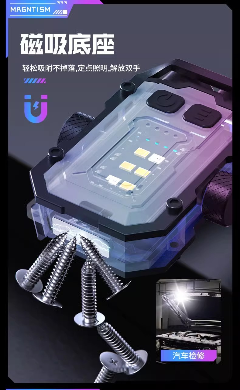 크로스보더 듀얼 LED 키체인 라이트 COB 사이드 라이트 야외 작업등 고휘도 경고등 다기능 자석 손전등