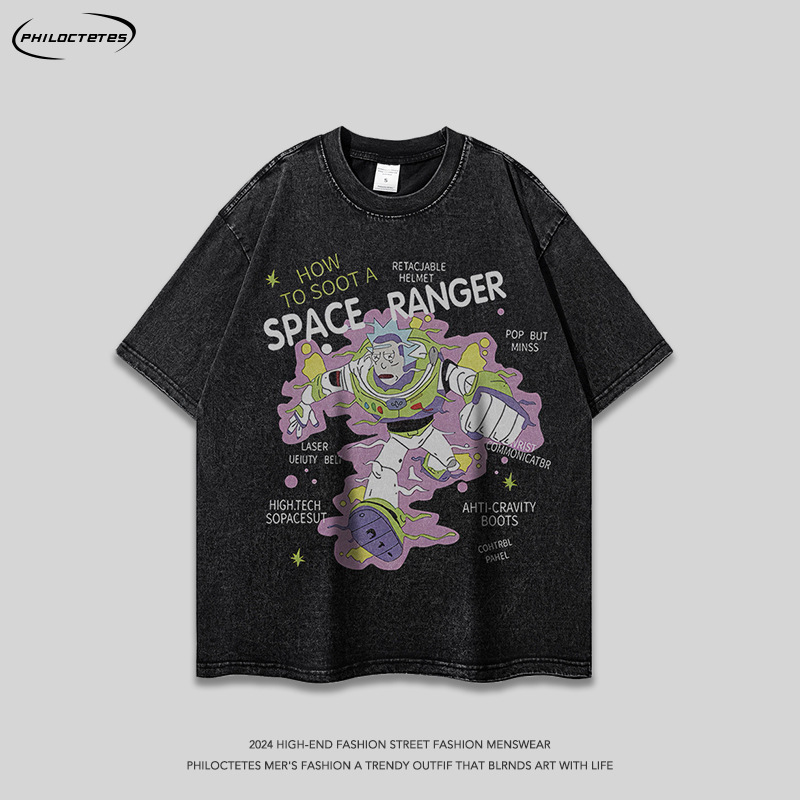 미국식 하이 스트리트 인 세탁 가능한 오래된 반팔 티셔츠 남녀 레트로 전국 트렌디 유럽과 미국 스타일 힙합 느슨한 반소매 기지