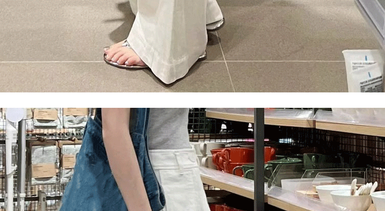 화이트 하이 허리 코튼 와이드 레그 팬츠 여성 여름 하이 엔드 데깅 짧은 스트레이트 캐주얼 팬츠 느슨한 슬리밍 봄스토어 가기