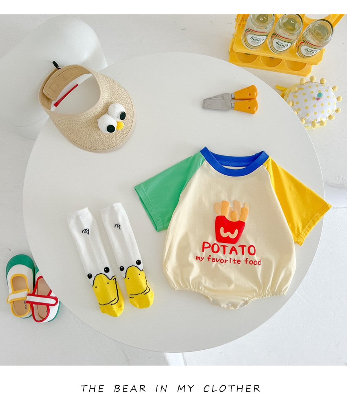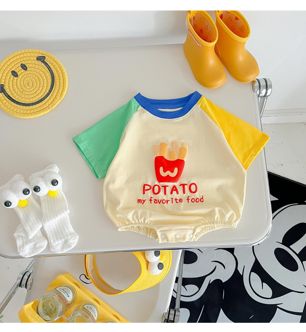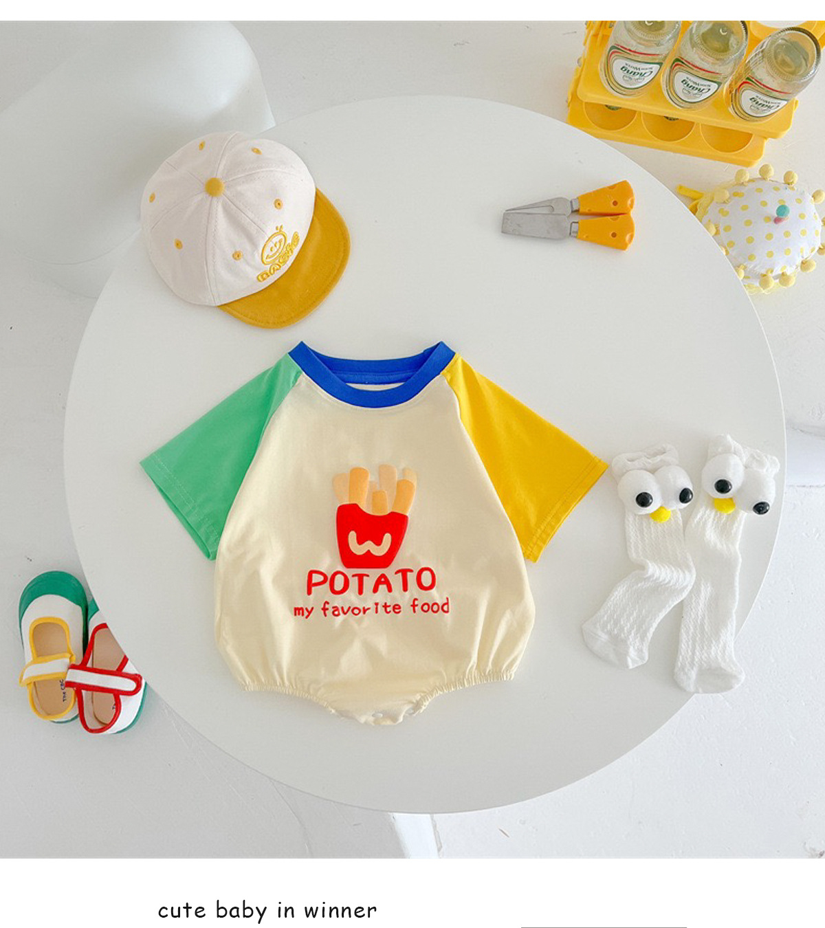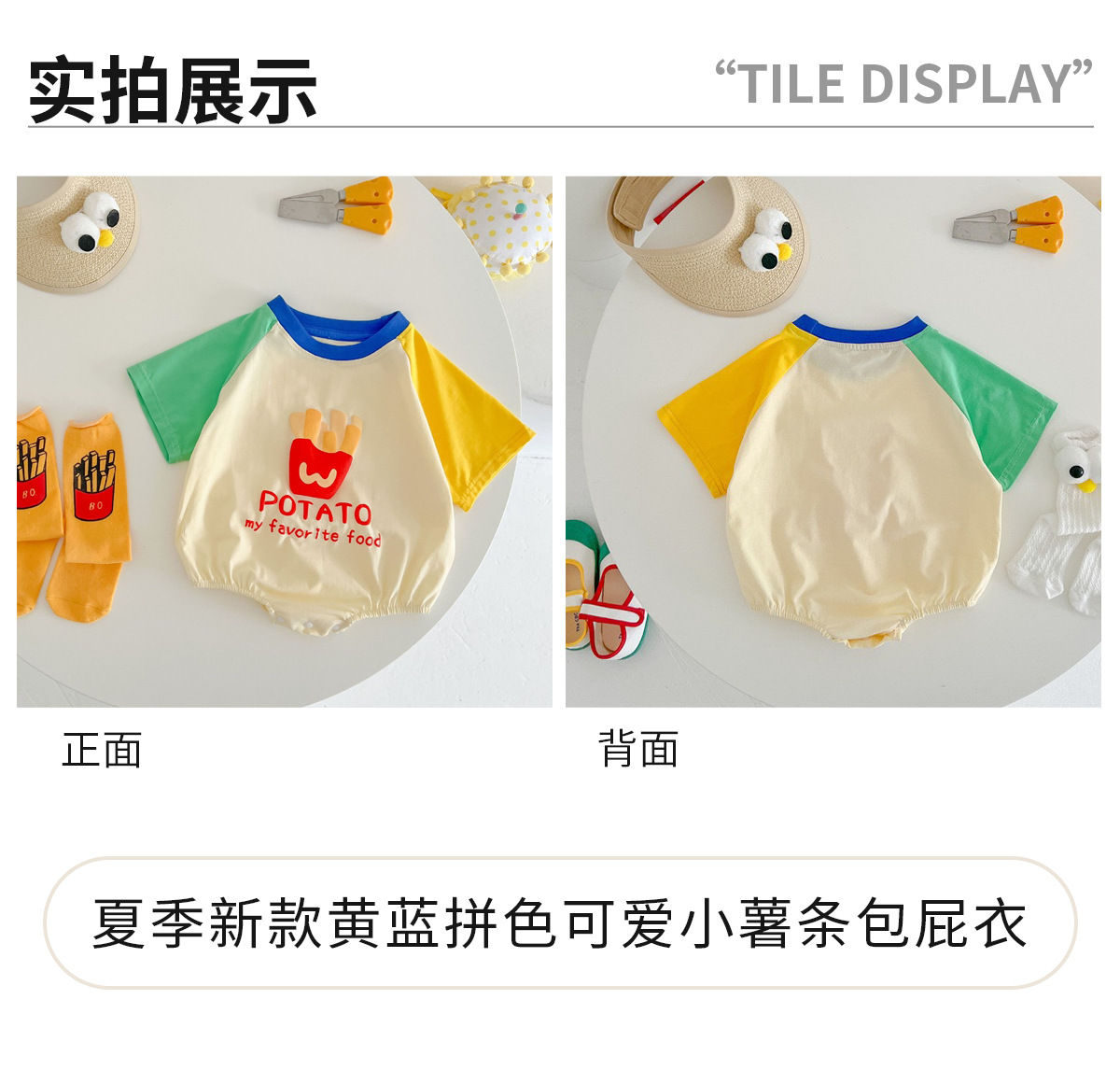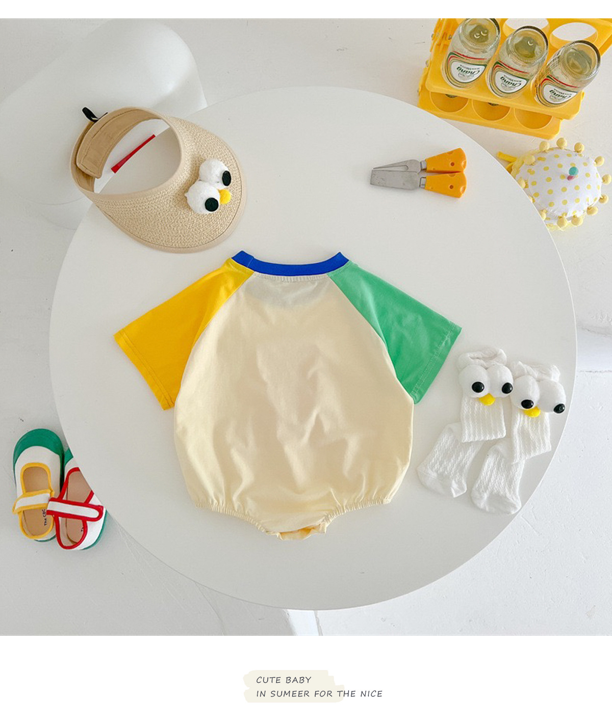2025 여름 한국식 신작 아기 컬러 매칭 반팔 하퍼 소년과 소녀 아기 둥근 목 얇은 삼각형 등반 세트 재고스토어 가기
