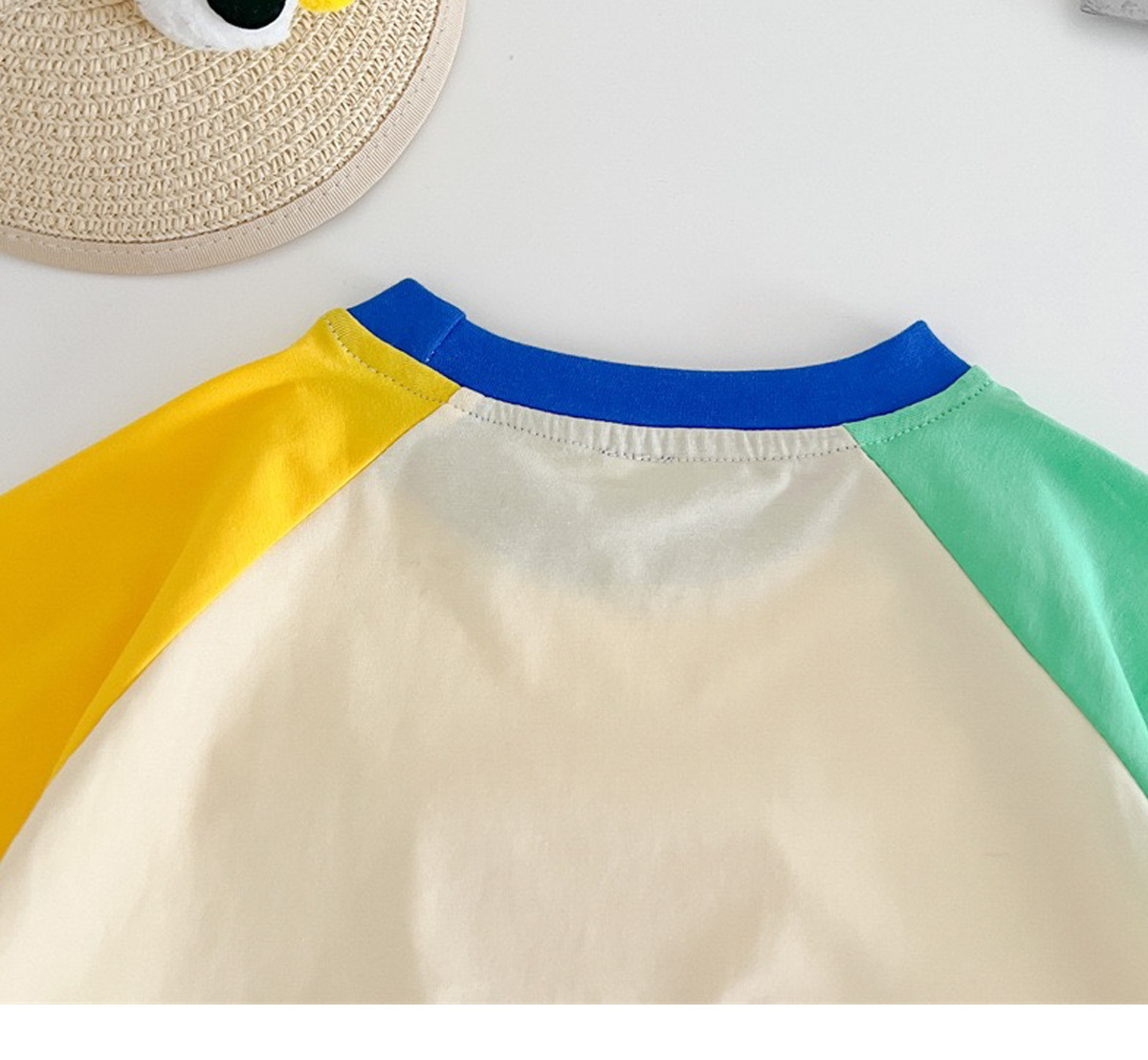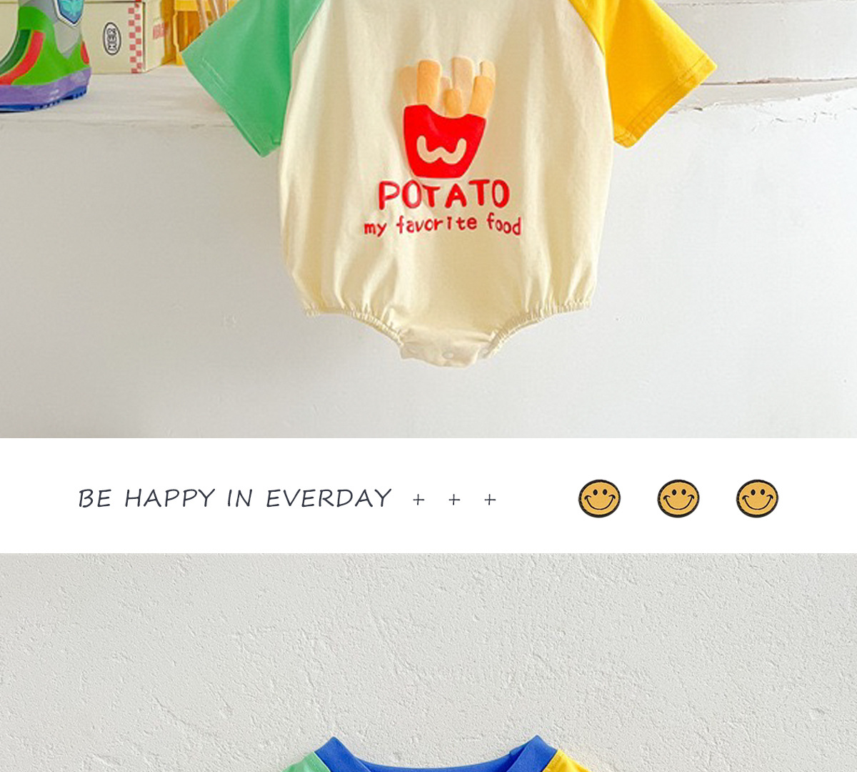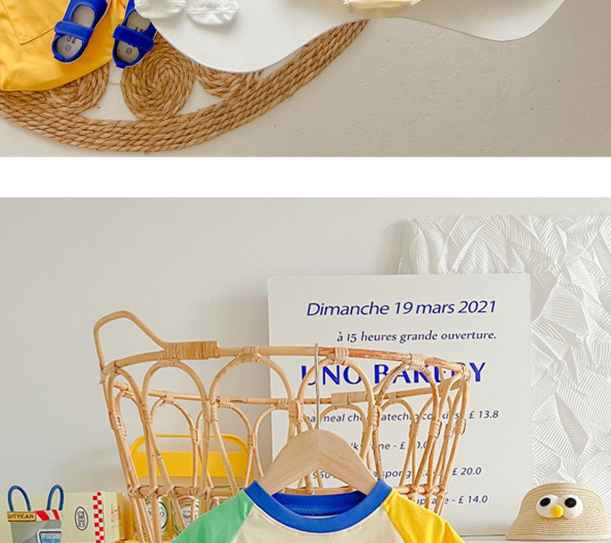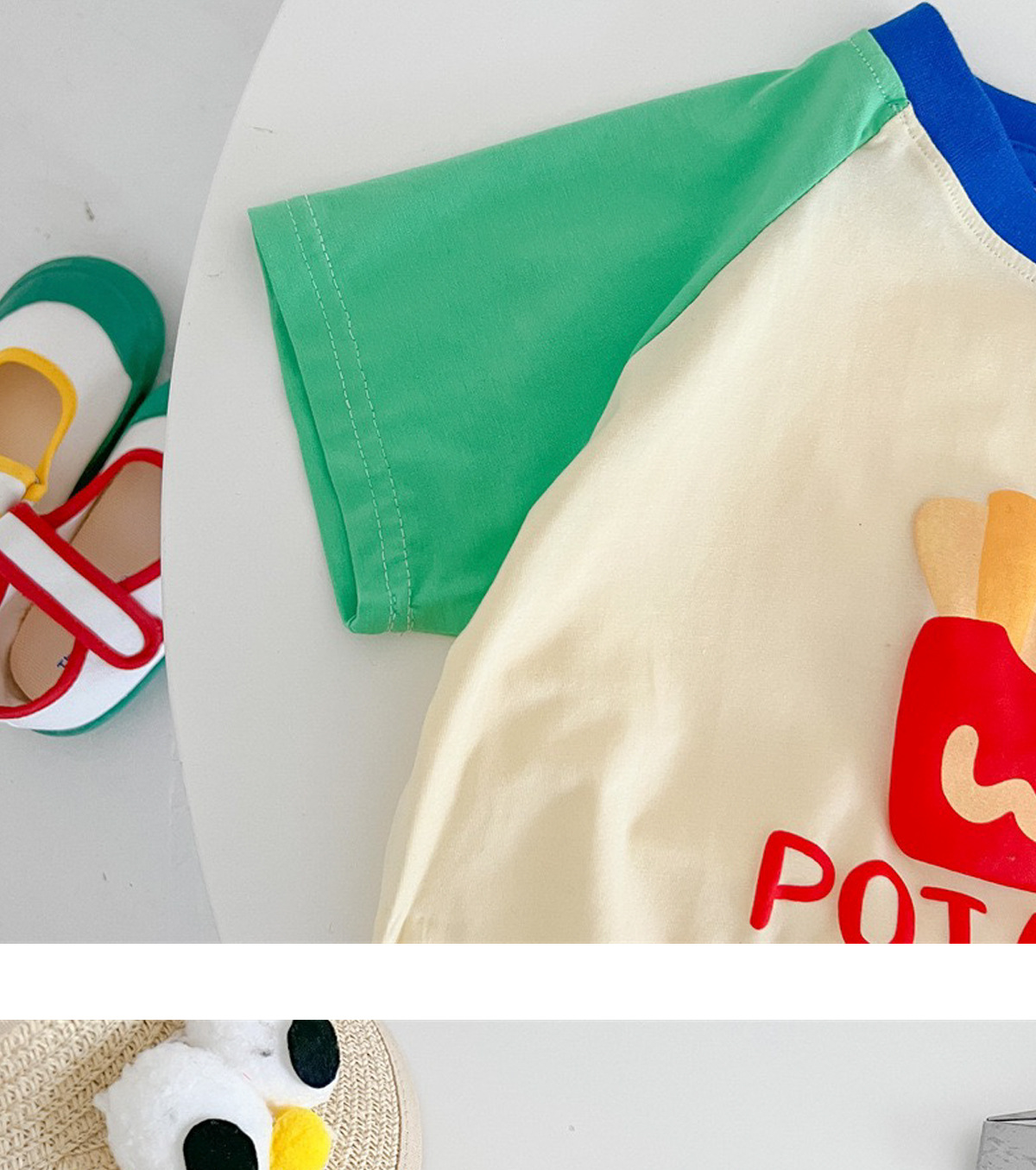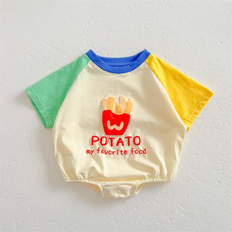 2025 여름 한국식 신작 아기 컬러 매칭 반팔 하퍼 소년과 소녀 아기 둥근 목 얇은 삼각형 등반 세트 재고스토어 가기