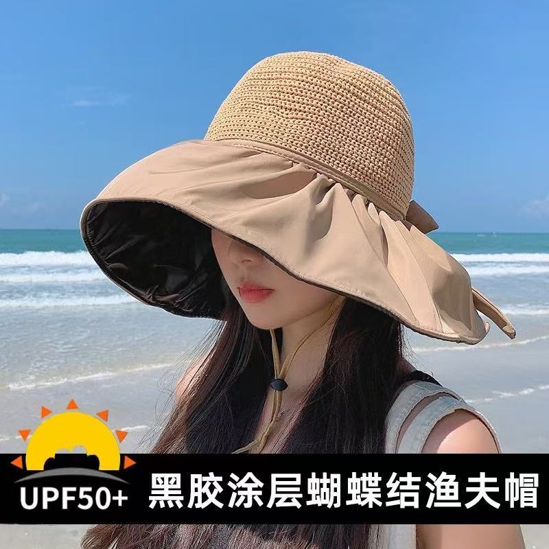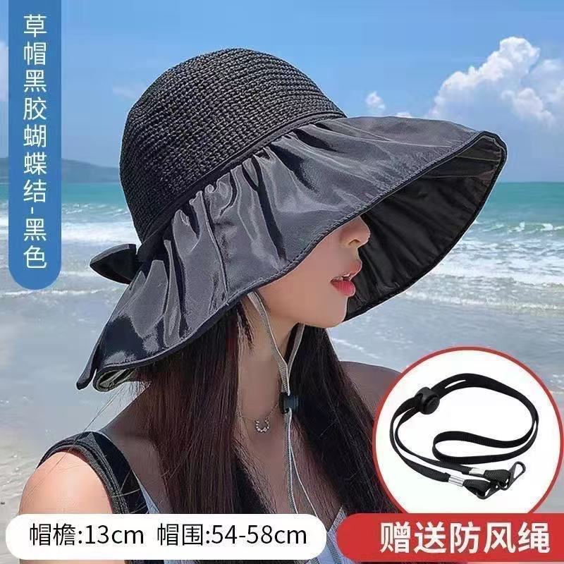 검은 고무 선 스크린 모자 여성의 자외선 차단 얼굴 차양 모자 대형 브림 어부의 모자 접이식 태양 모자 새로운스토어 가기