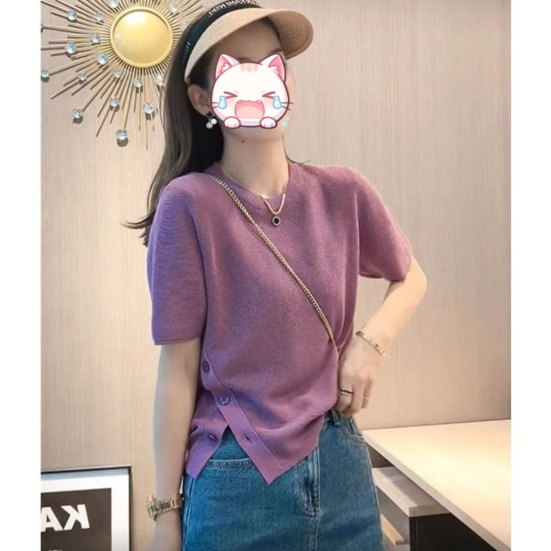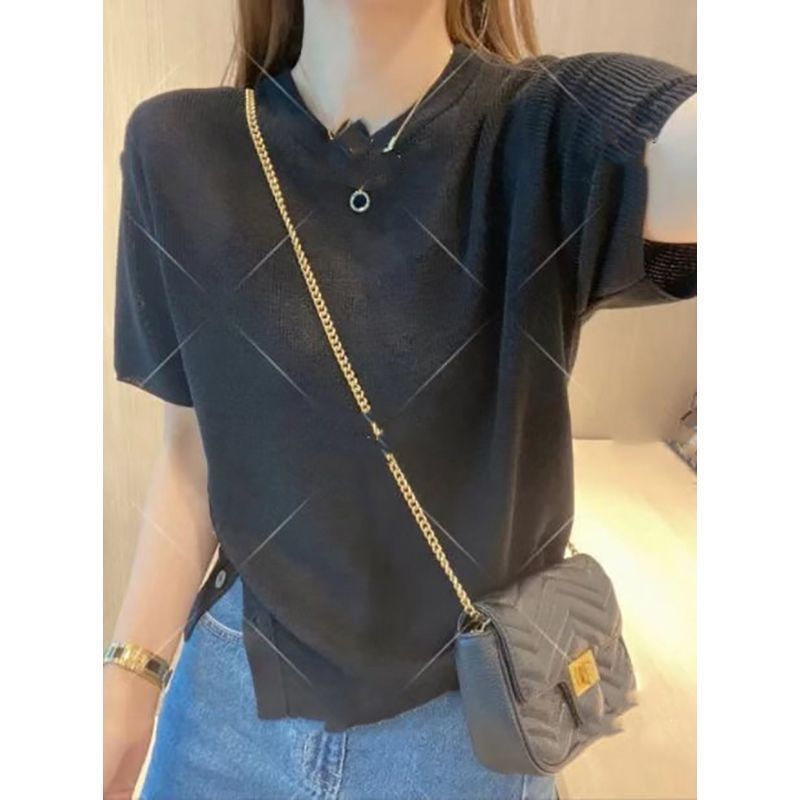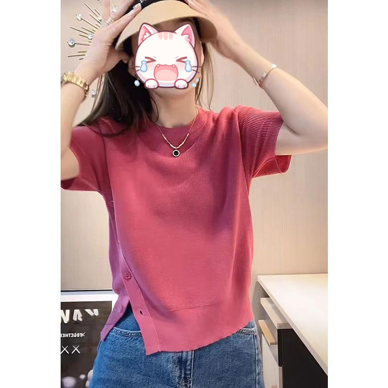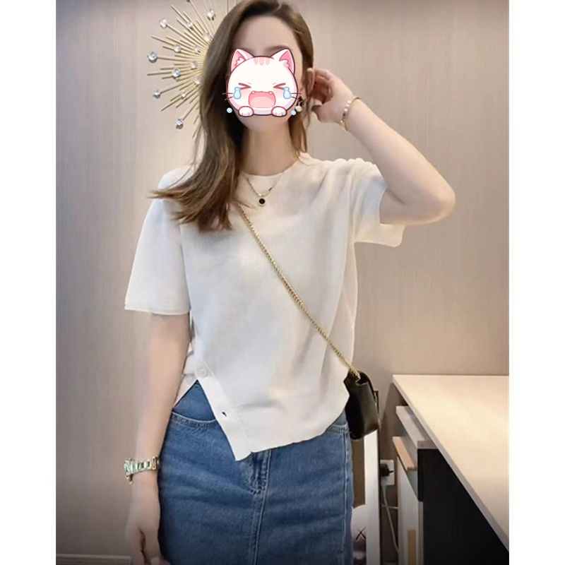 클리어런스 카운터, 여성 의류 컷 라벨 철회 한국 디자인 센스 짧은 소매 아이스 실크 니트 셔츠 탑