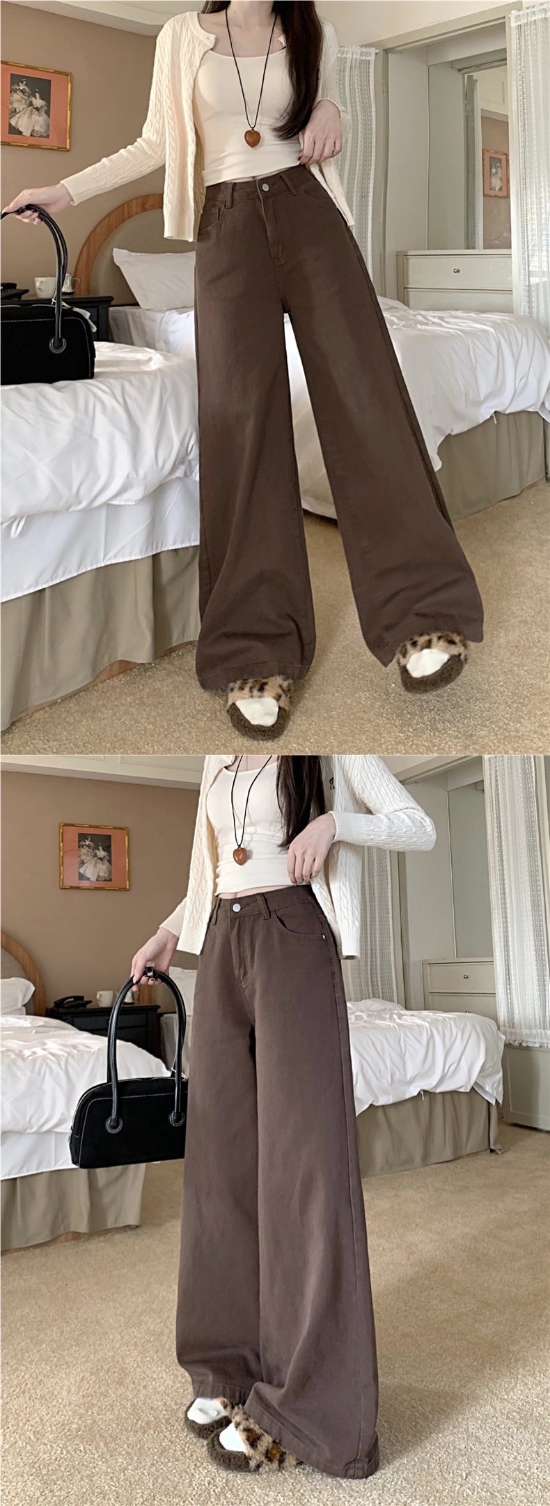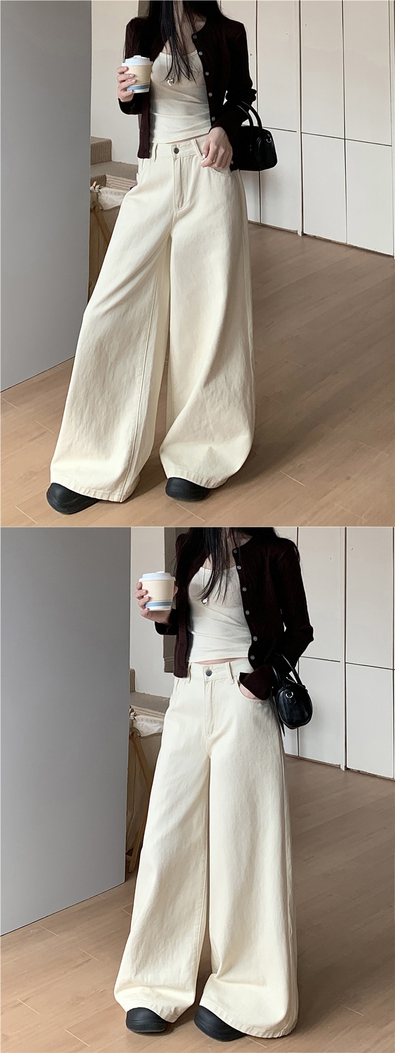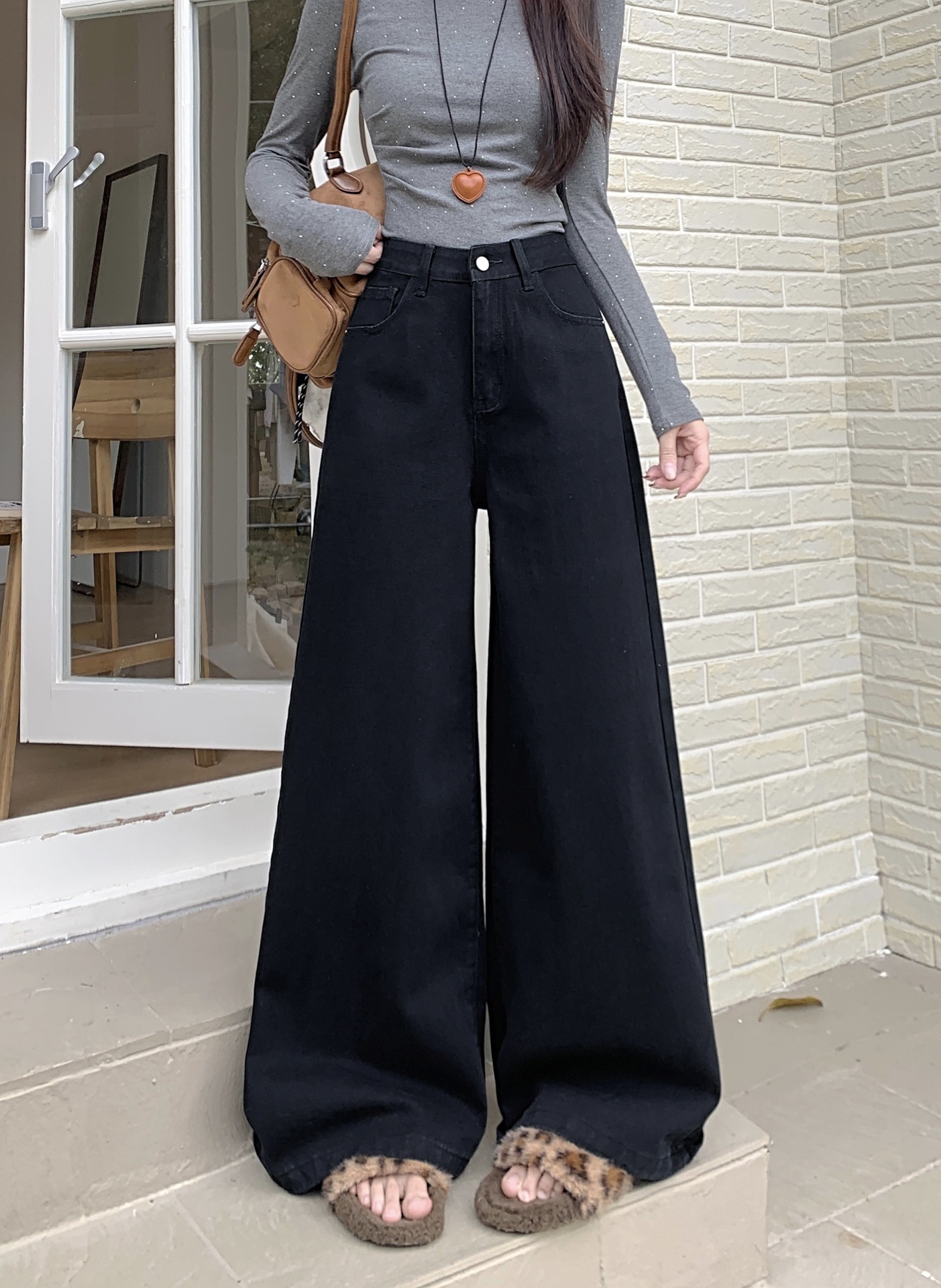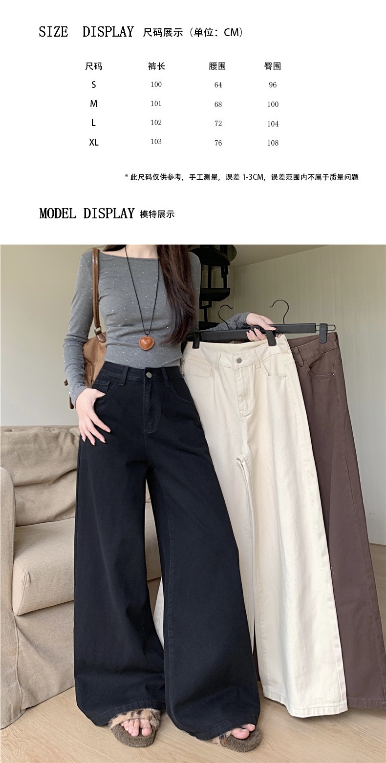 레트로 디자인 센스 높은 허리 슬리밍 넓은 다리 청바지 2025 봄 여성을위한 새로운 느슨한 올매치 트렌디 바지스토어 가기