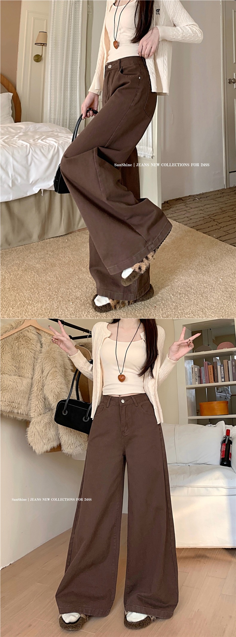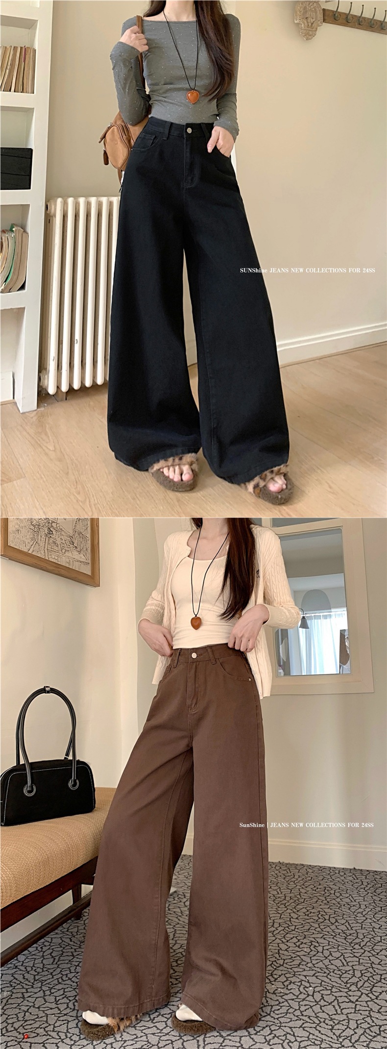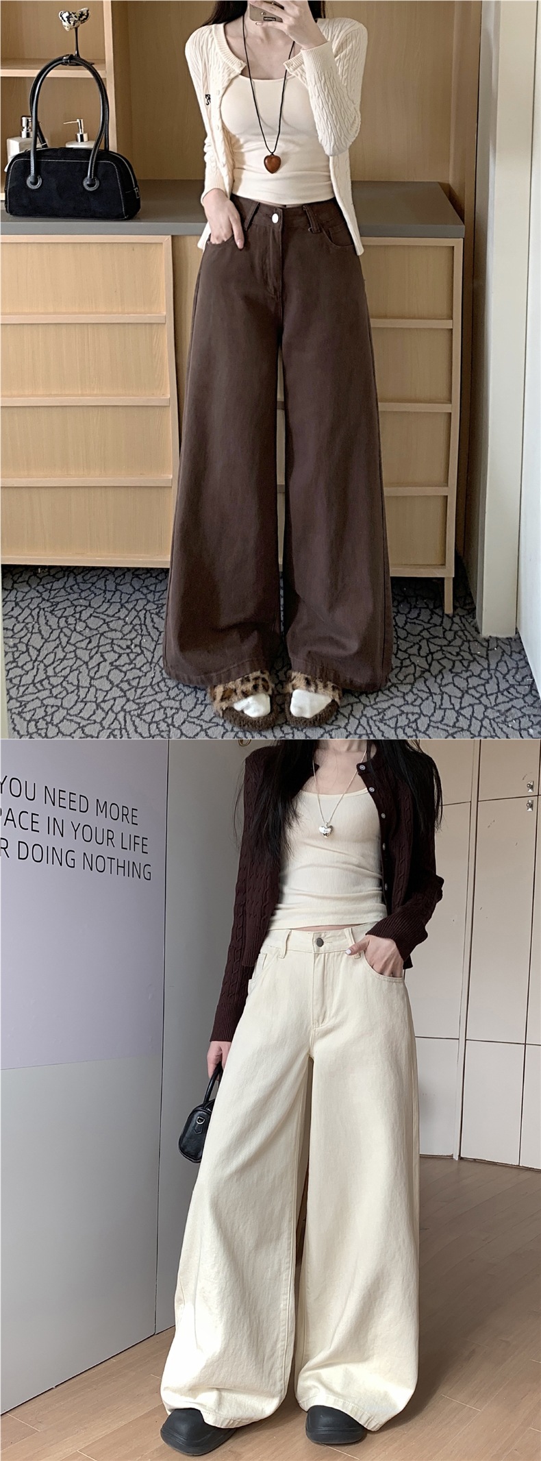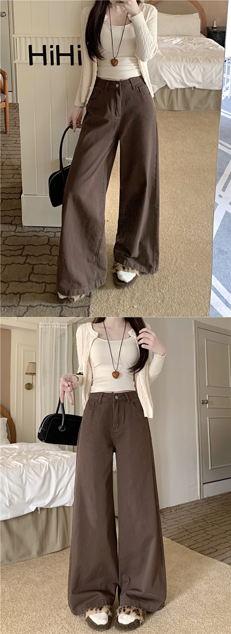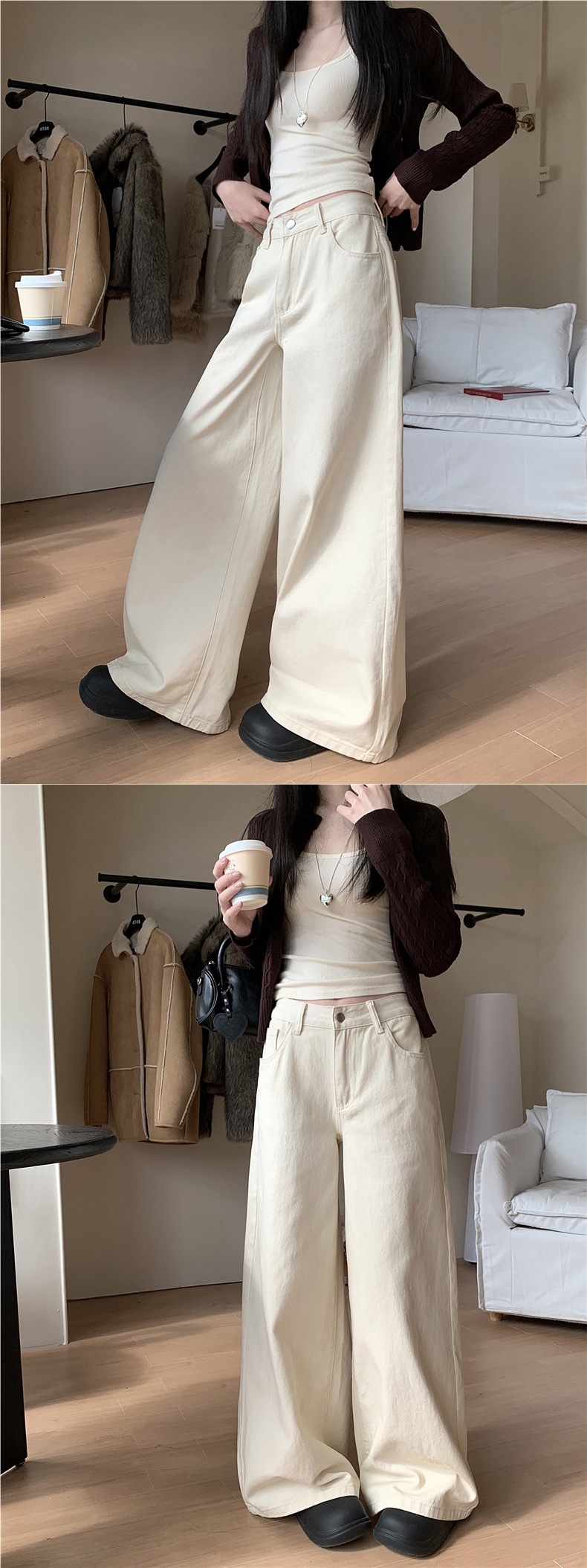 레트로 디자인 센스 높은 허리 슬리밍 넓은 다리 청바지 2025 봄 여성을위한 새로운 느슨한 올매치 트렌디 바지스토어 가기