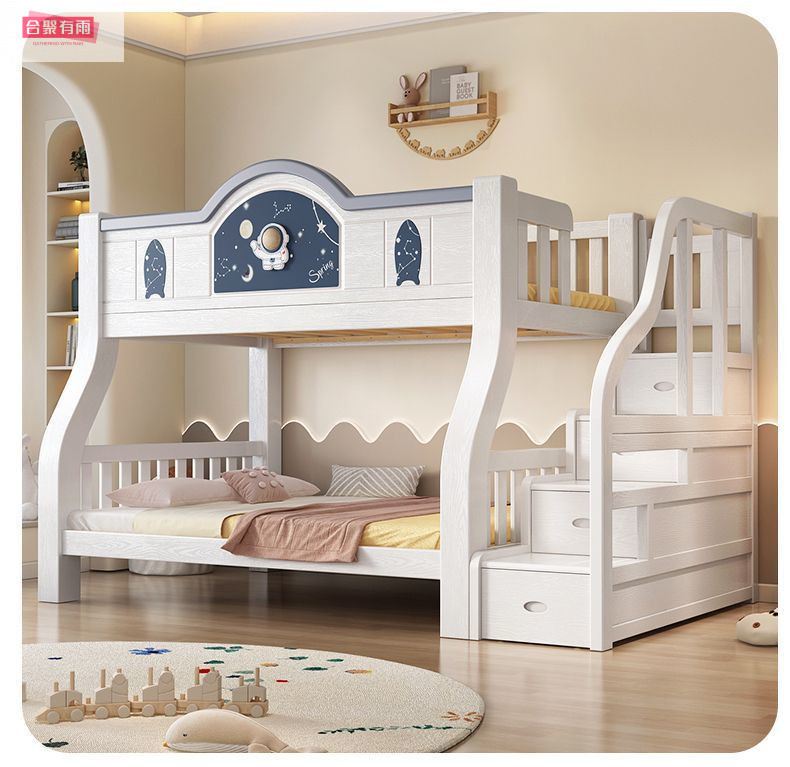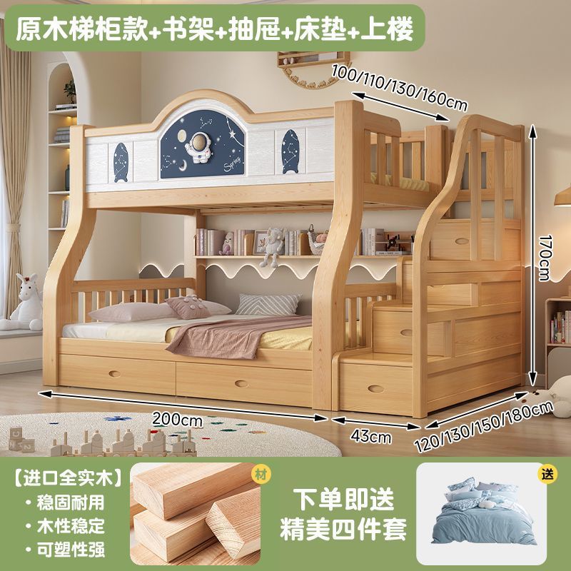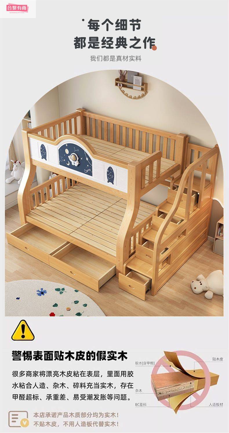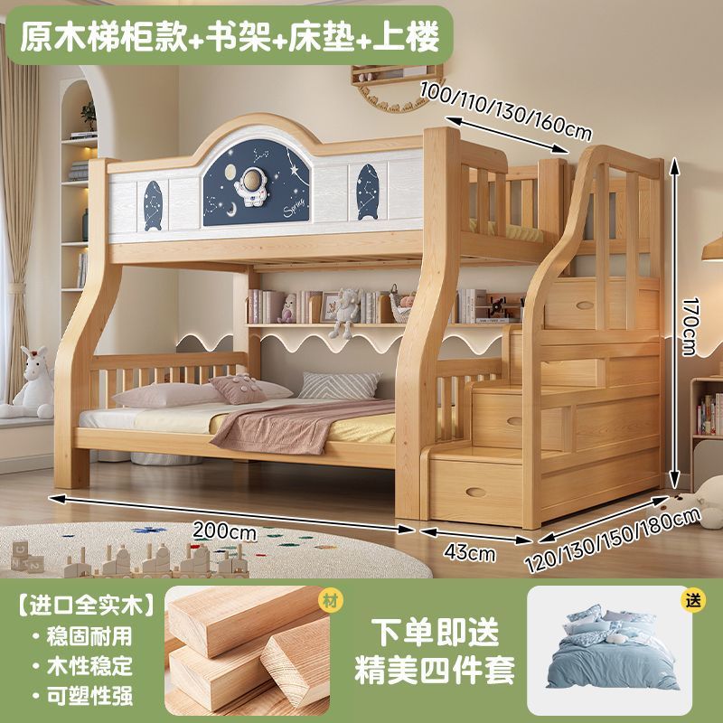 Heju Youyu 단단한 나무 침대 이층 침대 어린이 침대 2 층 다기능 높고 낮은 더블 침대 이층 작은 아파트
