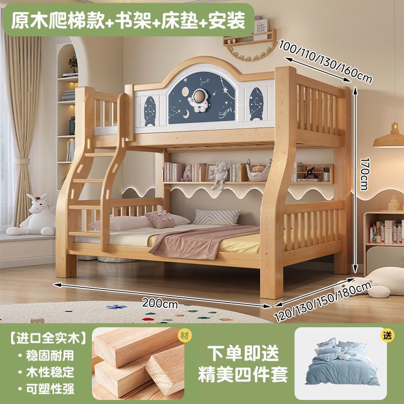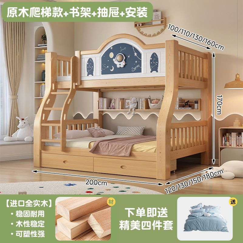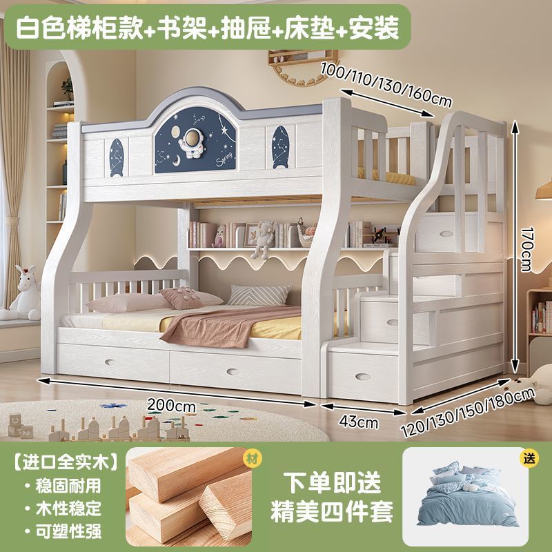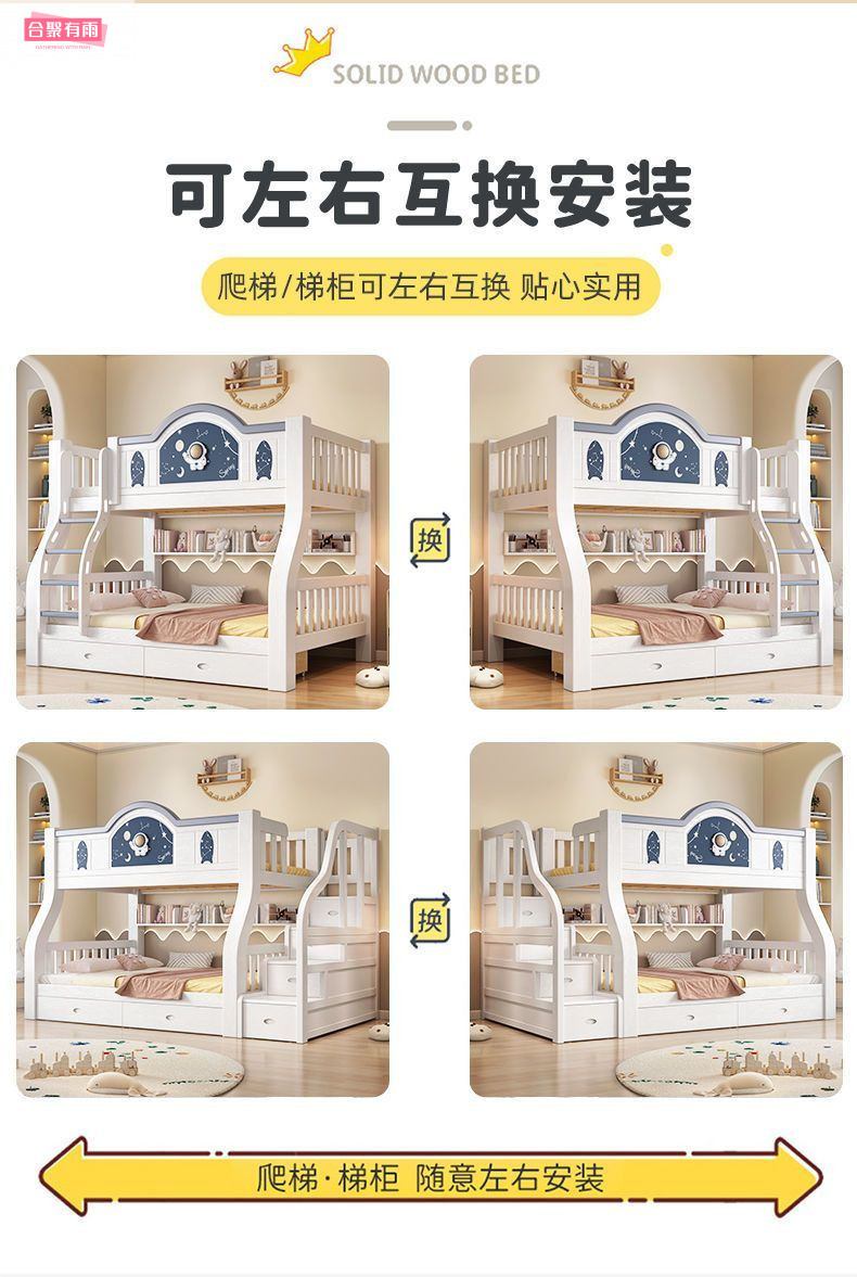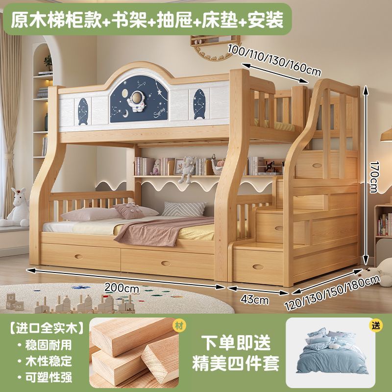 Heju Youyu 단단한 나무 침대 이층 침대 어린이 침대 2 층 다기능 높고 낮은 더블 침대 이층 작은 아파트