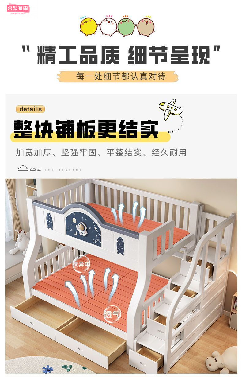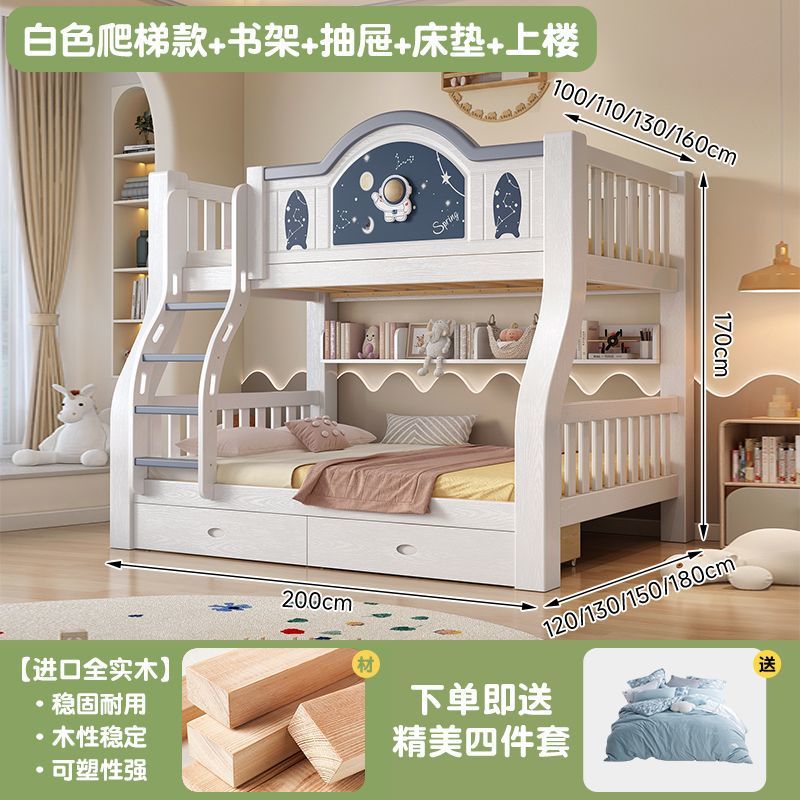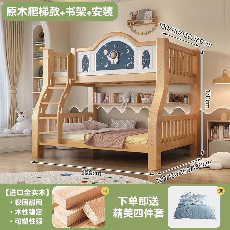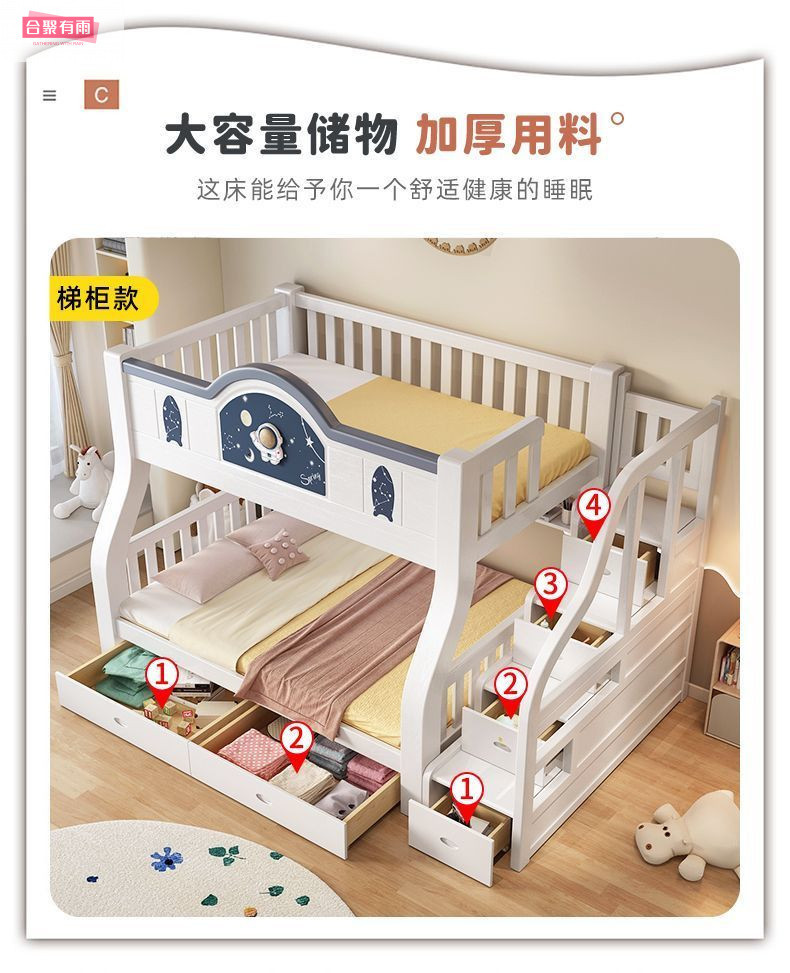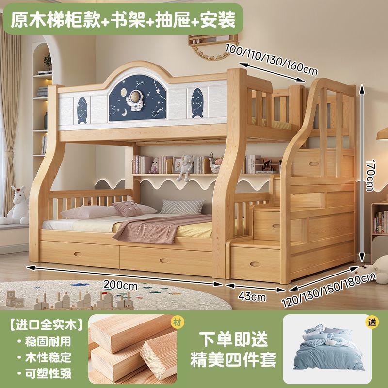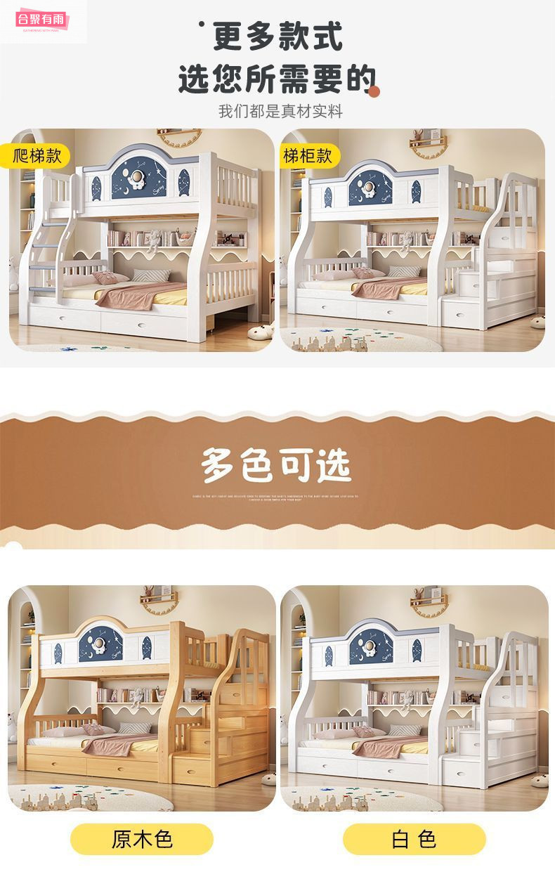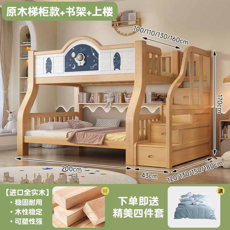 Heju Youyu 단단한 나무 침대 이층 침대 어린이 침대 2 층 다기능 높고 낮은 더블 침대 이층 작은 아파트스토어 가기
