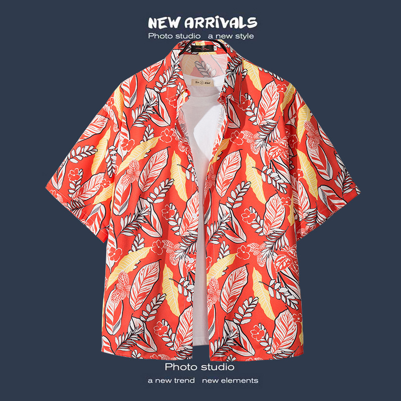 해변 휴가 올매치 플로랄 셔츠 남자 반팔 Ins 느슨한 하와이 레트로 스타일 비치 셔츠 재킷스토어 가기