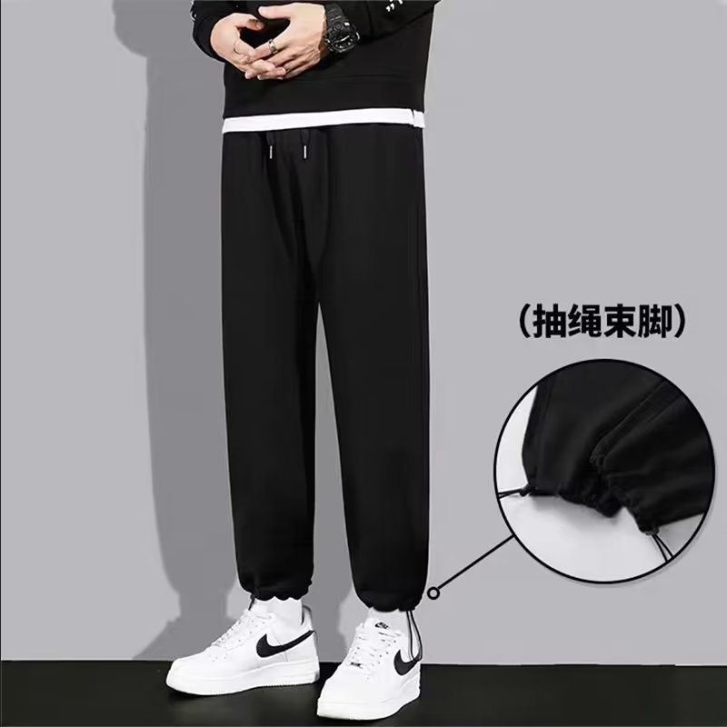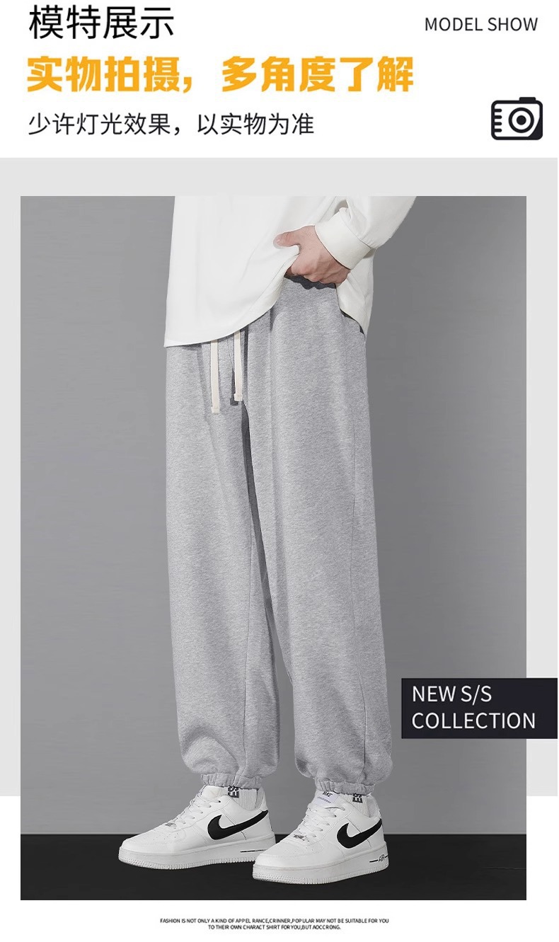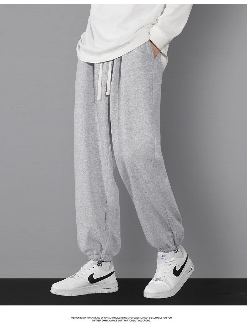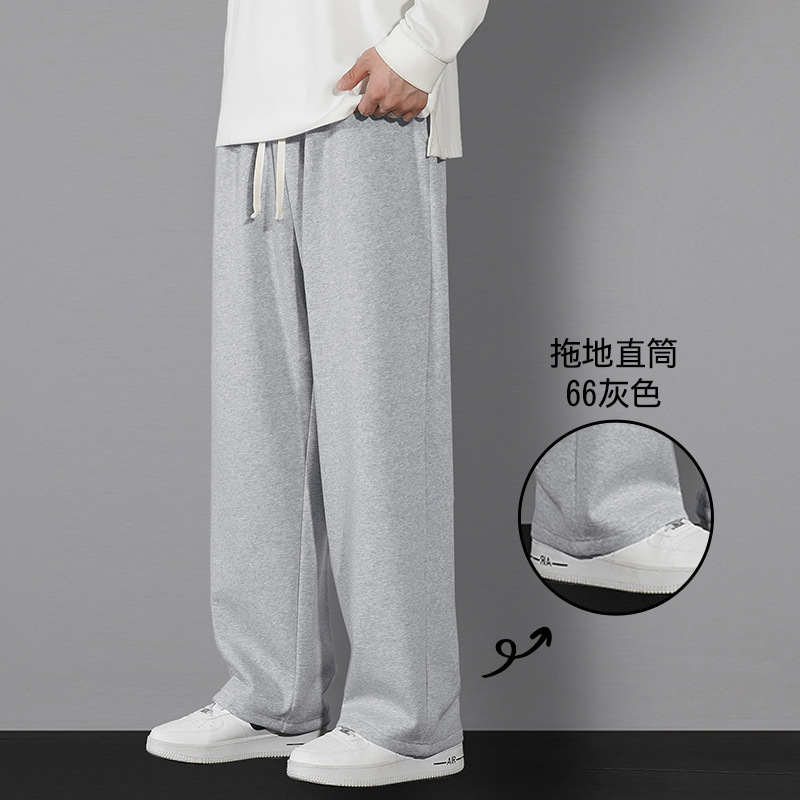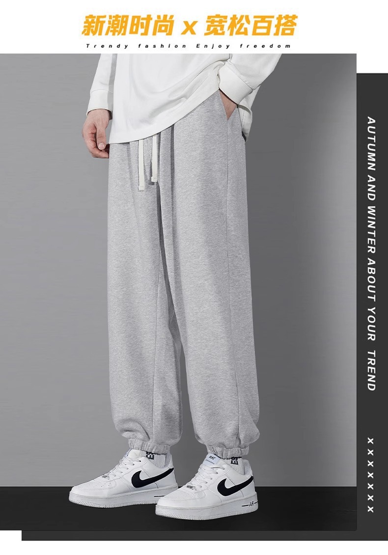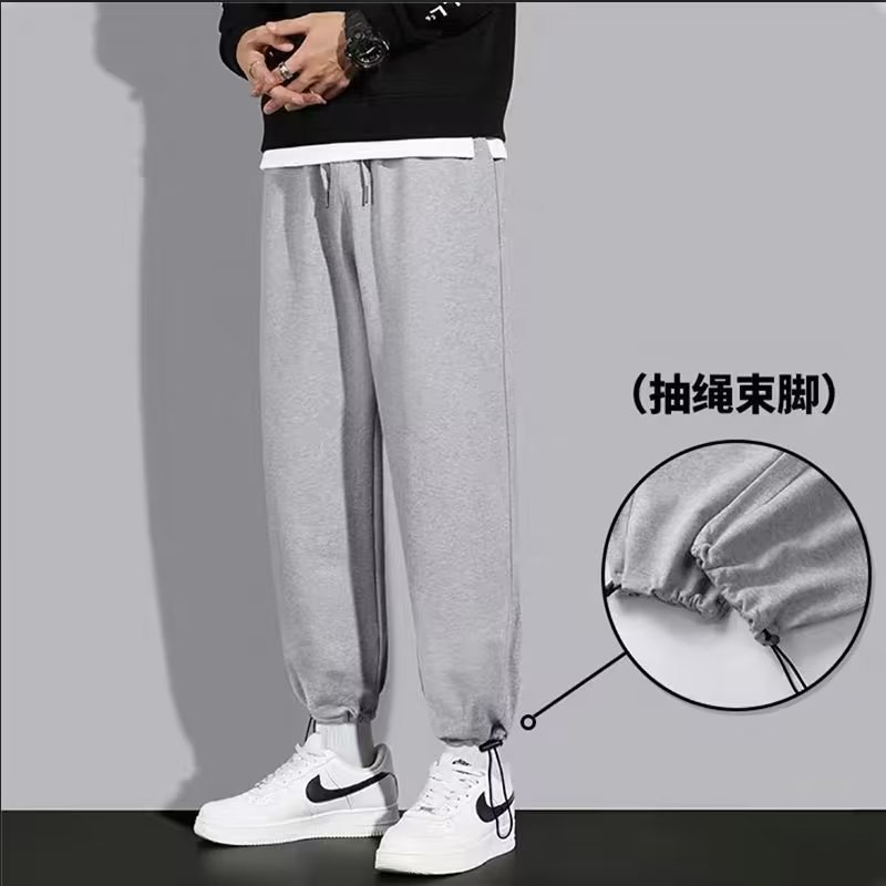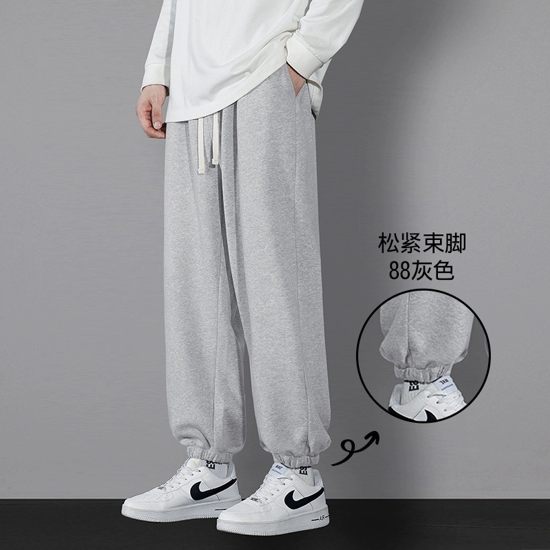 남자 캐주얼 바지 봄과 가을 2024 새로운 스포츠 느슨한 소년의 발 이른 가을 무거운 회색 가드 바지스토어 가기