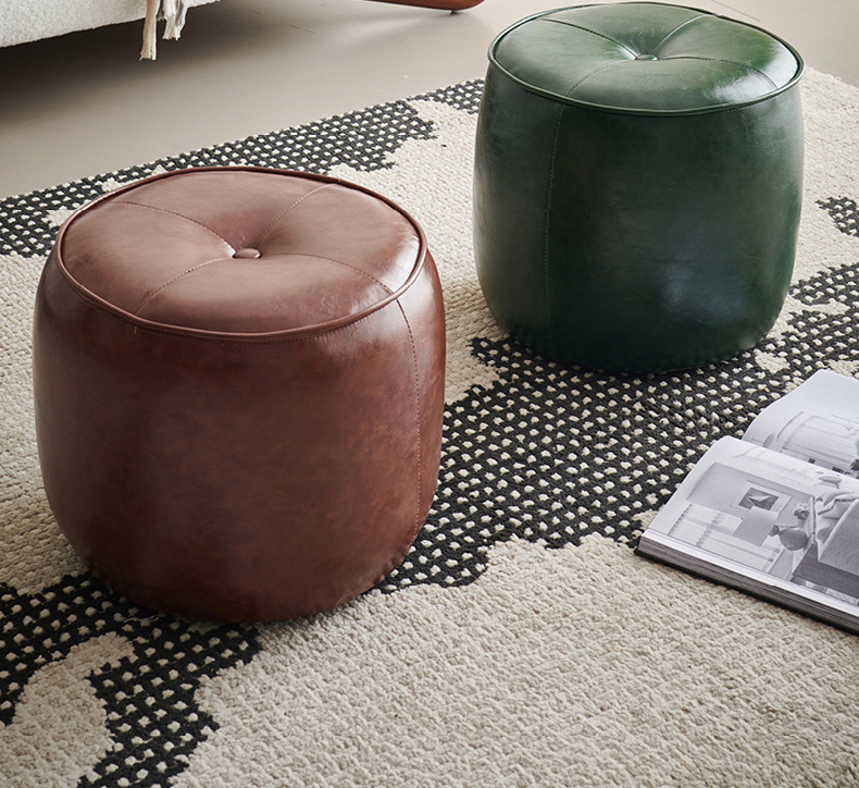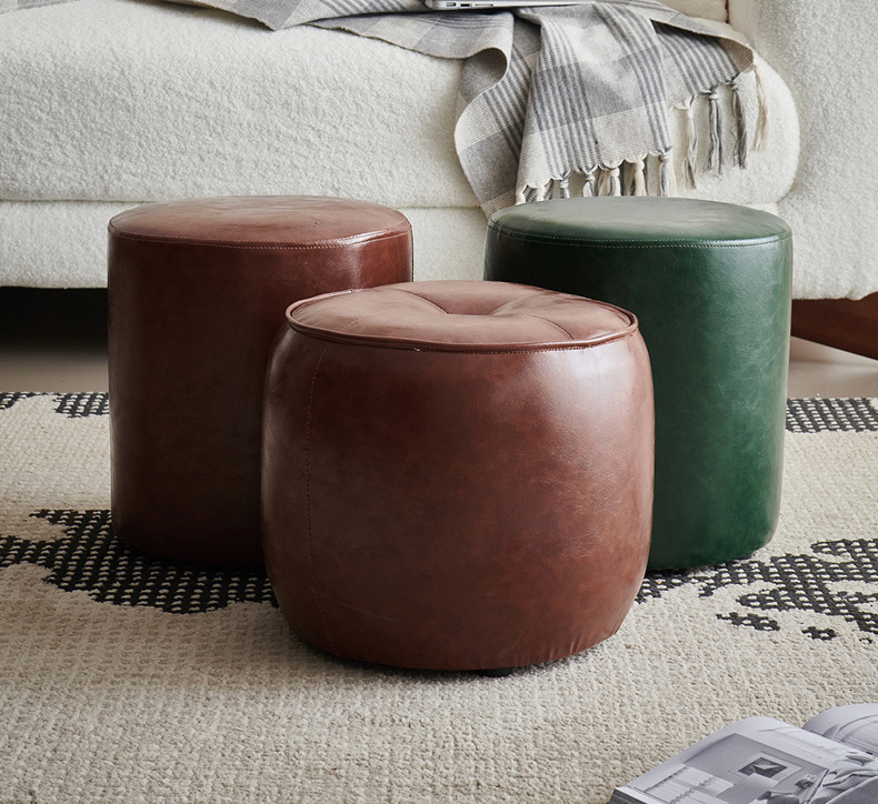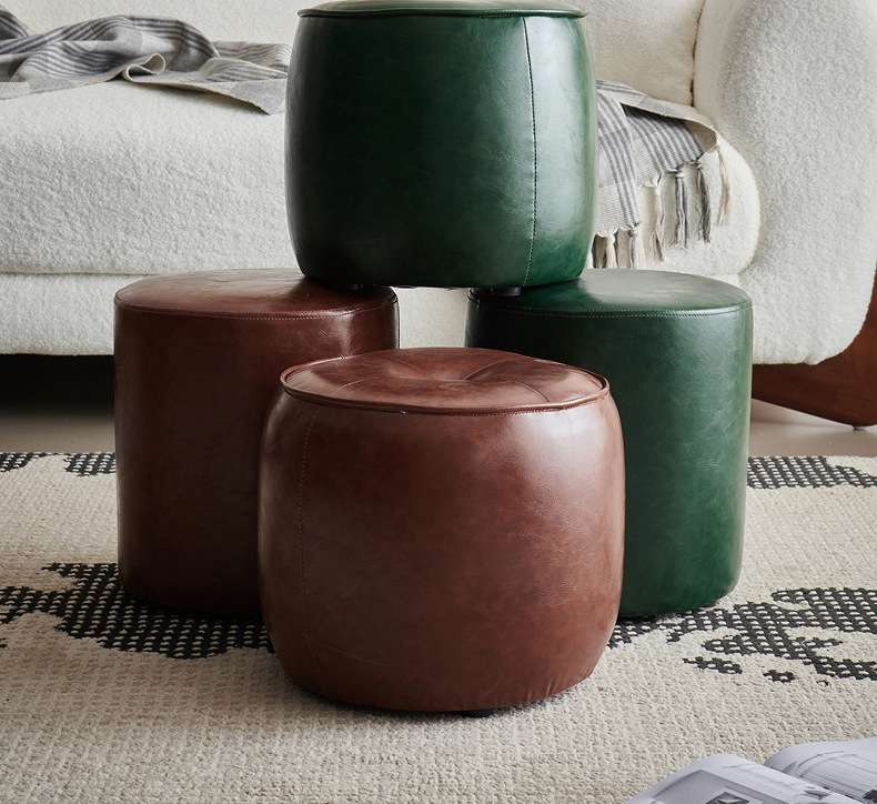 현대 거실 가구 작은 의자 오일 왁스 가죽 의자 발코니 레저 의자 의자 문 신발 변경 의자 소프트 백 쿠션 발판