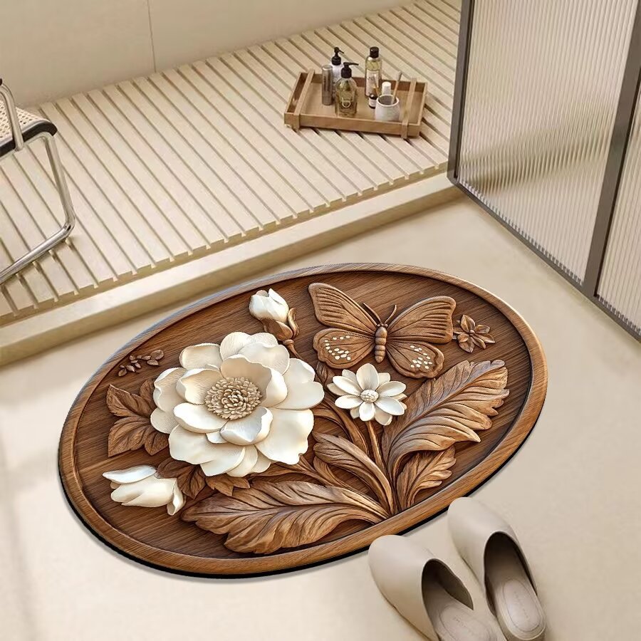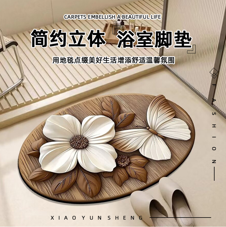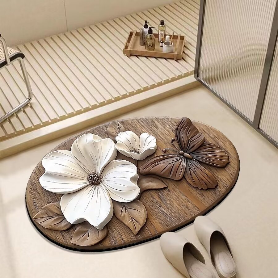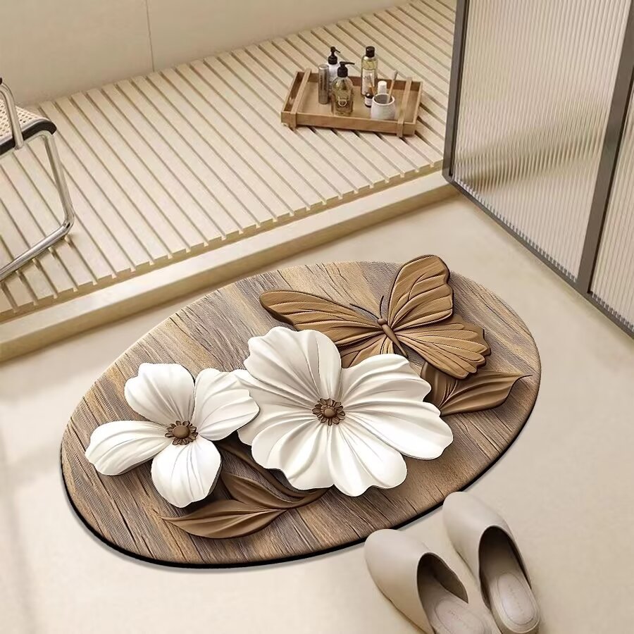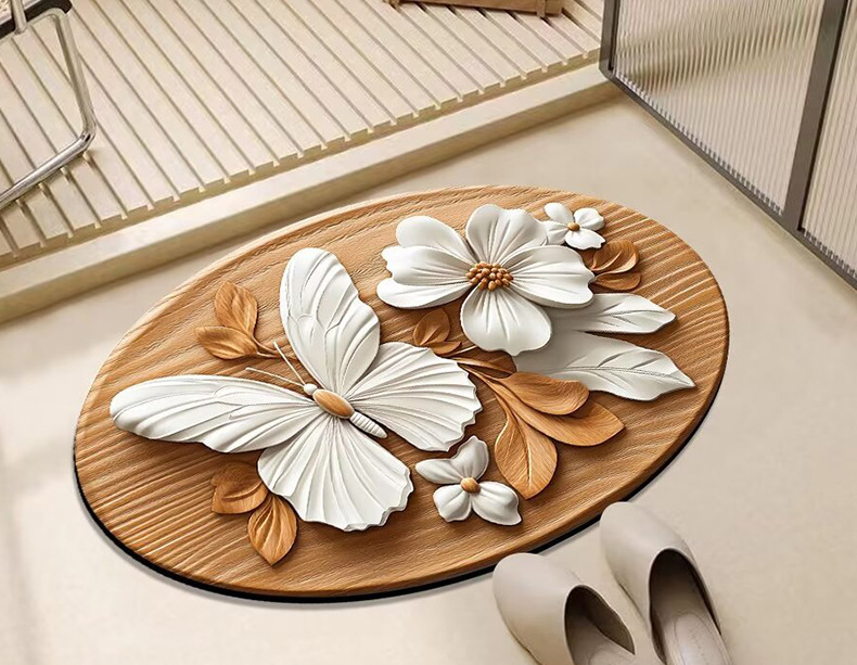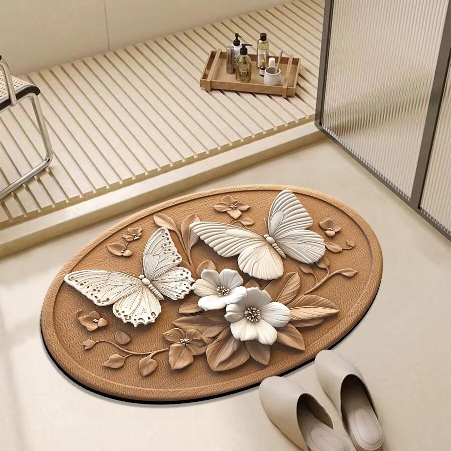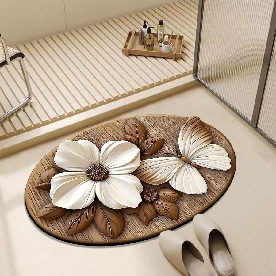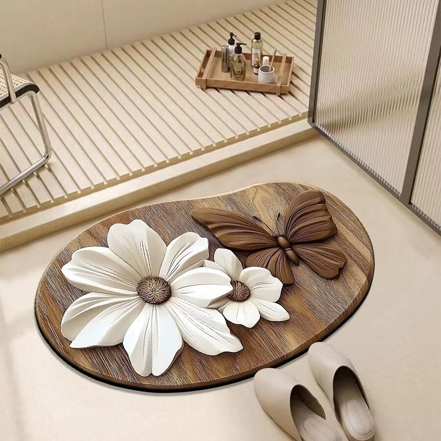 3 차원 나비 꽃 욕실 발 매트 흡수성 미끄럼 방지 모양의 디 아톰 진흙 바닥 매트 화장실 입구 문 매트