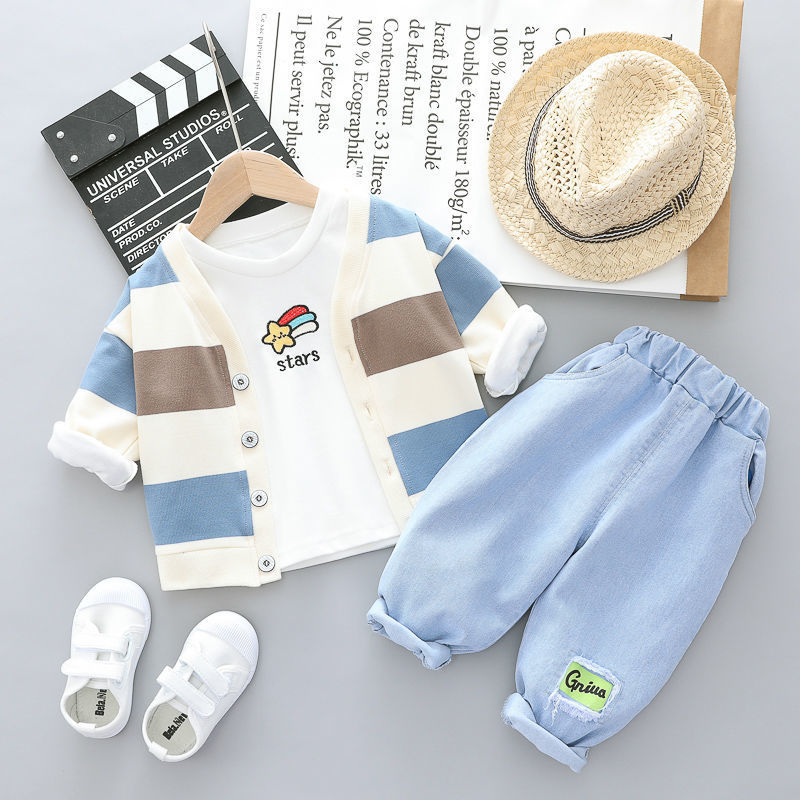 [891 컬렉션] 아기 봄 가을 옷 2021 새 소년 세트 세련된 아기 옷 3 어린이 봄스토어 가기