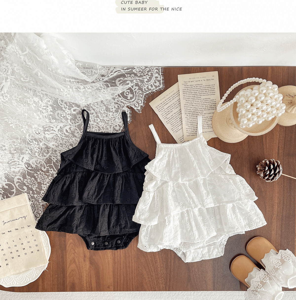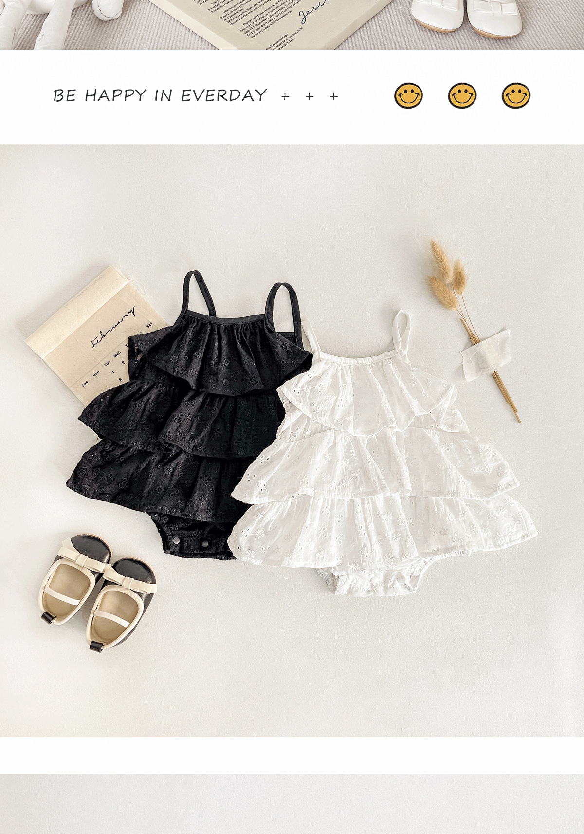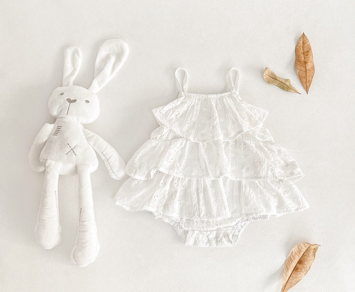 여름 베이비 케이크 스커트, 주름 요정 크롤링 슈트, 한국식 디자인, 휴가 스타일, 편안하고 다재다능한 한국식 새 스타일스토어 가기