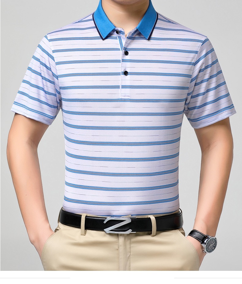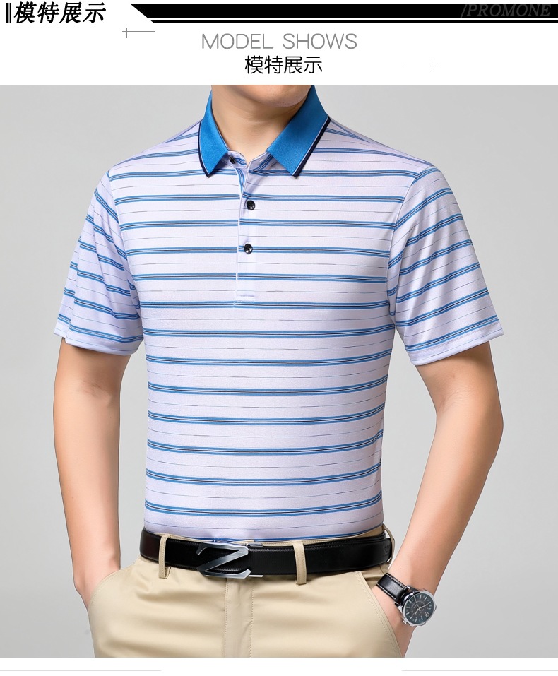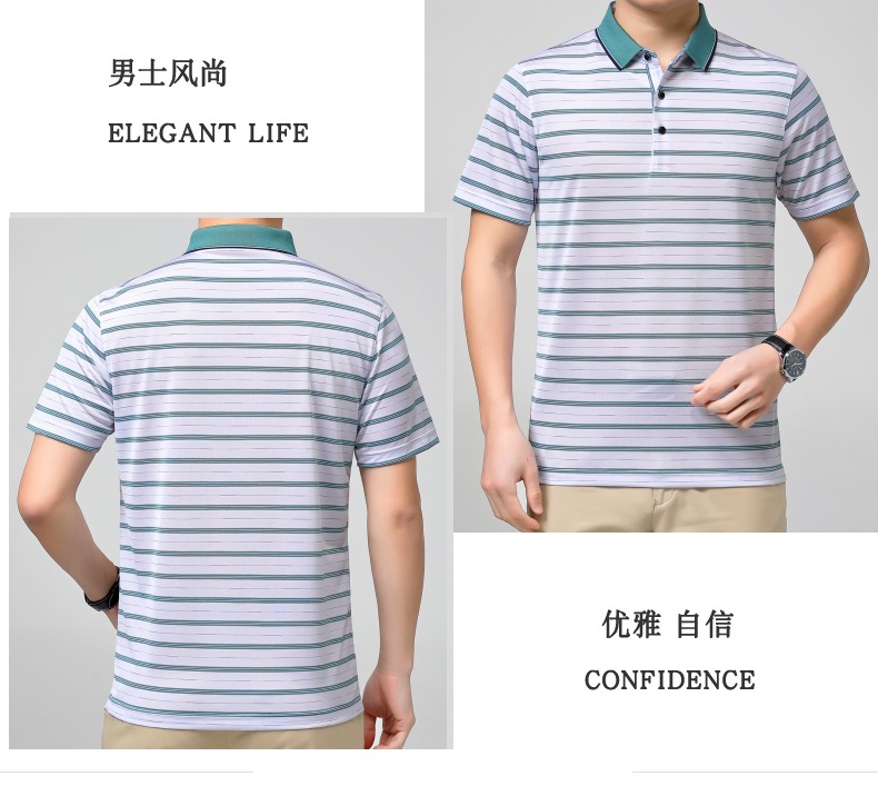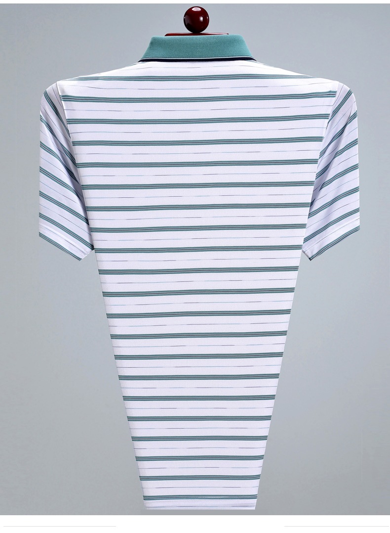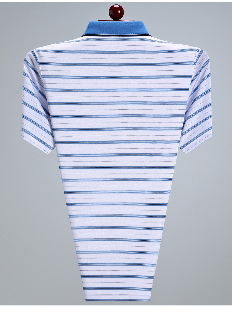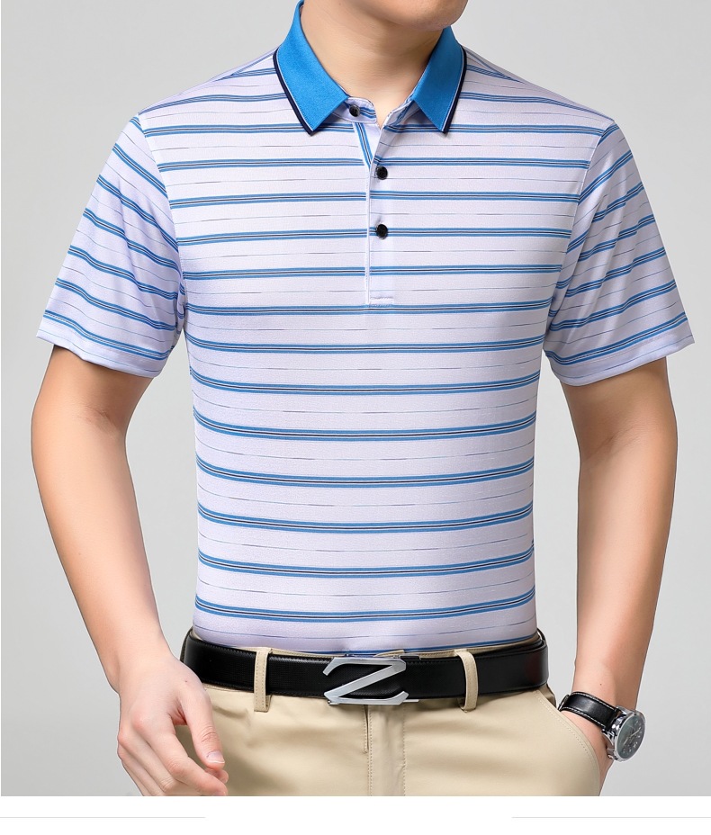 가벼운 고급 고급 남성 폴로 셔츠 여름 새로운 스타일 중년 및 노인 아빠의 실크 줄무늬 비즈니스 캐주얼 짧은 소매스토어 가기