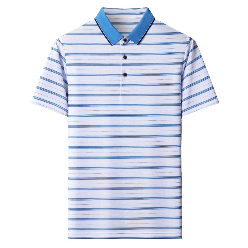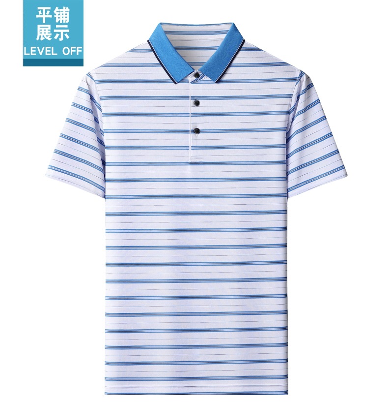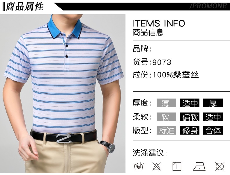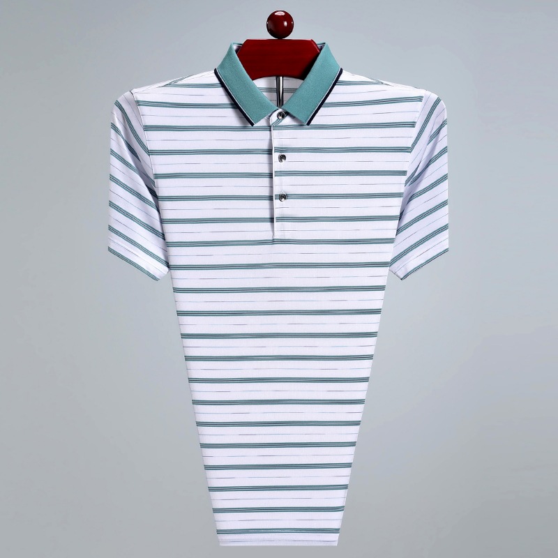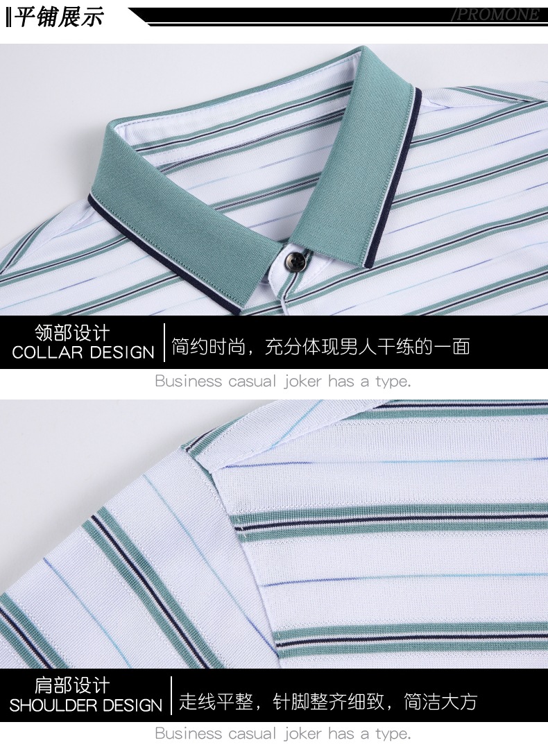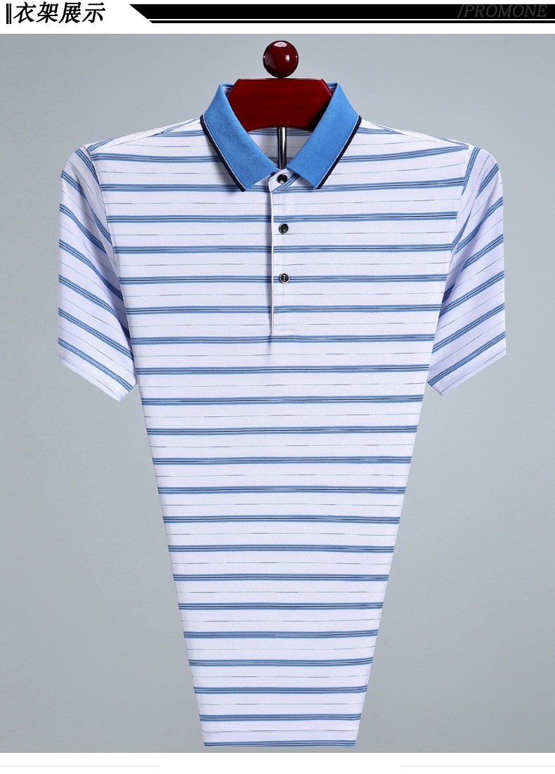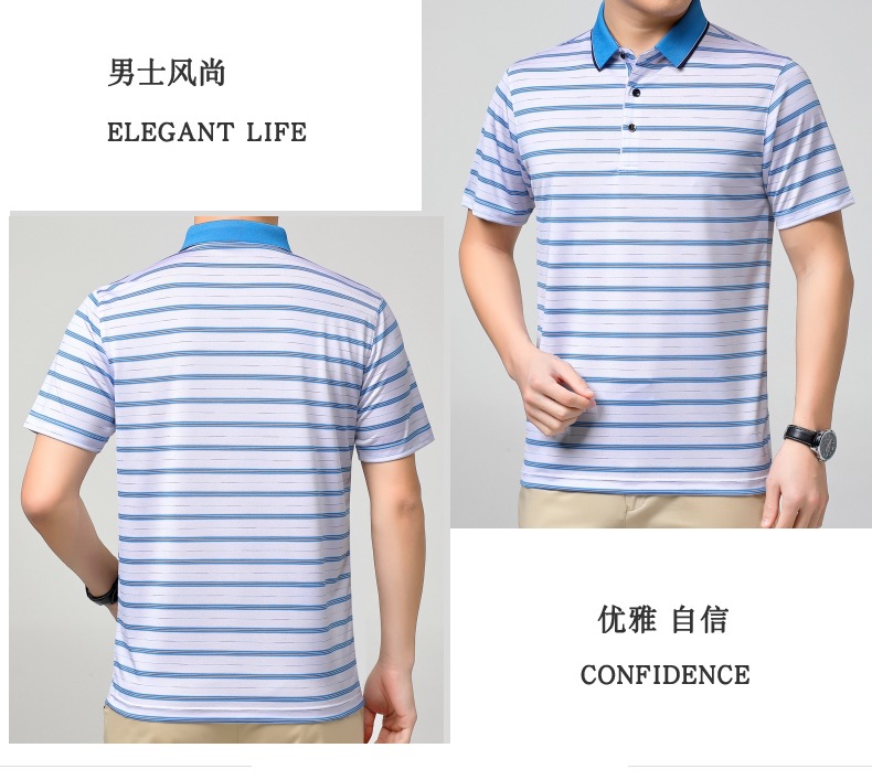 가벼운 고급 고급 남성 폴로 셔츠 여름 새로운 스타일 중년 및 노인 아빠의 실크 줄무늬 비즈니스 캐주얼 짧은 소매스토어 가기