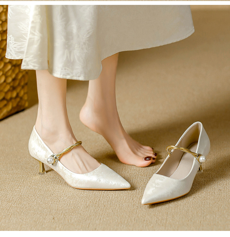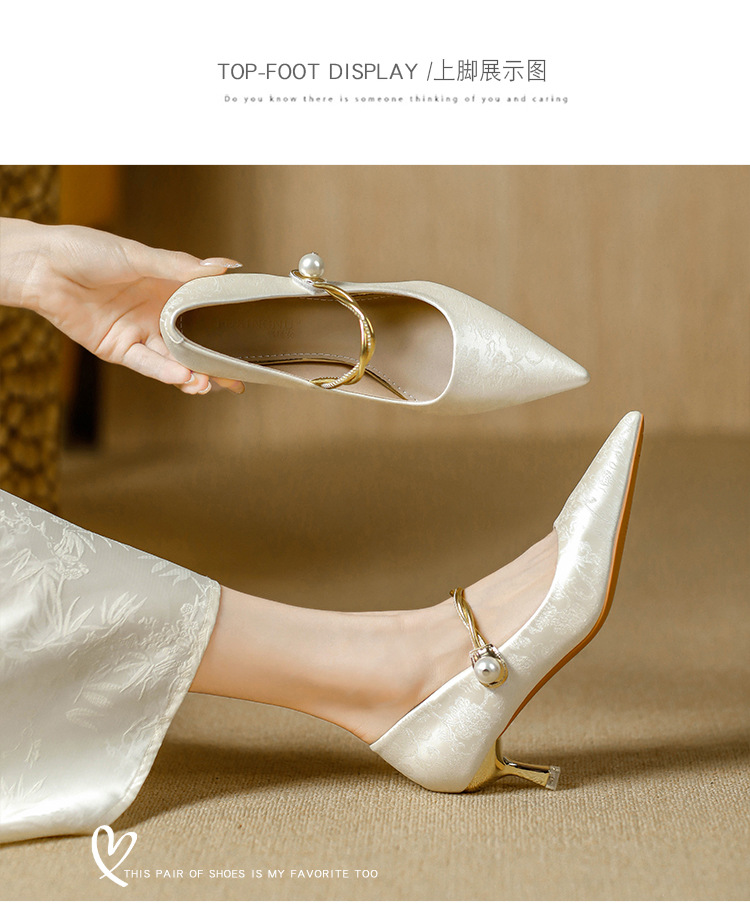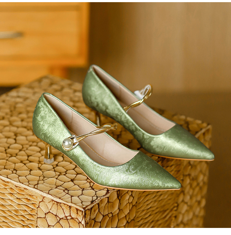 새틴 빈티지 청삼 여성 신발 2025 봄과 가을 새로운 중국 스타일 국가 스타일 하이힐 포인팅 발가락 단층 신발스토어 가기