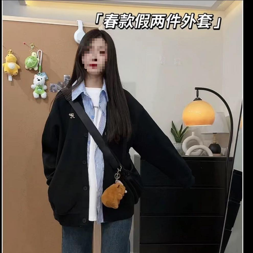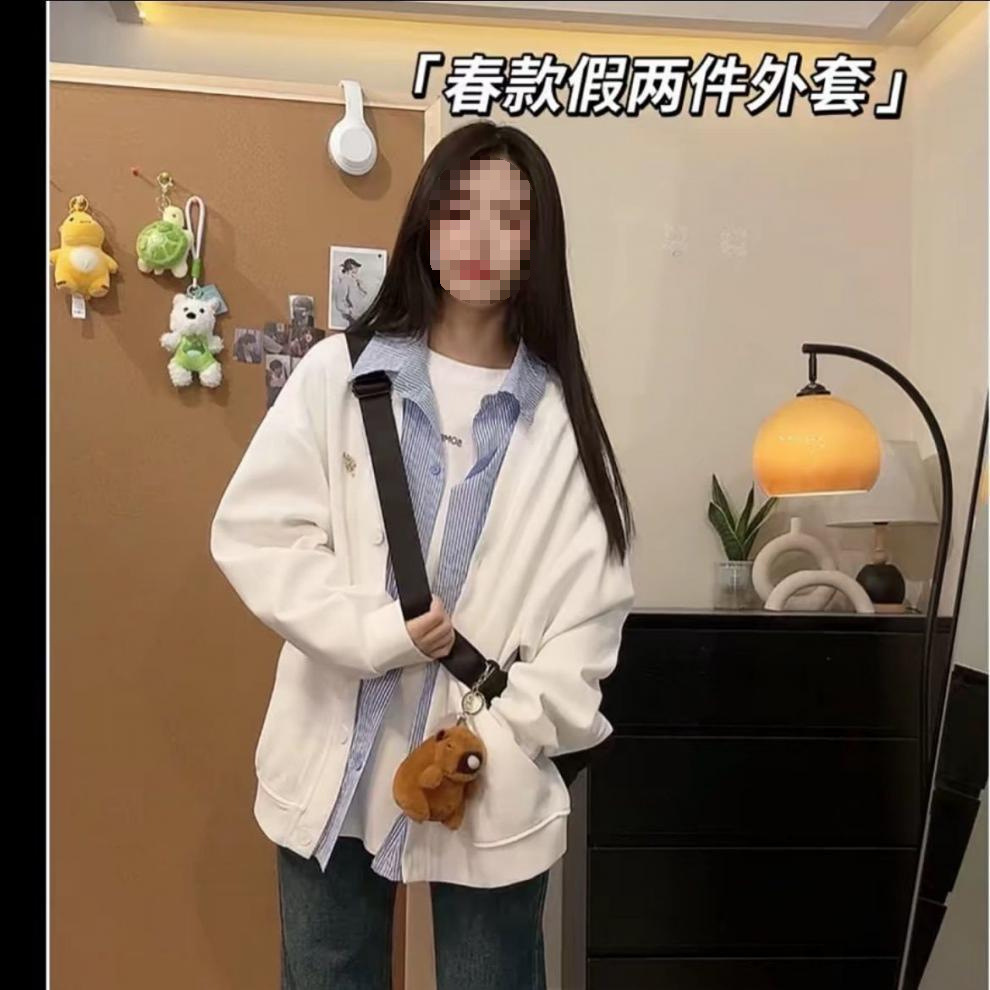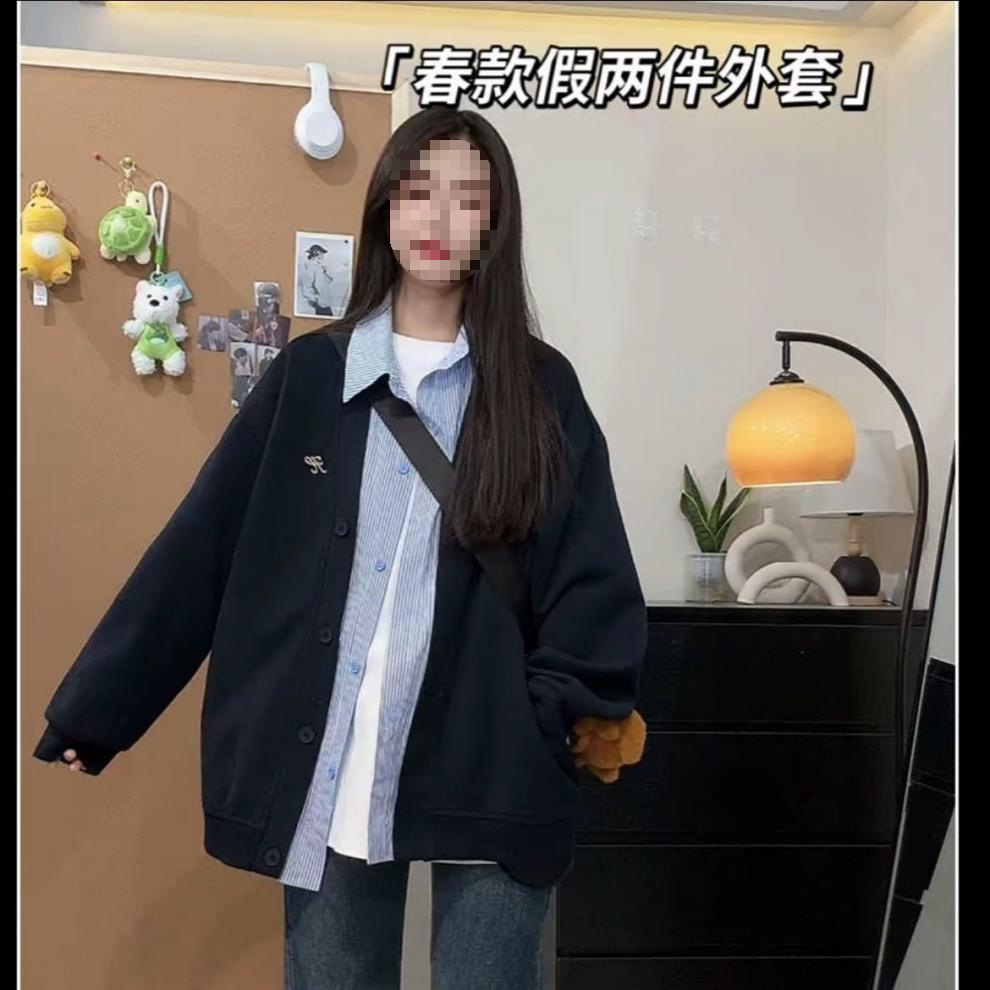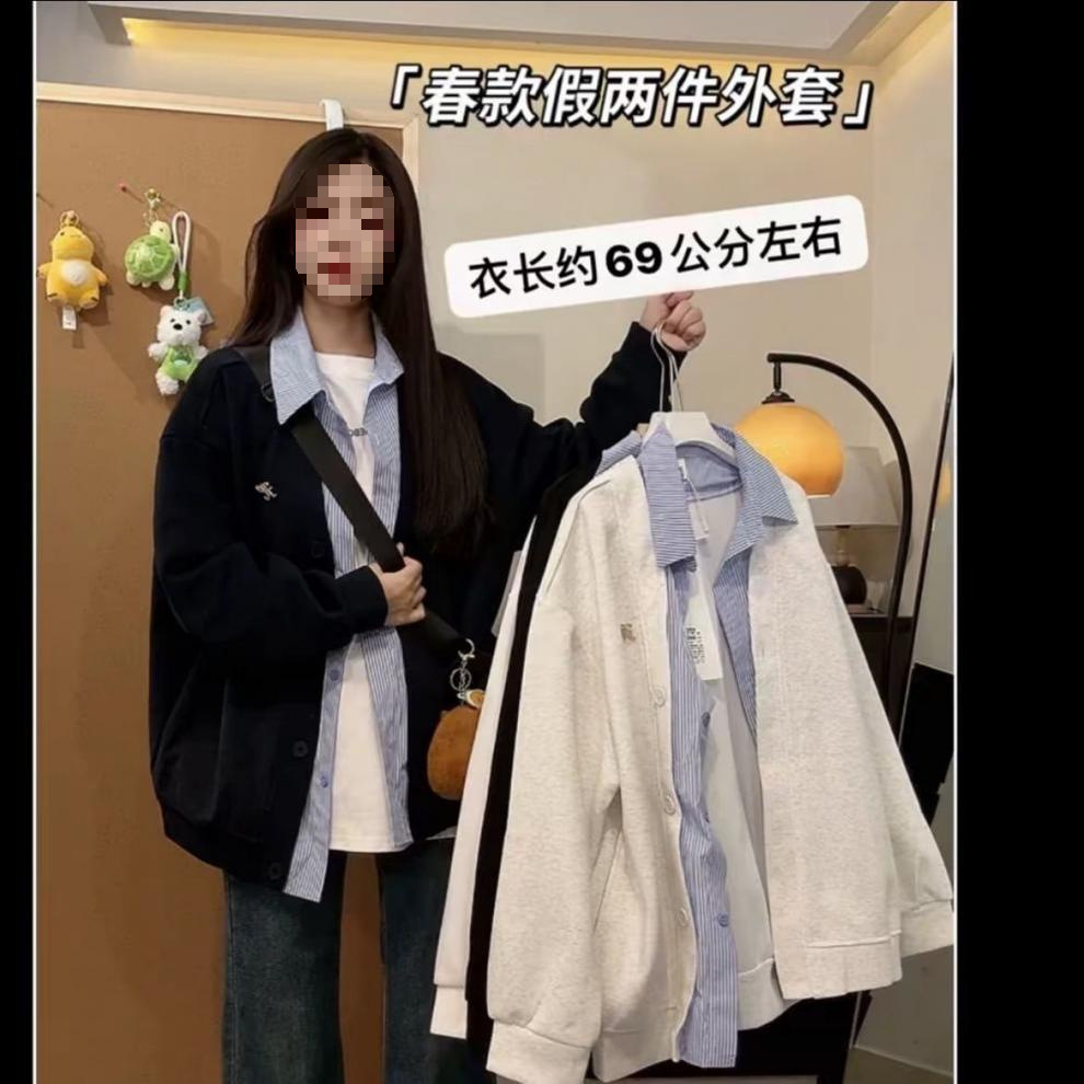 미국 스타일의 트렌디 한 브랜드 가짜 투피스 후드 자켓 여성의 봄과 가을 2025 새로운 거리 스타일 디자인 센스 스티칭 격자 무늬 재킷스토어 가기