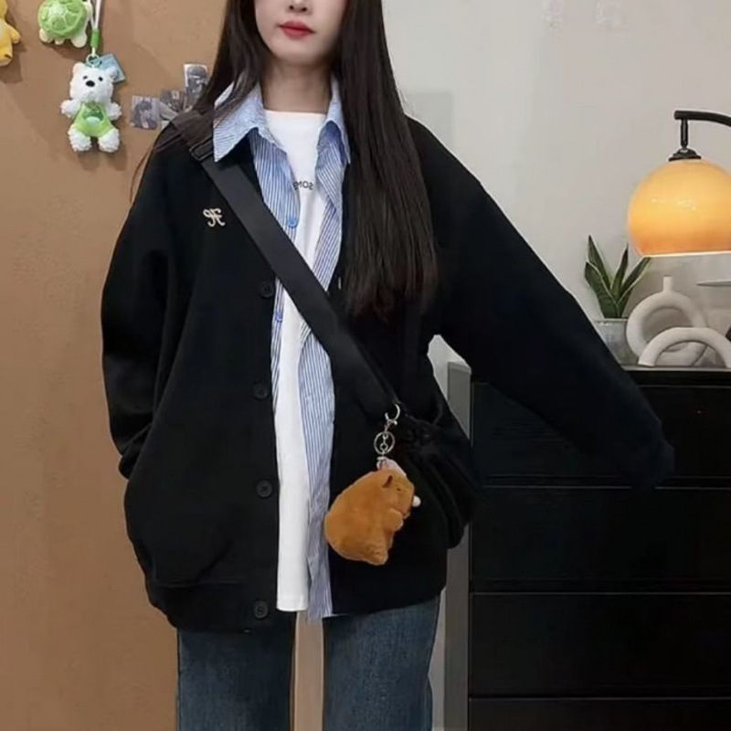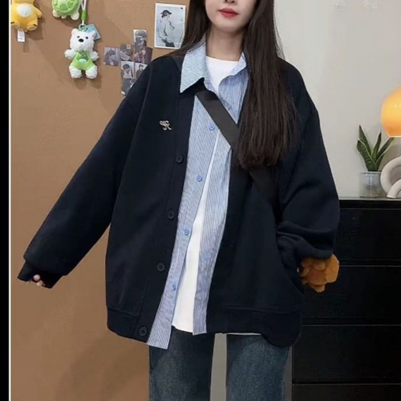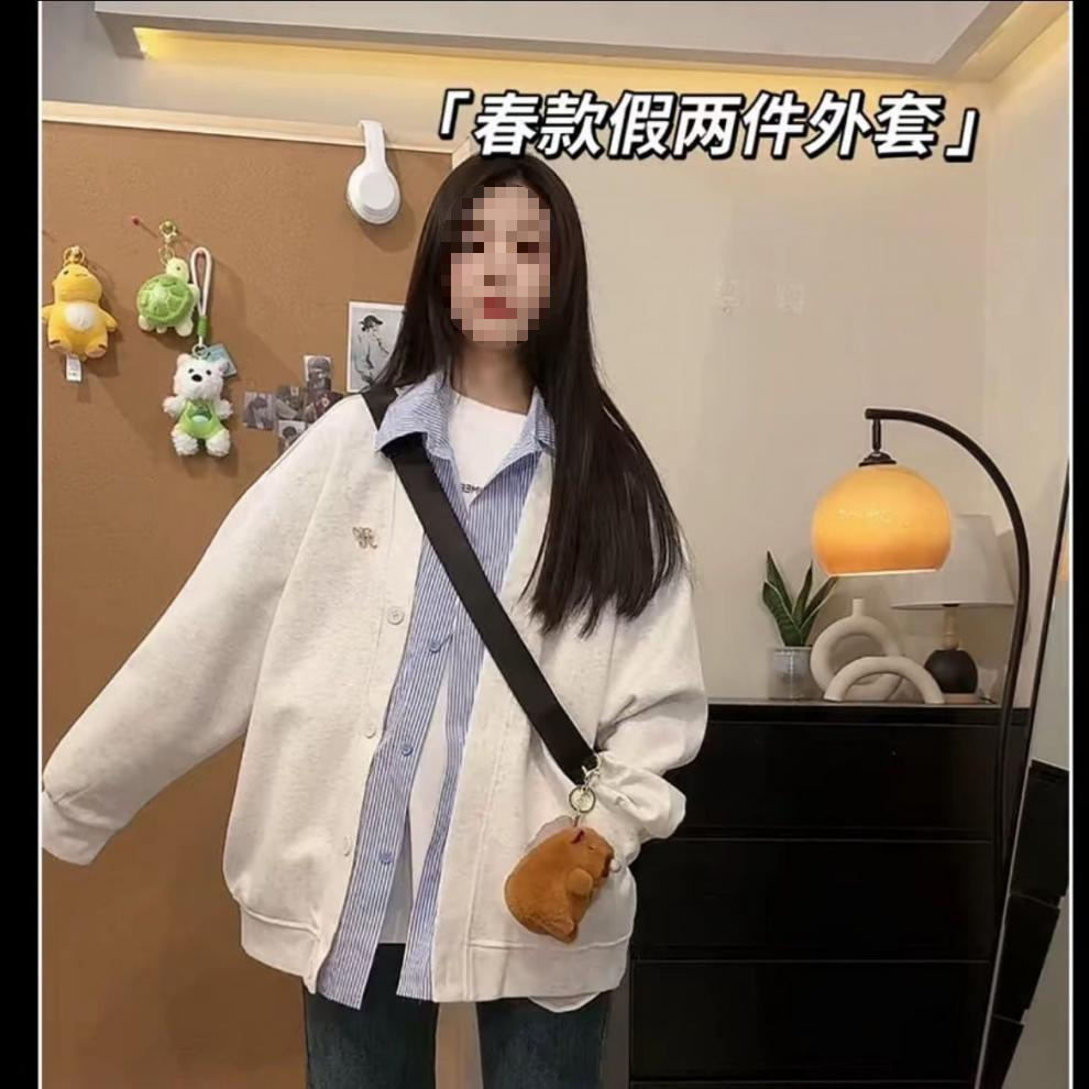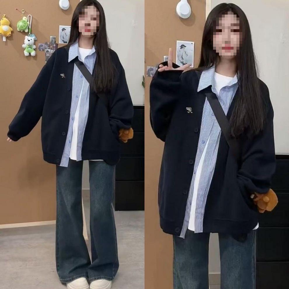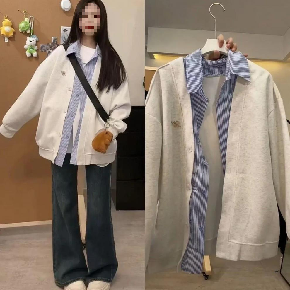 미국 스타일의 트렌디 한 브랜드 가짜 투피스 후드 자켓 여성의 봄과 가을 2025 새로운 거리 스타일 디자인 센스 스티칭 격자 무늬 재킷스토어 가기