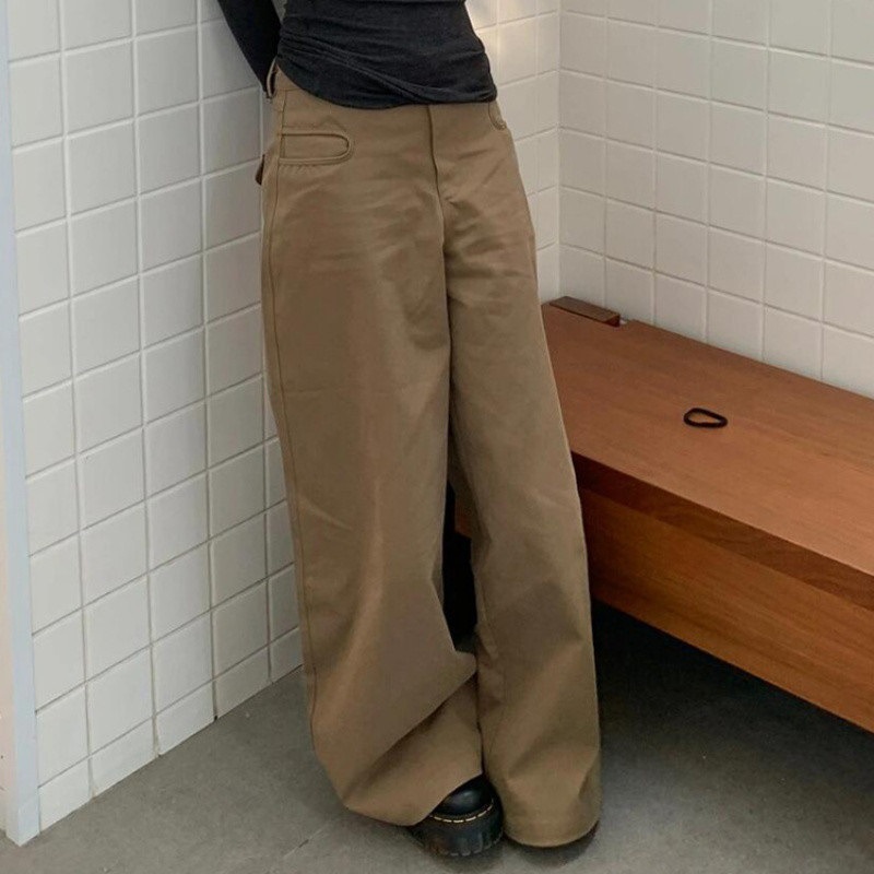 아메리칸 스타일 레트로 루즈 카치 청바지 여자 2025 봄 마일 라드 스타일 슬리밍 올 매치 캐주얼 와이드 레그 바지스토어 가기