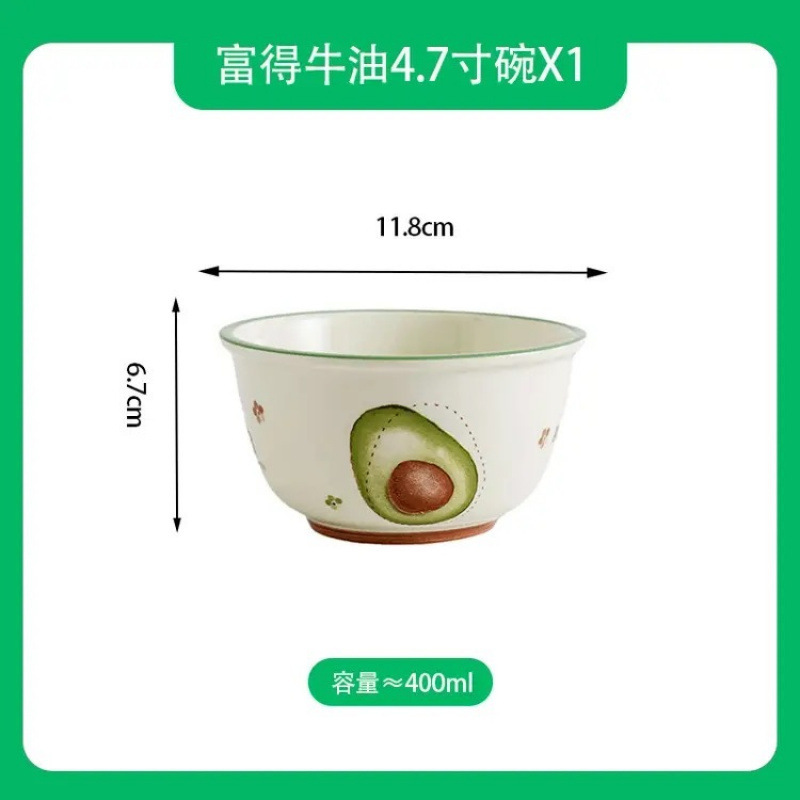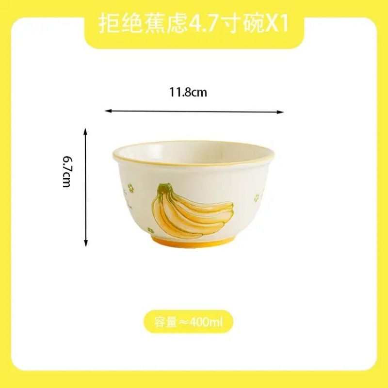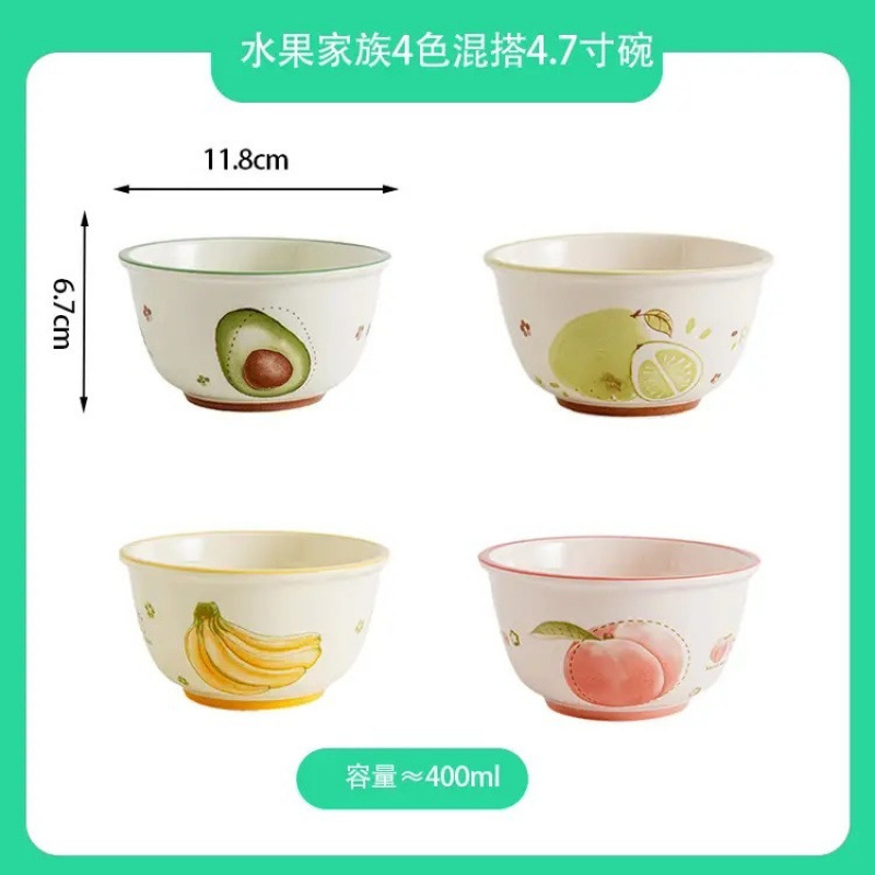 과일 시리즈, 오일이 가득한 고급스러운 가정용 도자기 밥그릇과 접시, 유약색, 귀여운 먹는 식기, 스푼 포함스토어 가기