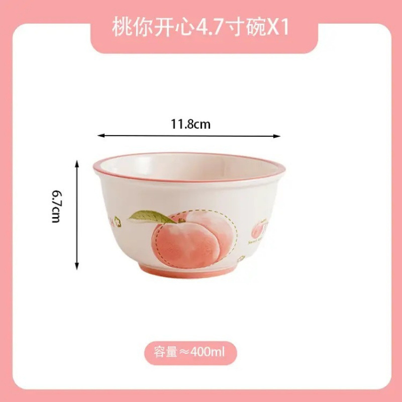 과일 시리즈, 오일이 가득한 고급스러운 가정용 도자기 밥그릇과 접시, 유약색, 귀여운 먹는 식기, 스푼 포함