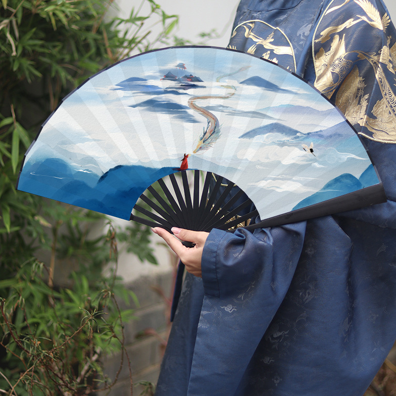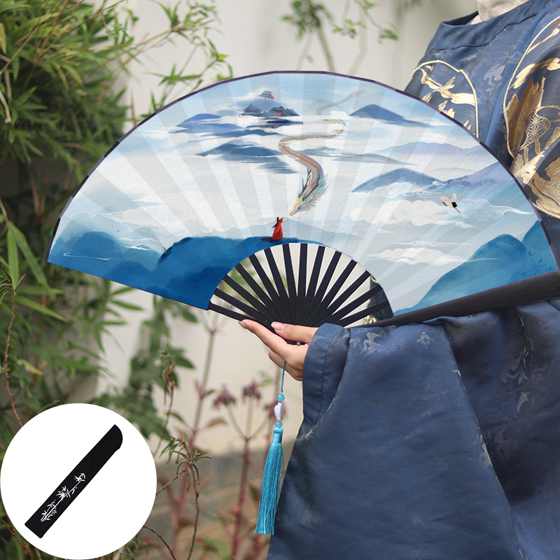 드래곤 폴딩 팬 골동품 캐리 온 중국 스타일 남성 학생 공격적인 복잡한 클래식 매일 접는 팬 여성 여름