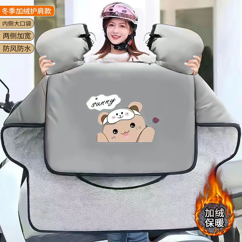 • 업그레이드된 스카프 스타일 [벨벳, 두꺼워진 큰 날개 + 방풍 대형 손잡이 커버] 회색 귀여운 곰