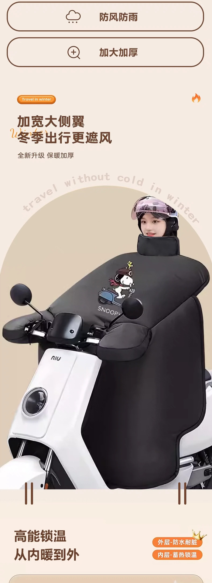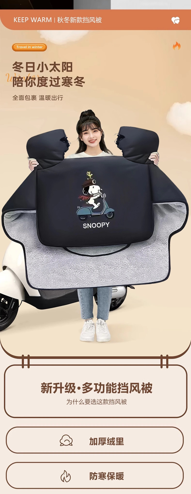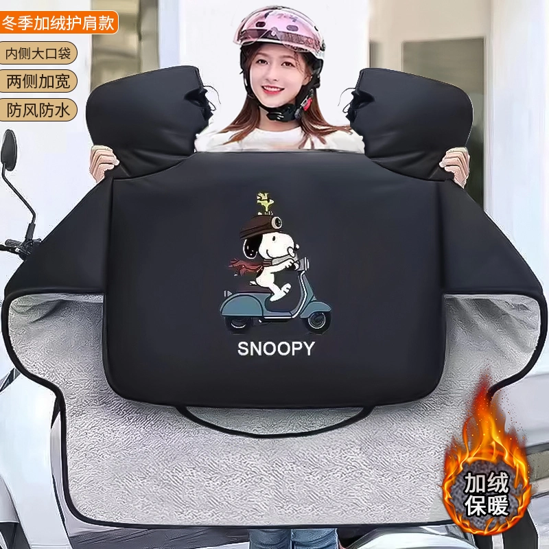 • 업그레이드된 스카프 스타일 [벨벳, 두꺼워진 큰 날개 + 방풍 대형 손잡이 커버] 블랙 스누피
