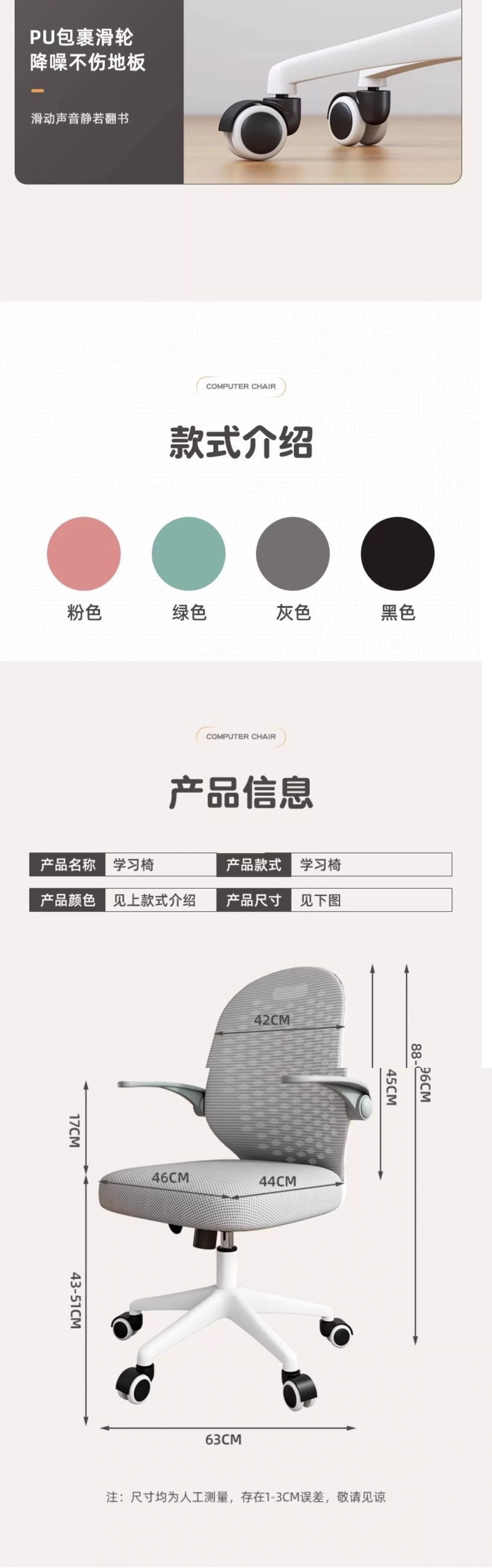새로운 컴퓨터 의자 좌식 사무실 의자 움직일 수 있는 가정 어린이 연구 의자 조정 가능한 기숙사 좌석