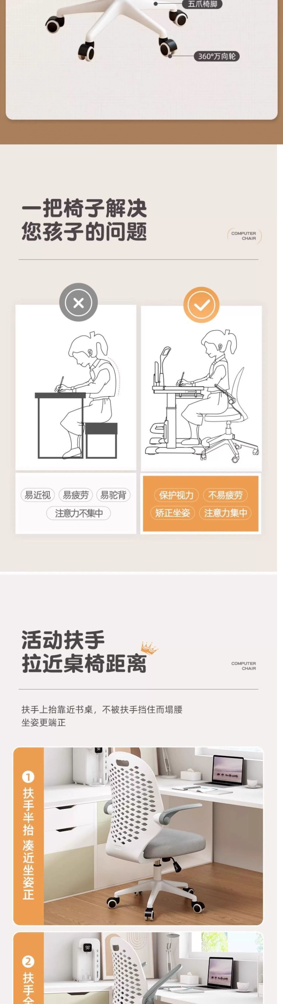 새로운 컴퓨터 의자 좌식 사무실 의자 움직일 수 있는 가정 어린이 연구 의자 조정 가능한 기숙사 좌석스토어 가기