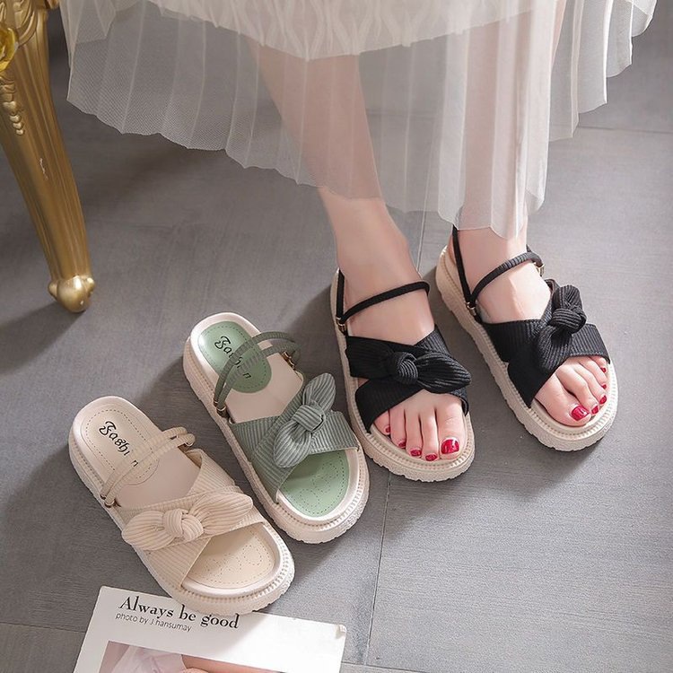 슬리퍼 여름 새로운 2025 두꺼운 하단 하이 엔드 센스 인터넷 인기있는 두 단어 착용 샌들 인스 타 그램 패셔너블 홈 미끄럼 방지 오픈 발가락 샌들스토어 가기