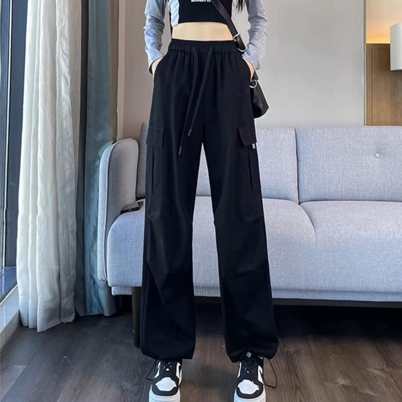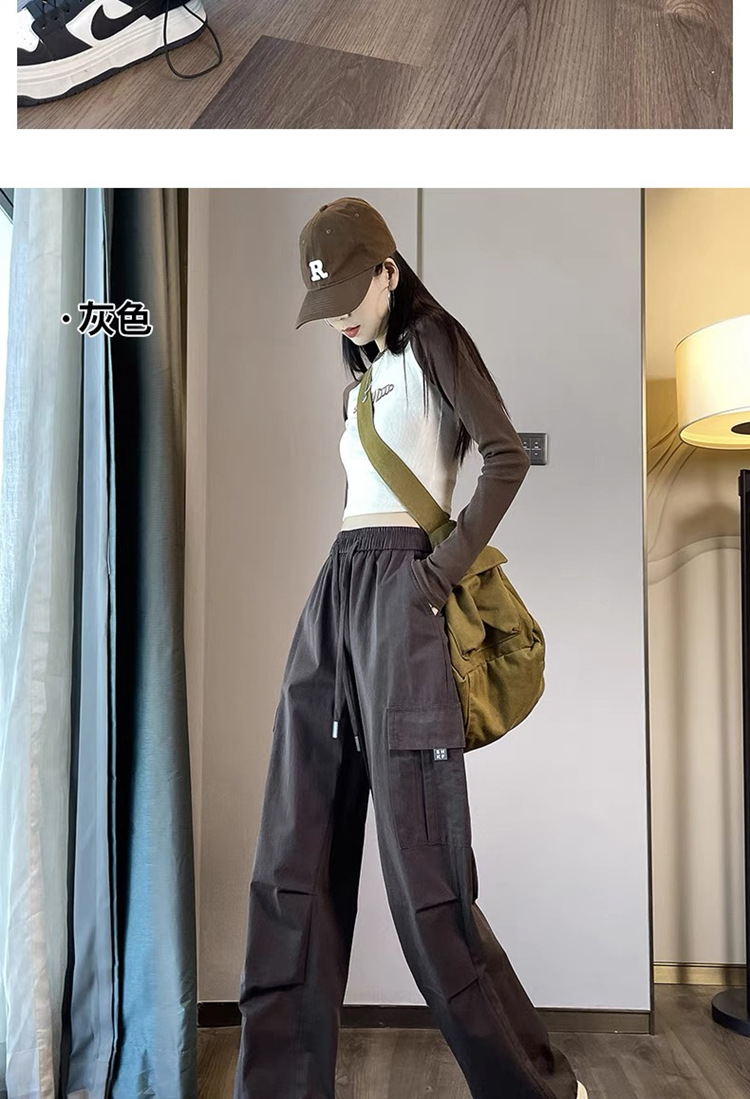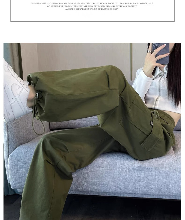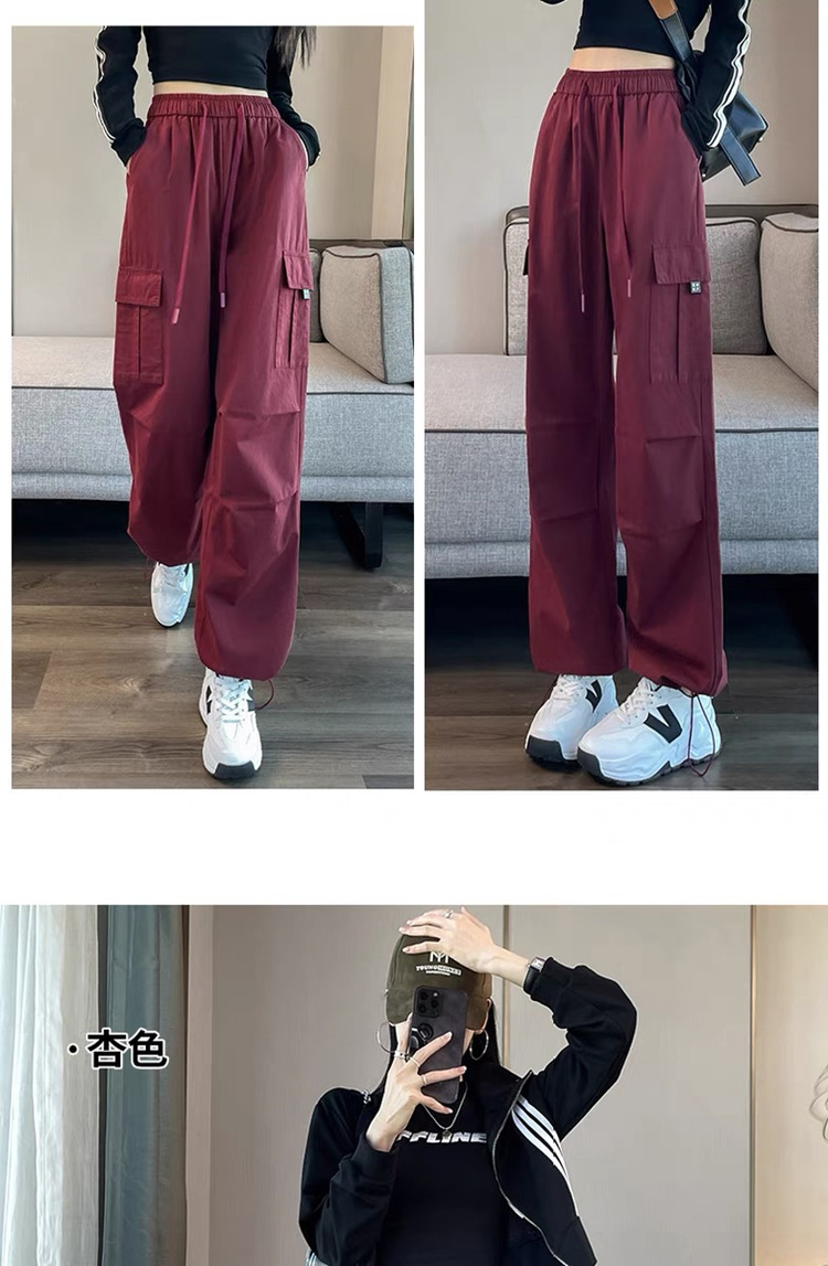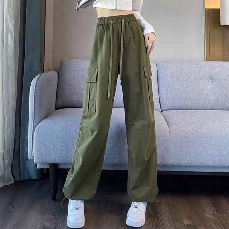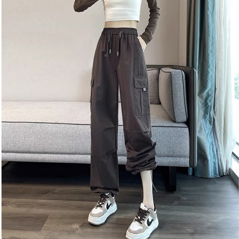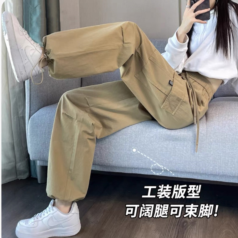 작업복 여성의 2025 새로운 봄과 여름 느슨한 높은 허리 다리 드로스트링 미국 스타일 작은 넓은 다리 등산 스포츠 바지스토어 가기