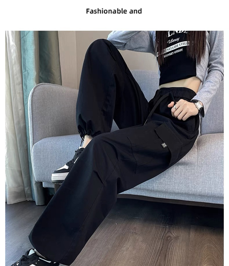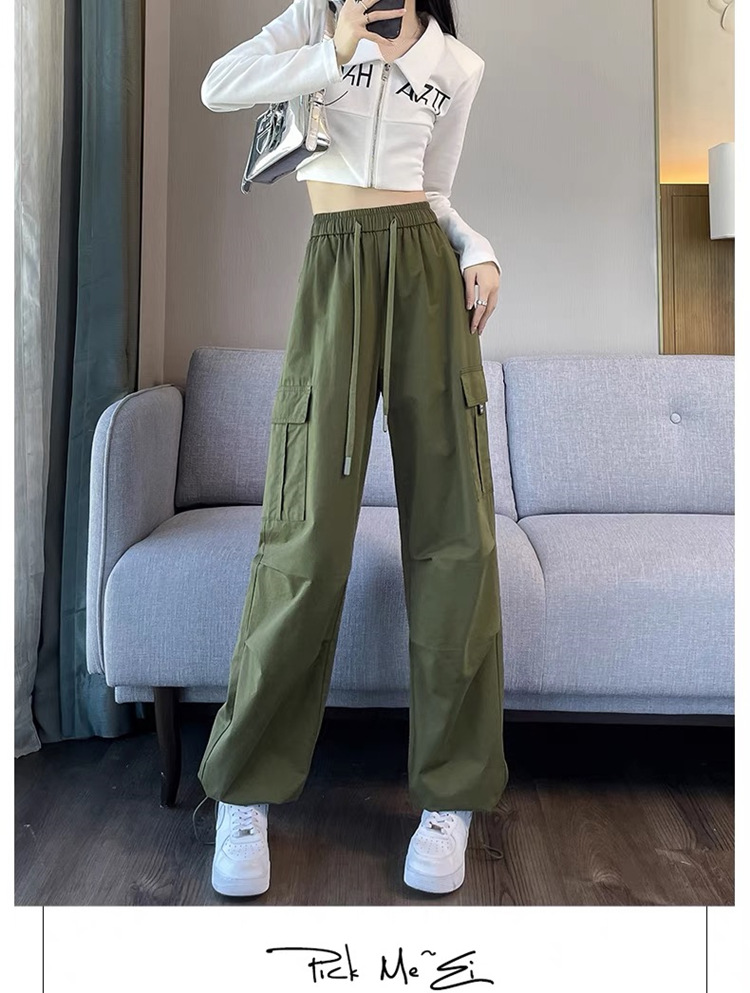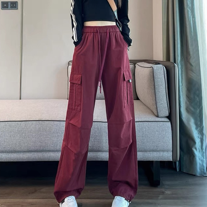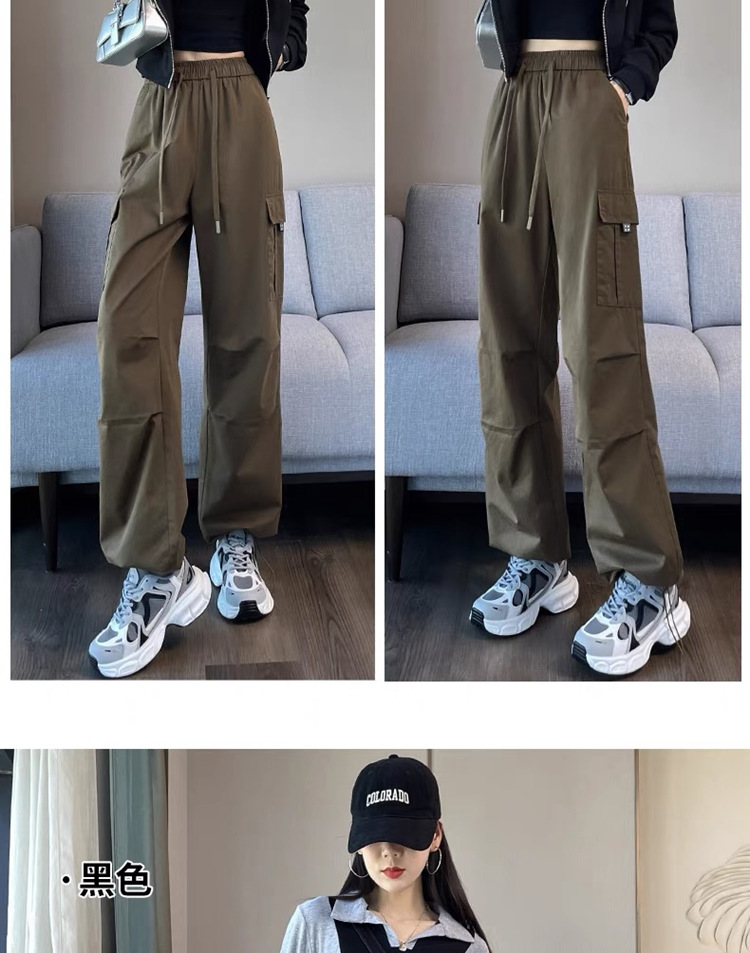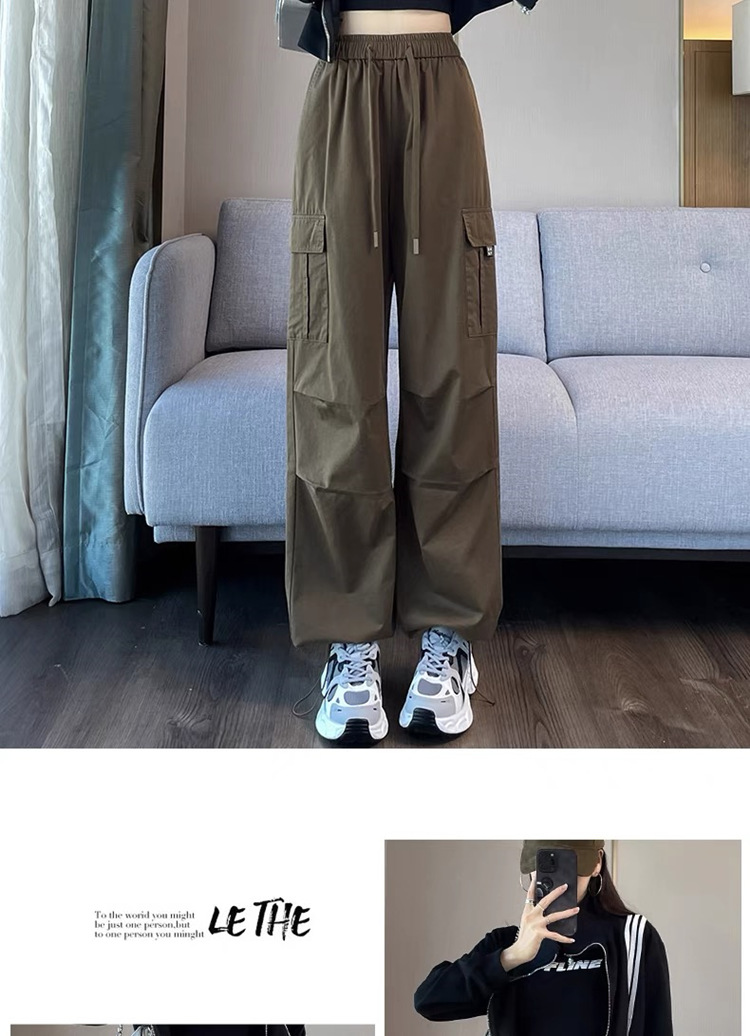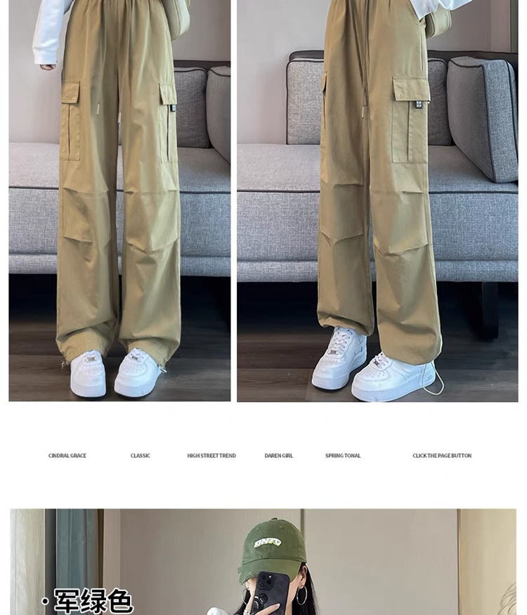 작업복 여성의 2025 새로운 봄과 여름 느슨한 높은 허리 다리 드로스트링 미국 스타일 작은 넓은 다리 등산 스포츠 바지스토어 가기