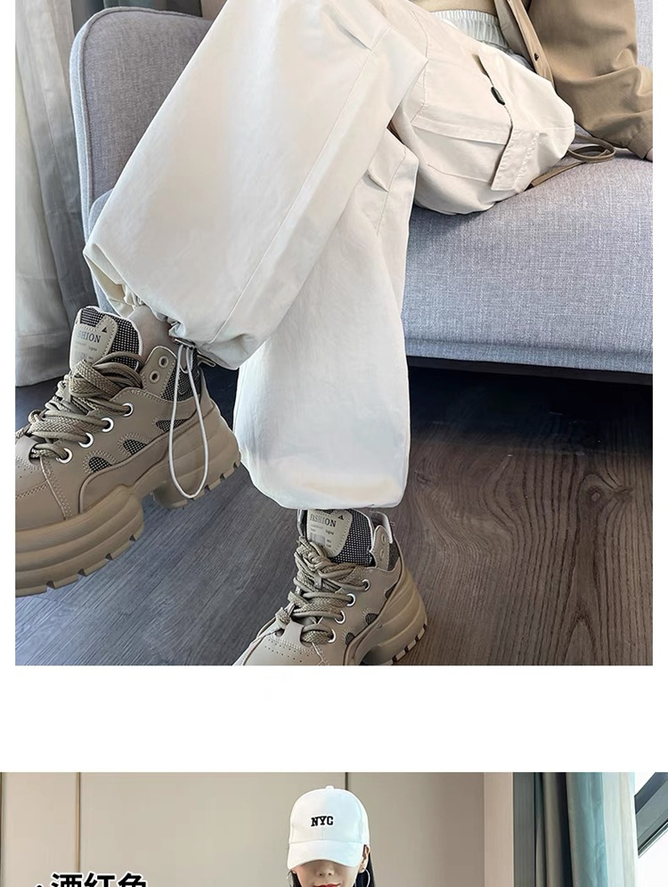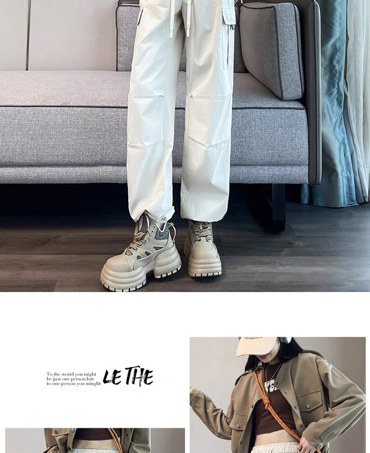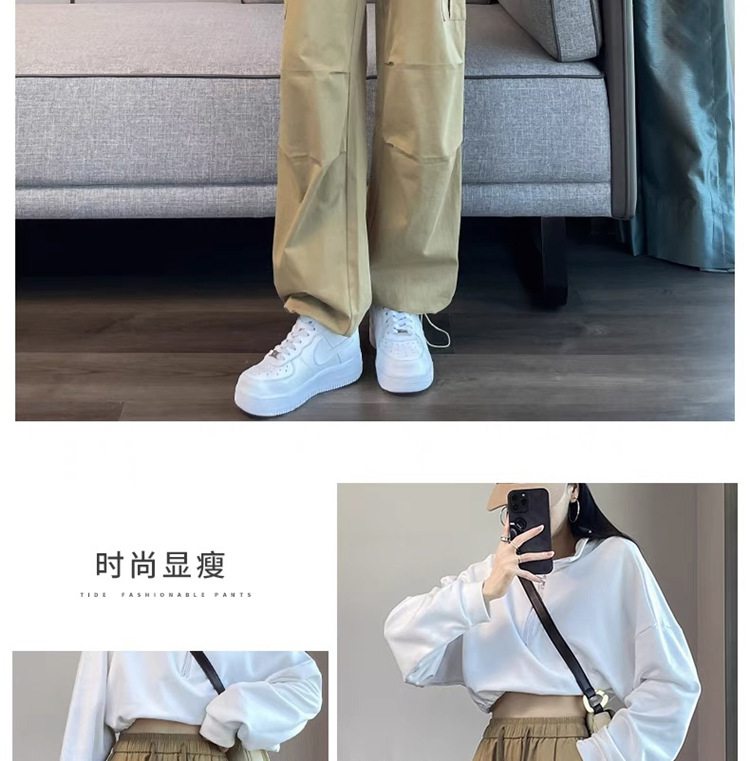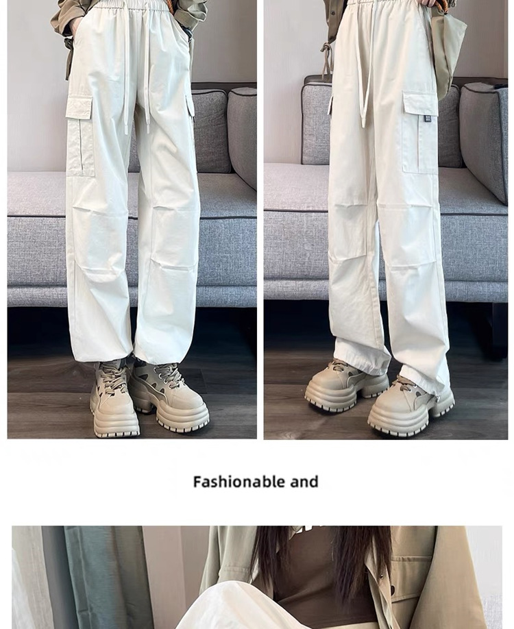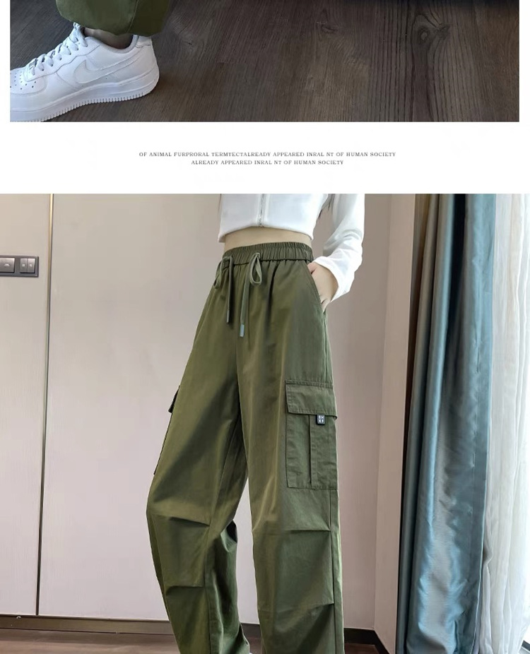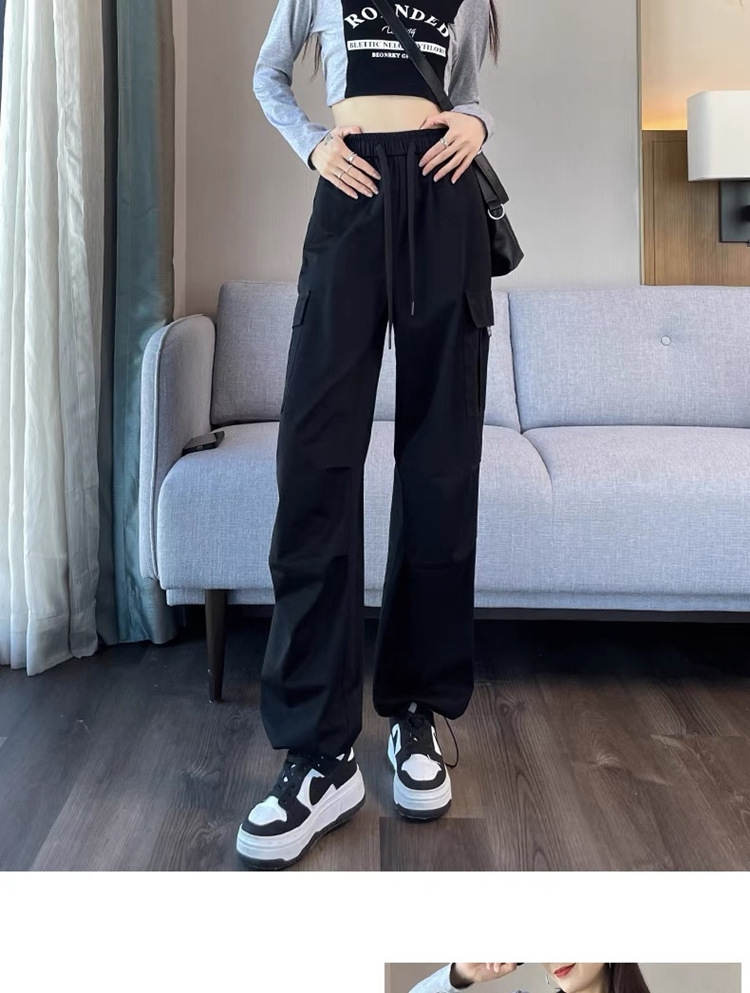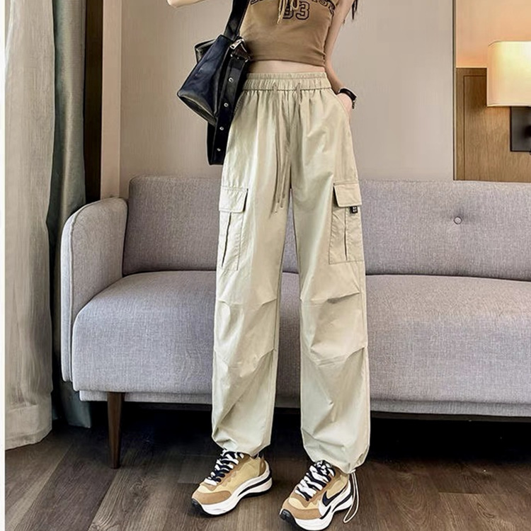 작업복 여성의 2025 새로운 봄과 여름 느슨한 높은 허리 다리 드로스트링 미국 스타일 작은 넓은 다리 등산 스포츠 바지스토어 가기