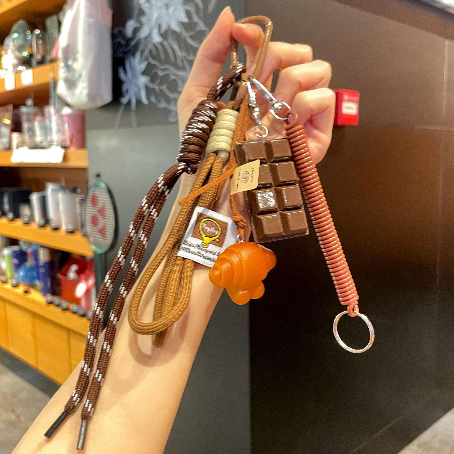 Miu 스타일 귀여운 알칼리성 물 빵 펜던트 한국 스타일 Ins 틈새 수제 짠 초콜릿 키 체인 장식 매달려 체인