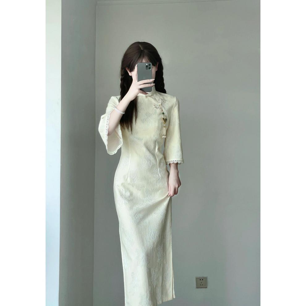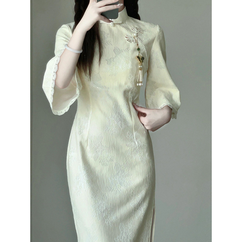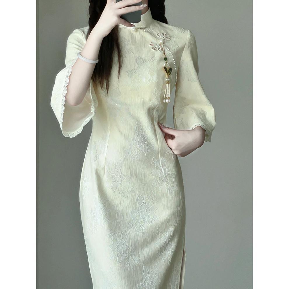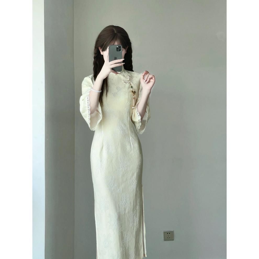 청삼 중국 스타일 미스 2025 반전 슬리브 강남 스타일 전통 개선 원피스 틈새 디자인 새로운 감각스토어 가기