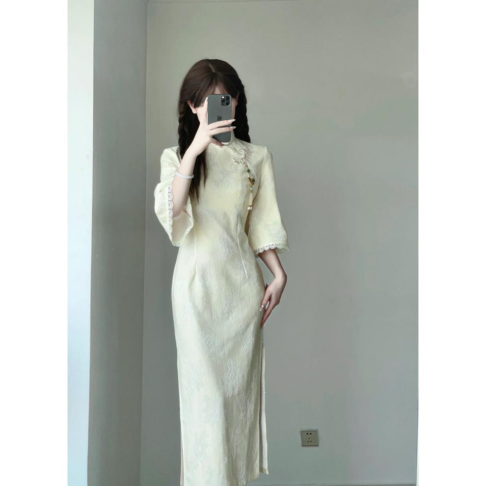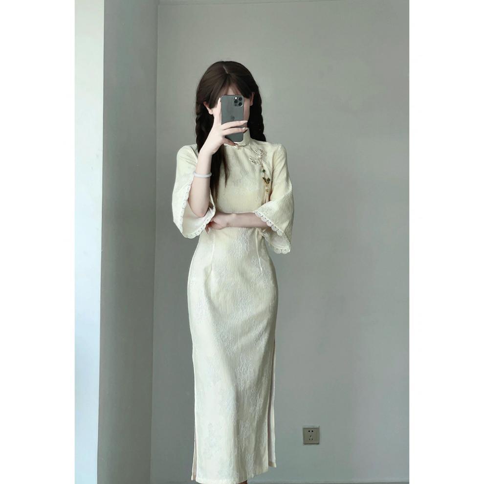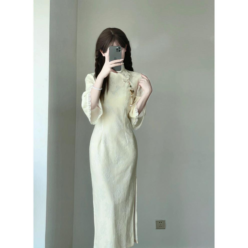 청삼 중국 스타일 미스 2025 반전 슬리브 강남 스타일 전통 개선 원피스 틈새 디자인 새로운 감각스토어 가기