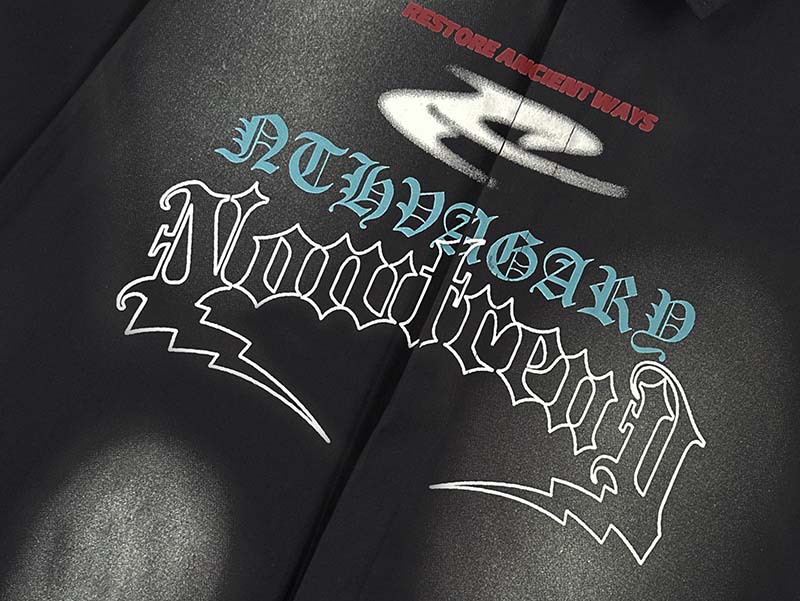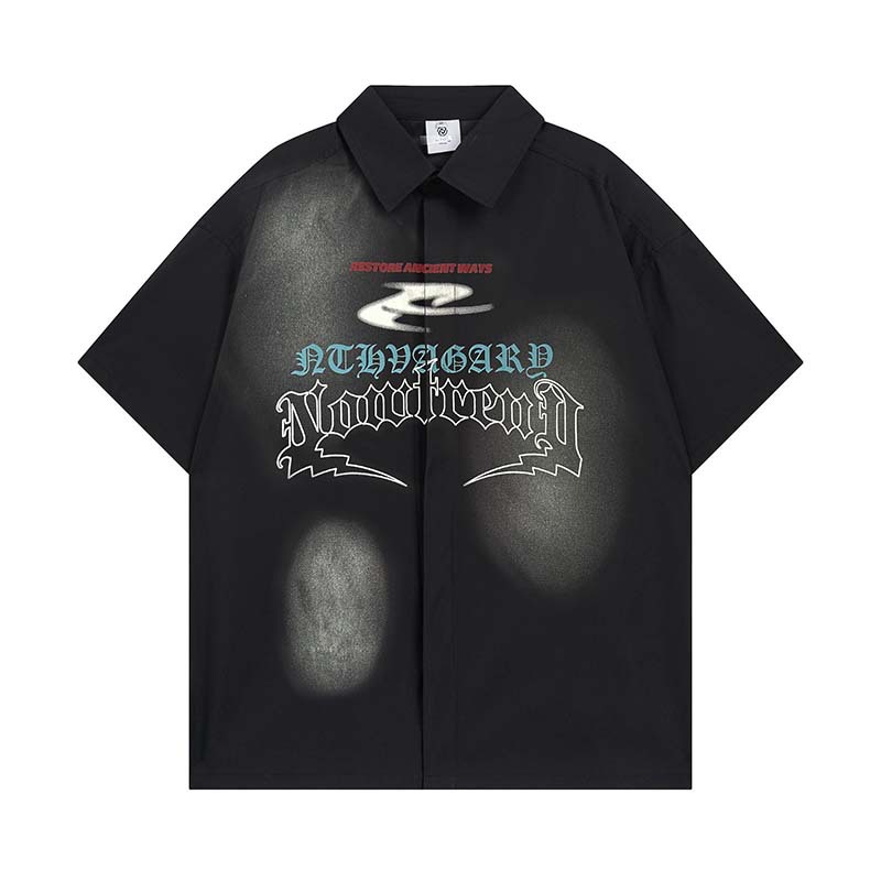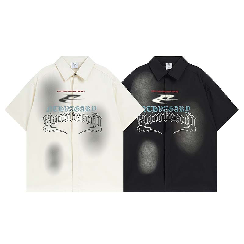 미국식 레트로 레터 인쇄 제트 페인트 더러운 반팔 셔츠 남성 스트리트 패션 브랜드 루즈 올 매치 셔츠
