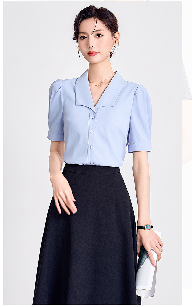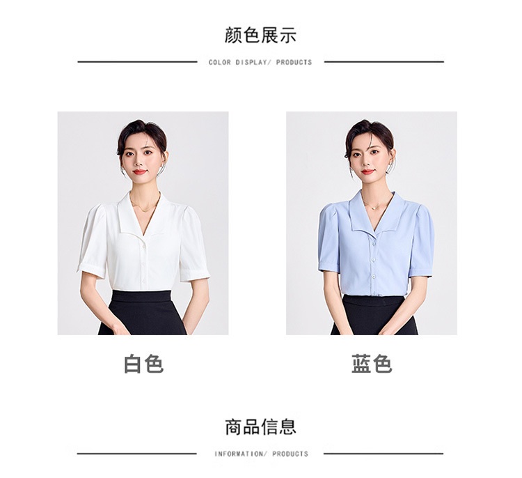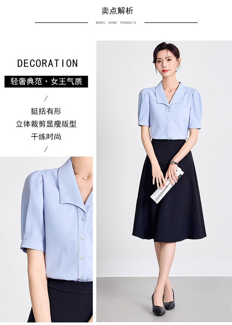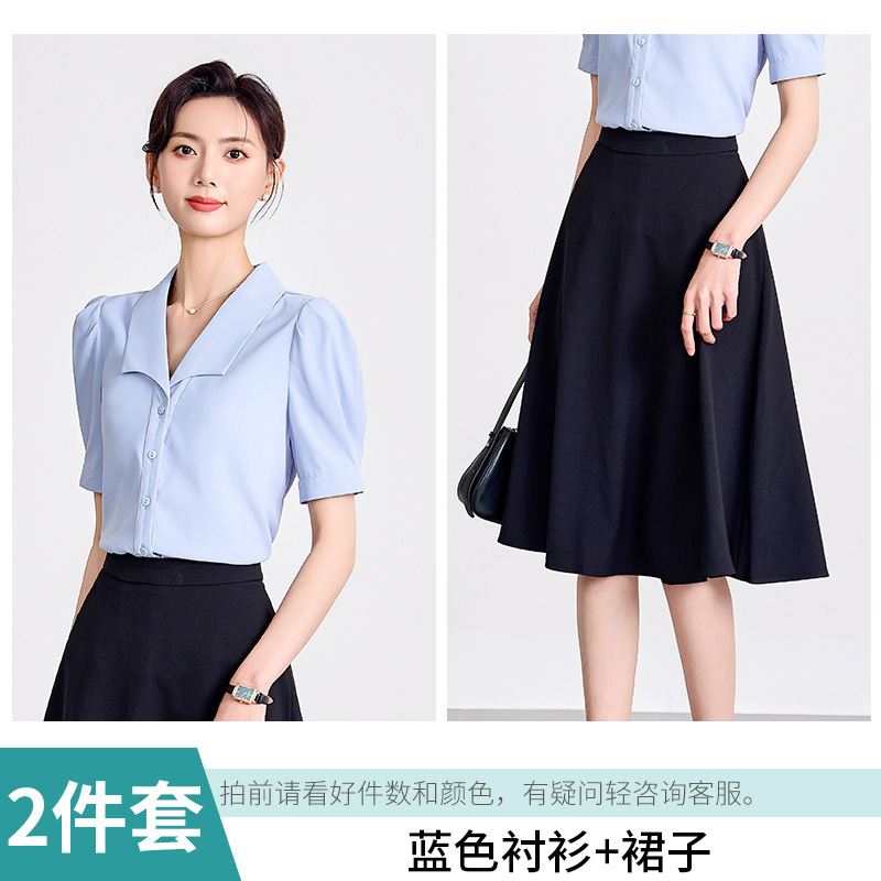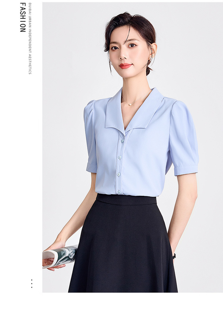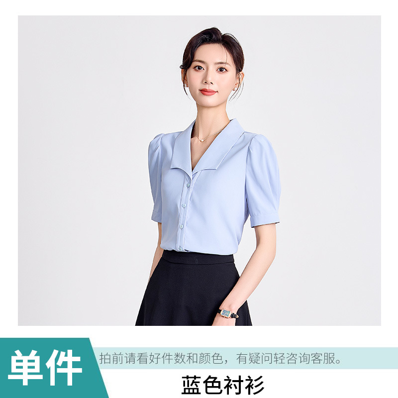 블루 반팔 쉬폰 셔츠 여자 2025 여름 새 스타일 UGC 입고 인터뷰 탑 작은 프로 셔츠스토어 가기