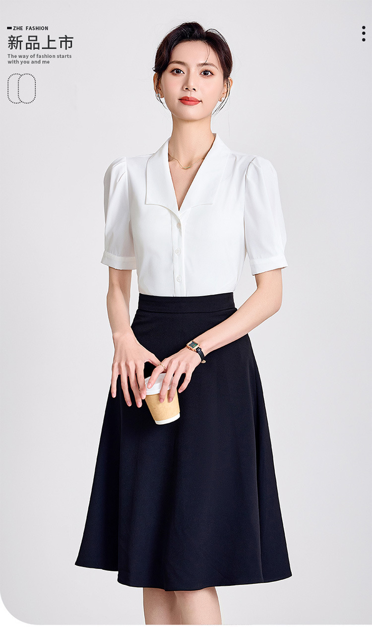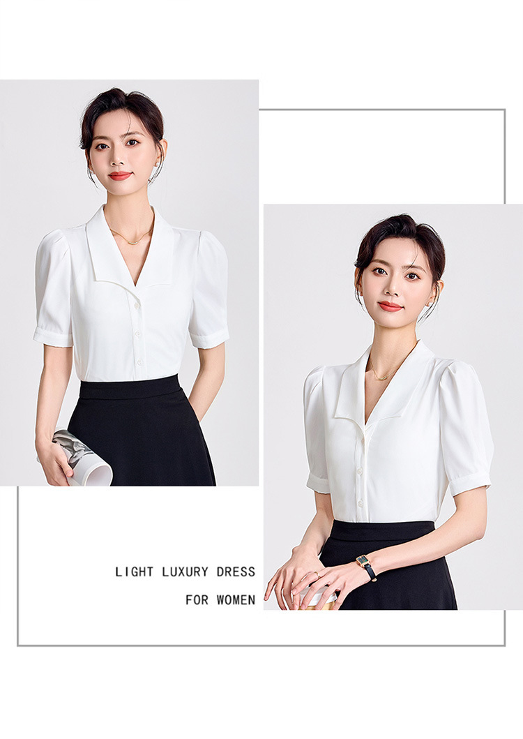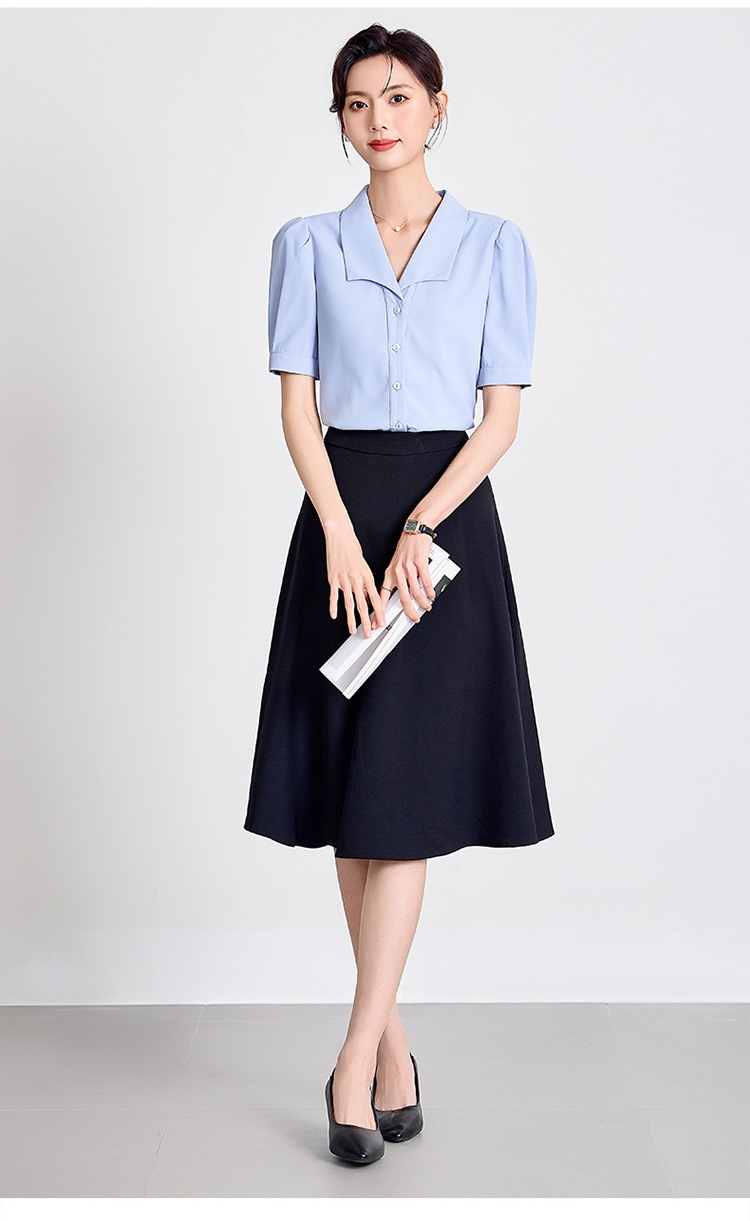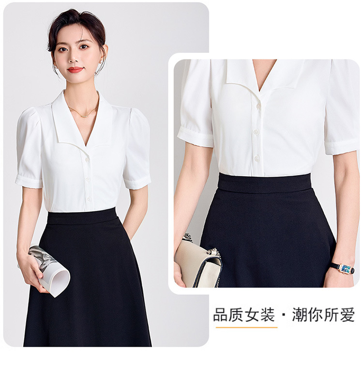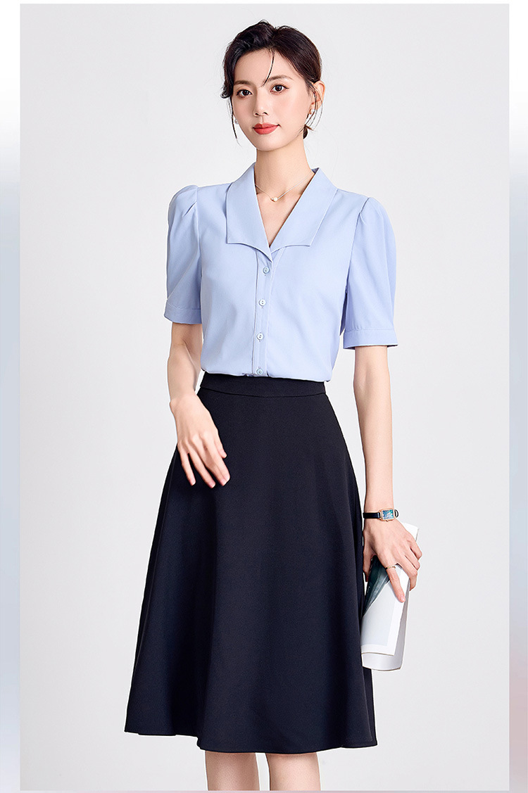 블루 반팔 쉬폰 셔츠 여자 2025 여름 새 스타일 UGC 입고 인터뷰 탑 작은 프로 셔츠스토어 가기