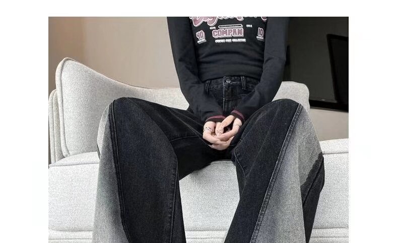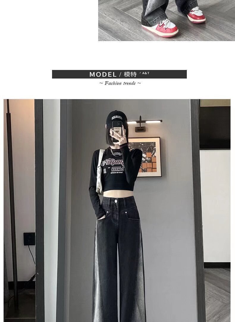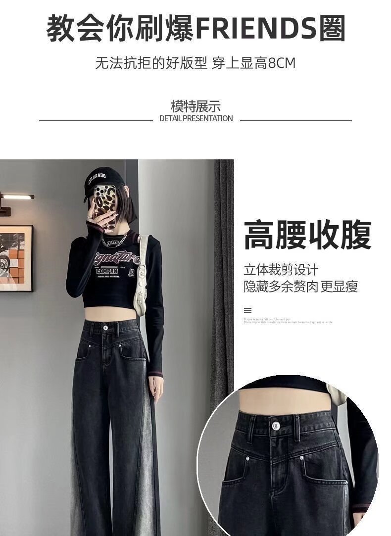 봄과 가을 2024 새로운 블랙 와이드 레그 청바지 여성용 그라디언트 높은 허리 느슨한 슬리밍 올 매치 퍼팅 바지 바지스토어 가기