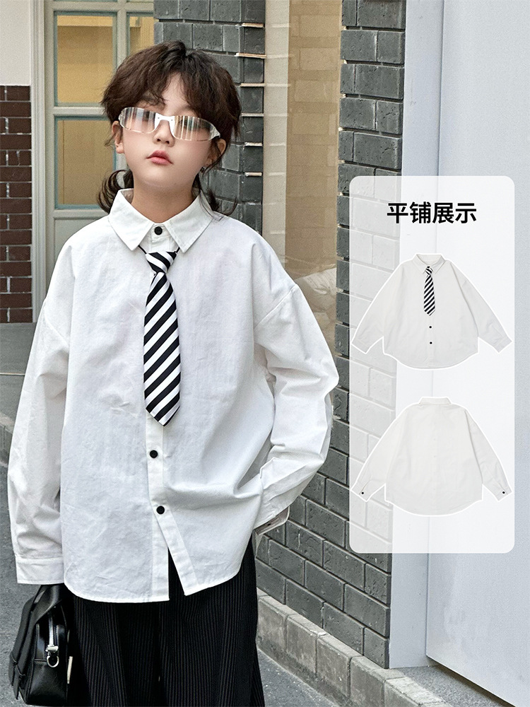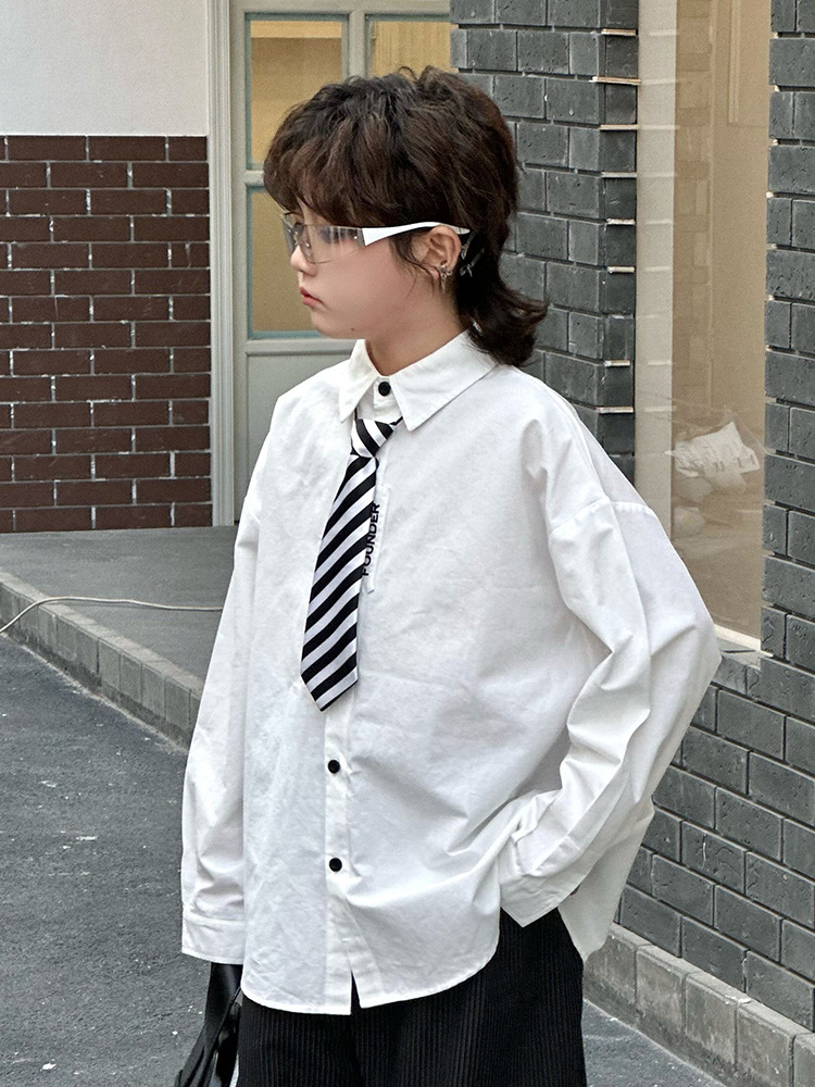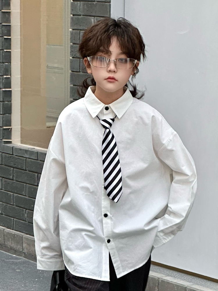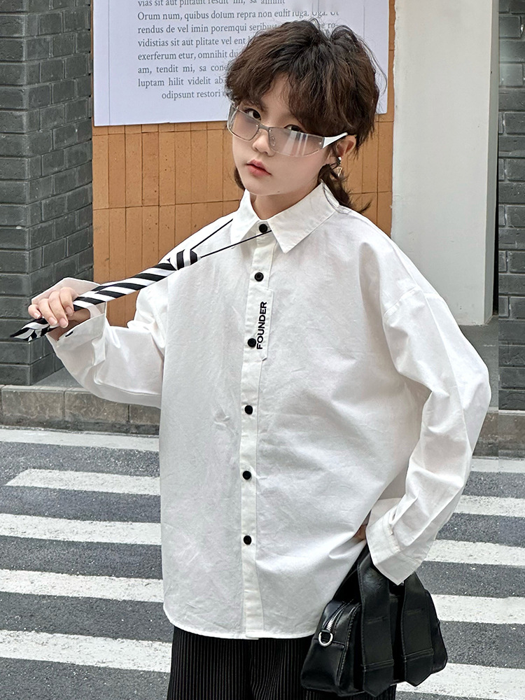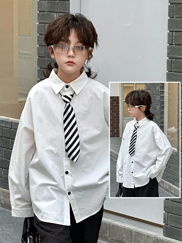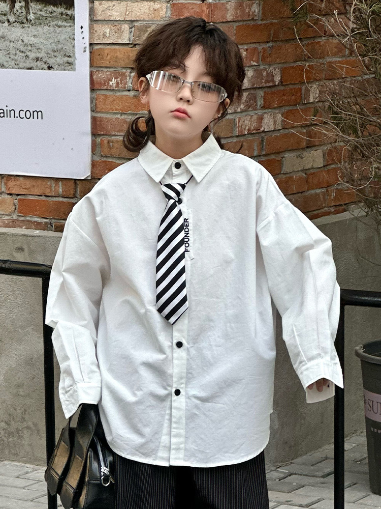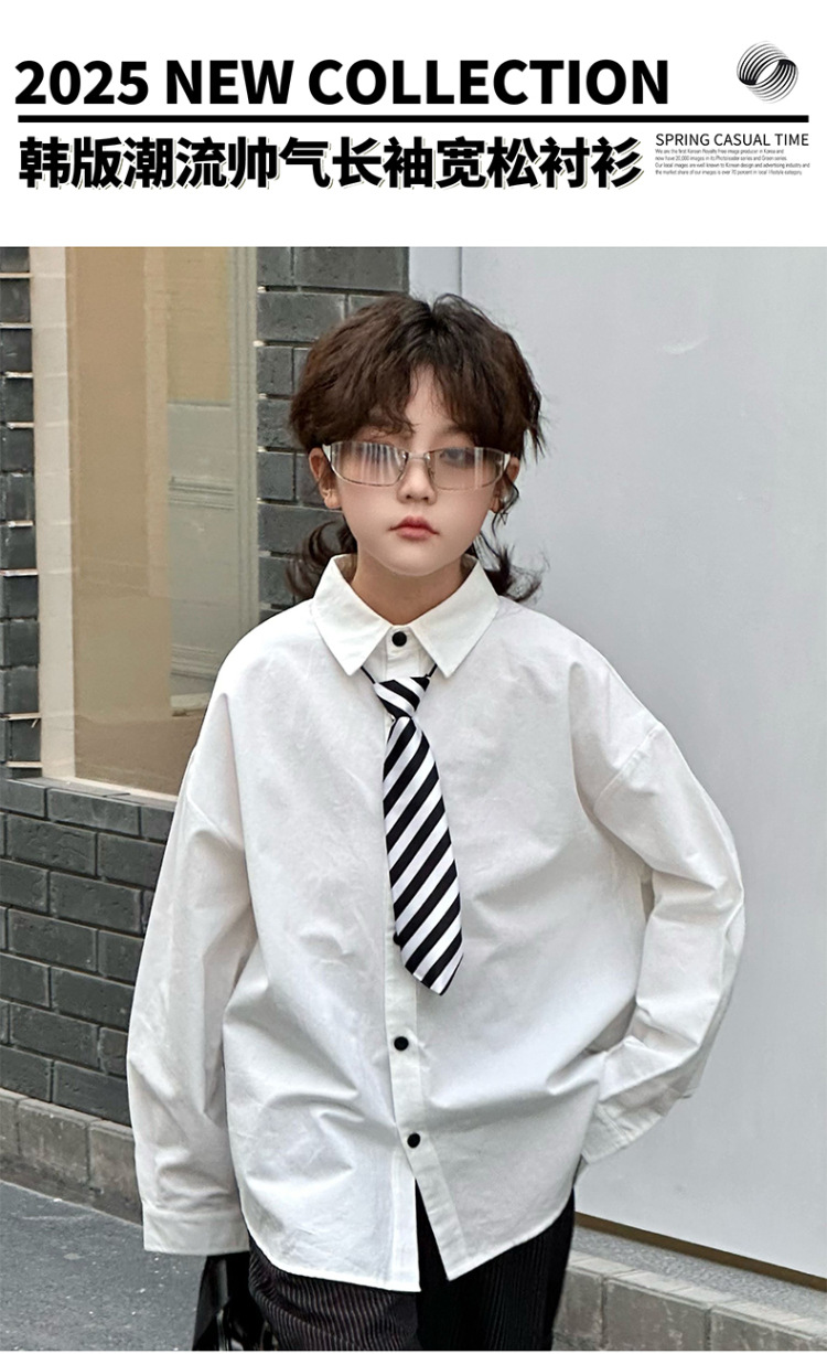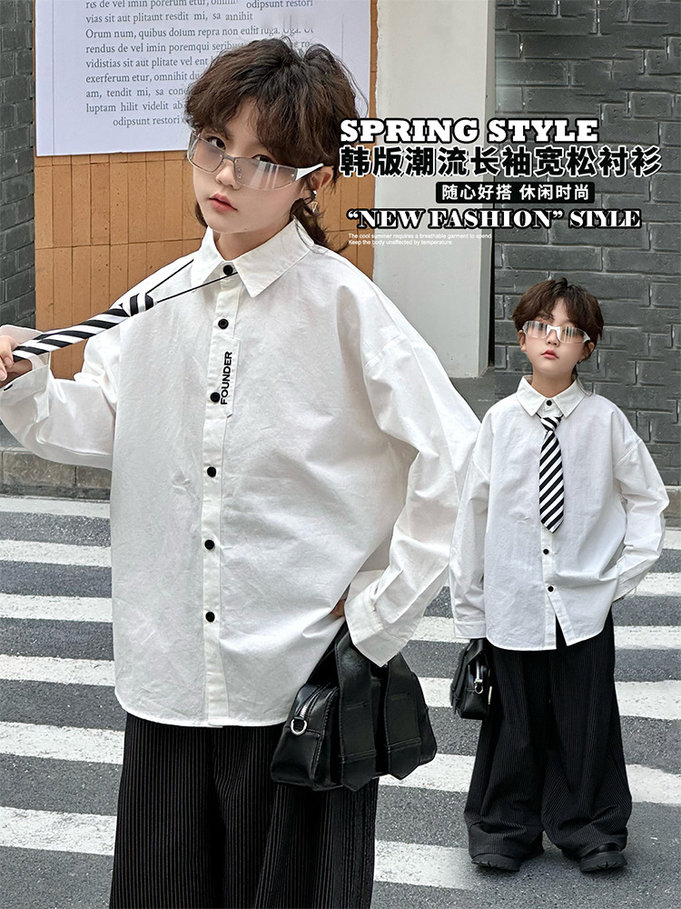 봄 소년 셔츠 2025 봄 새로운 한국식 유행 자수 느슨한 긴팔 셔츠