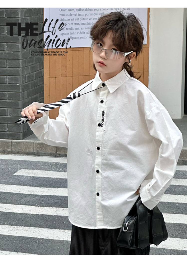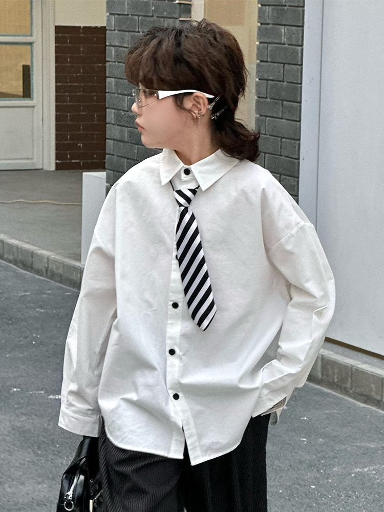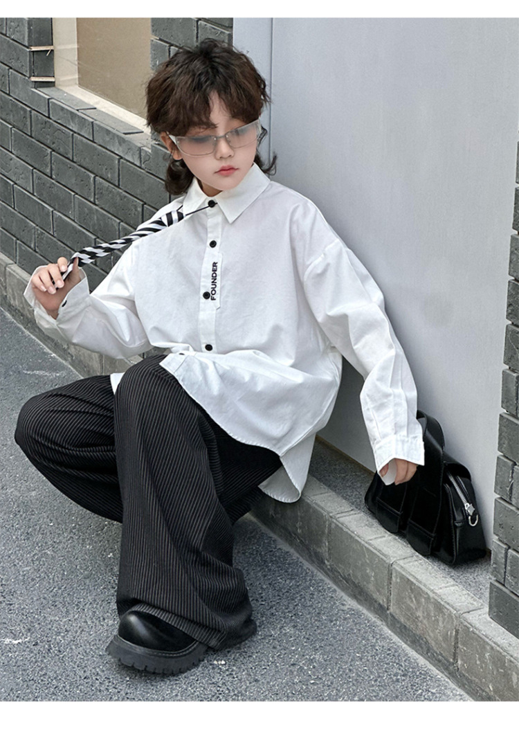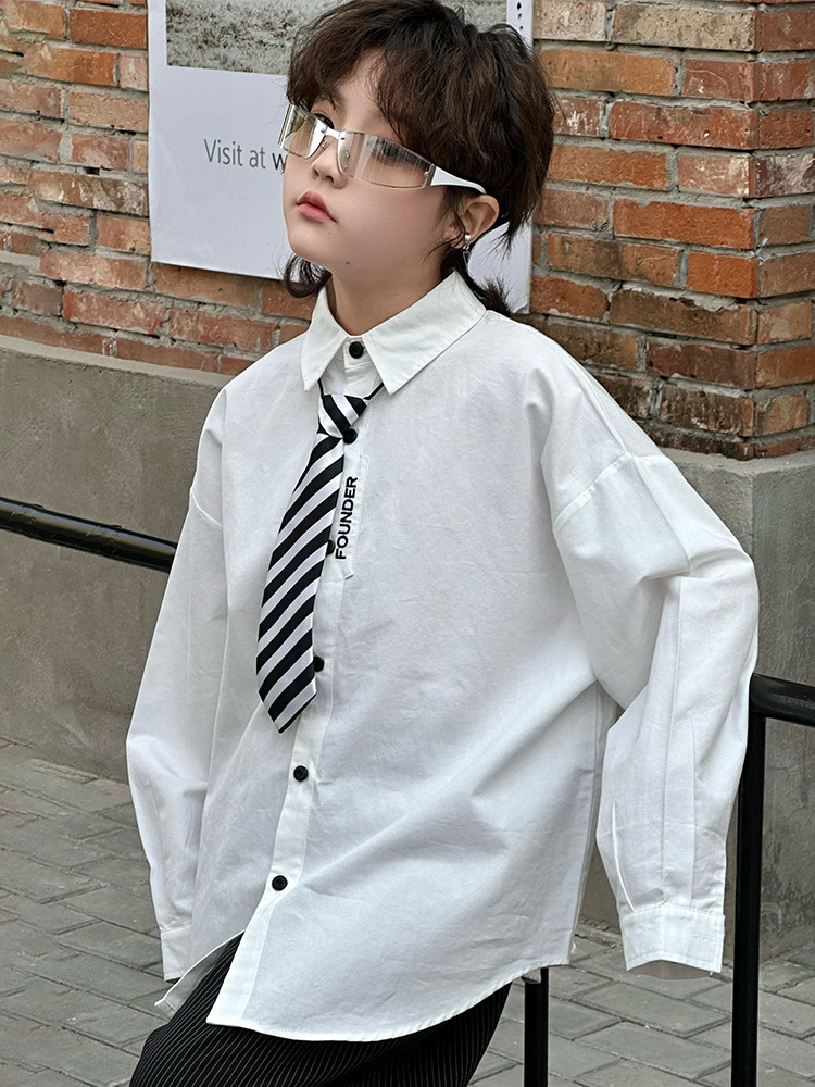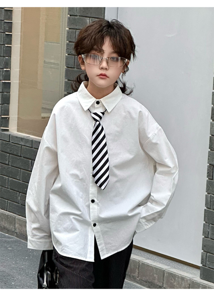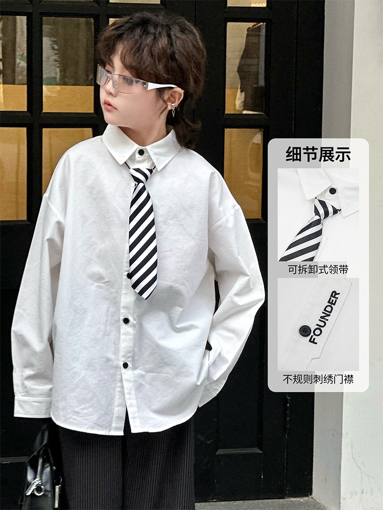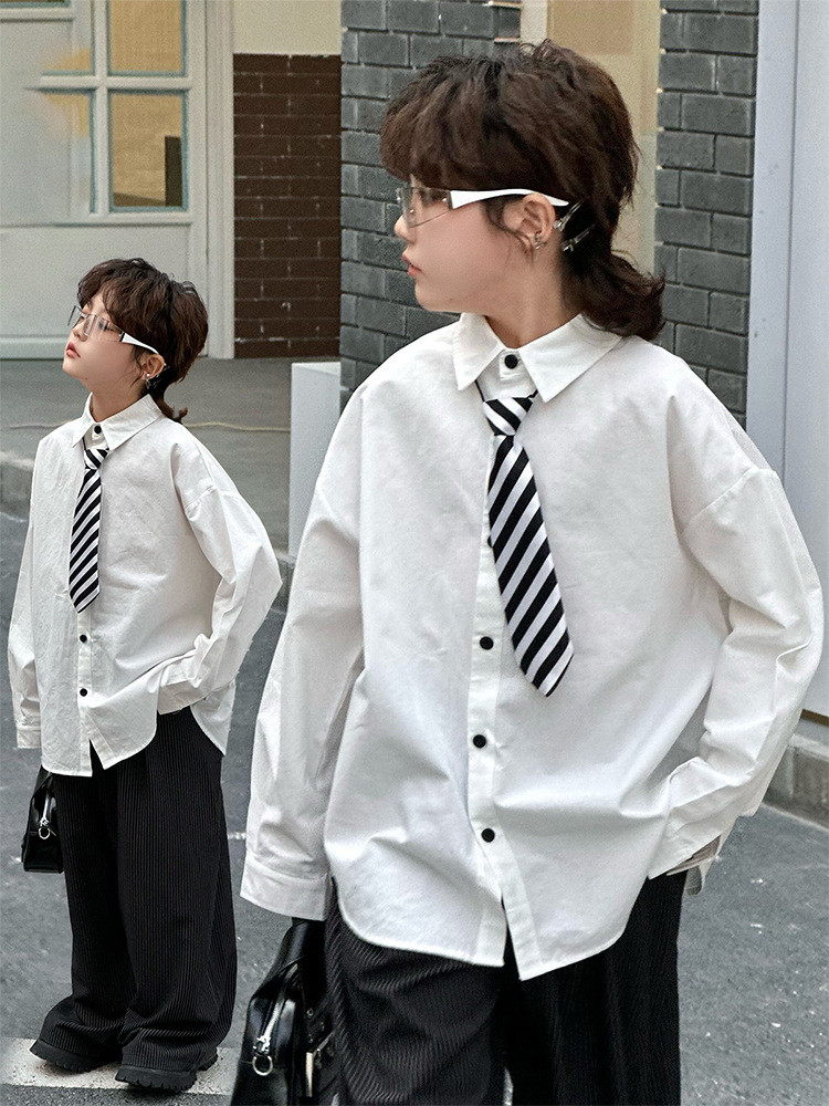 봄 소년 셔츠 2025 봄 새로운 한국식 유행 자수 느슨한 긴팔 셔츠