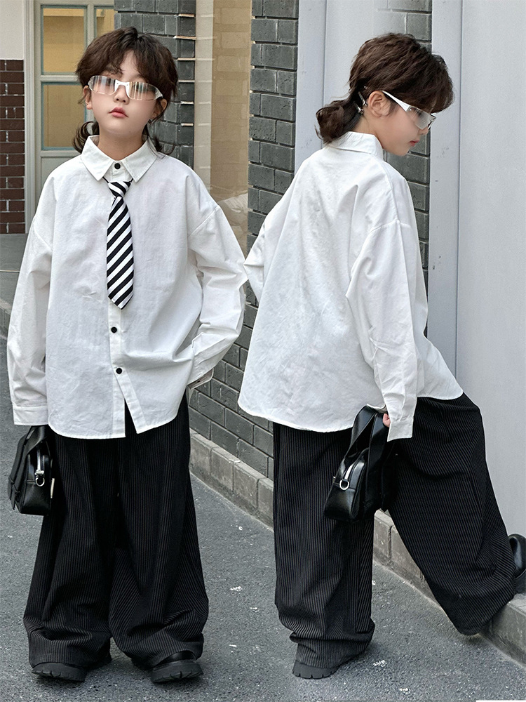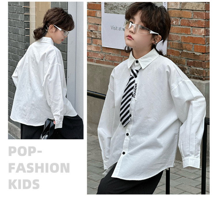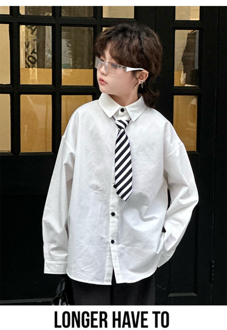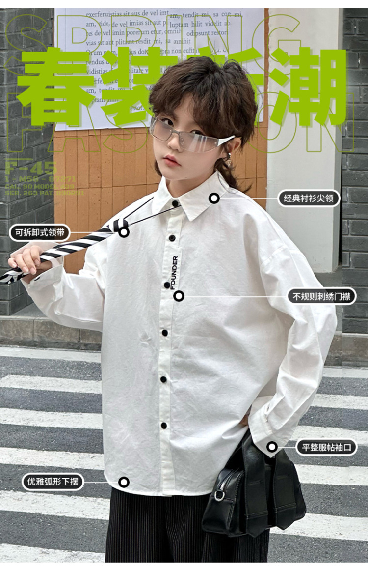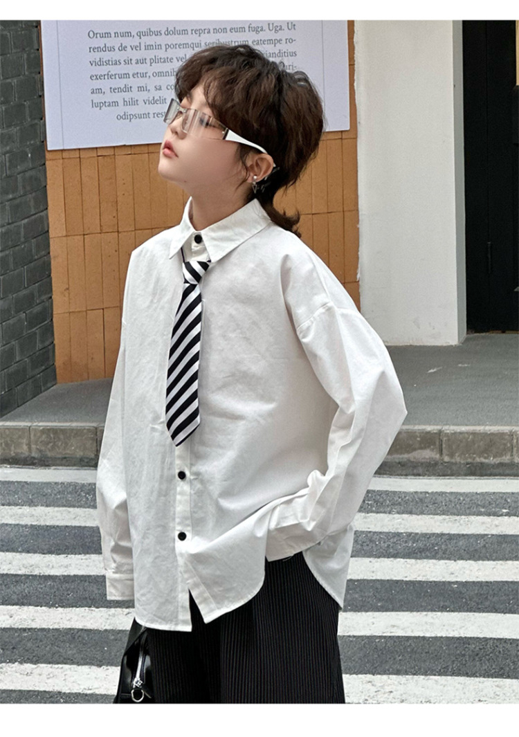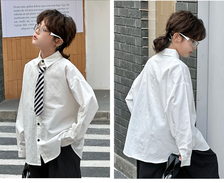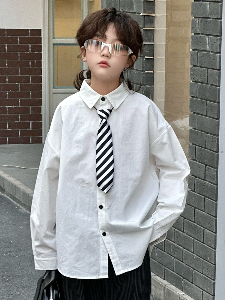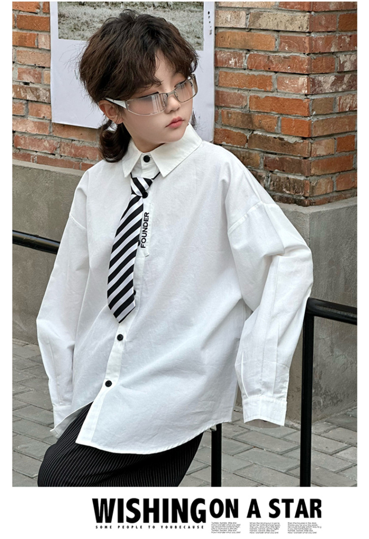 봄 소년 셔츠 2025 봄 새로운 한국식 유행 자수 느슨한 긴팔 셔츠