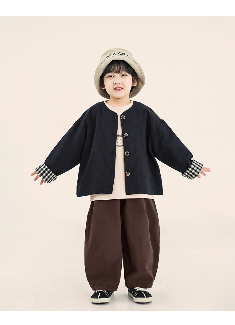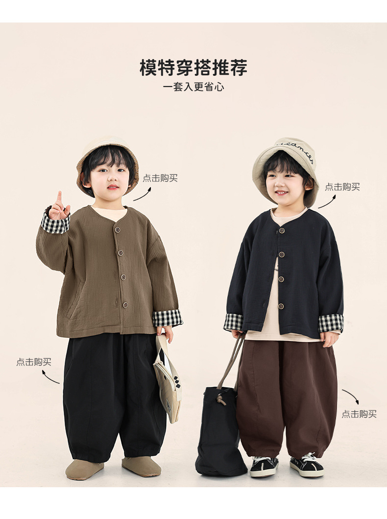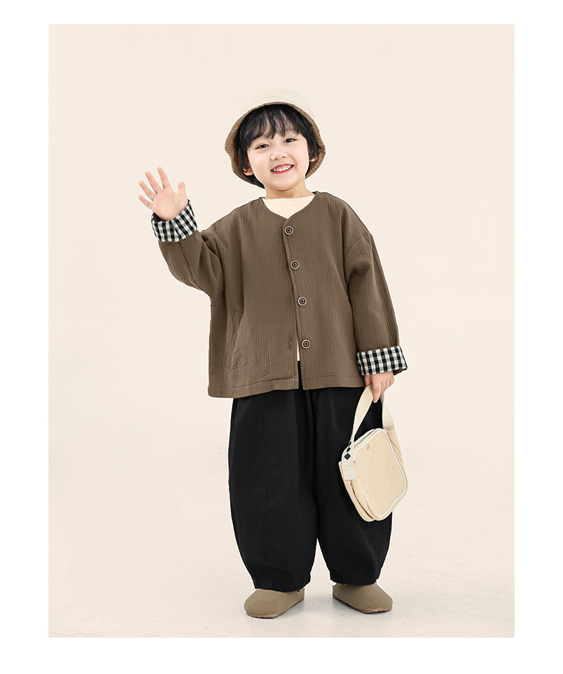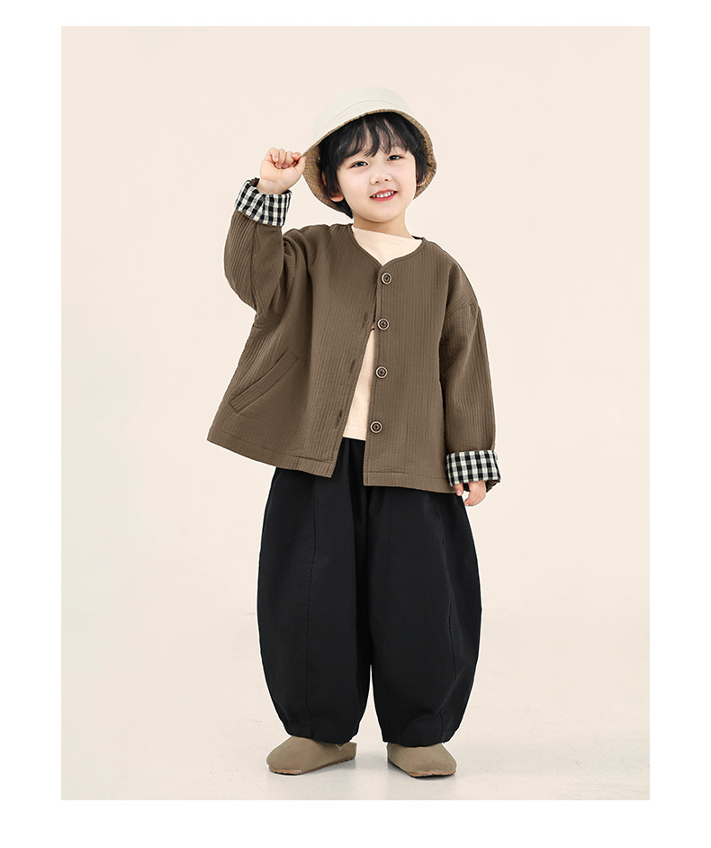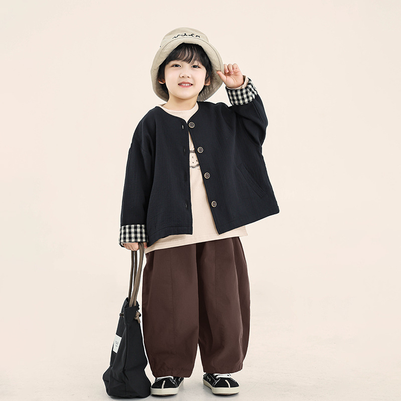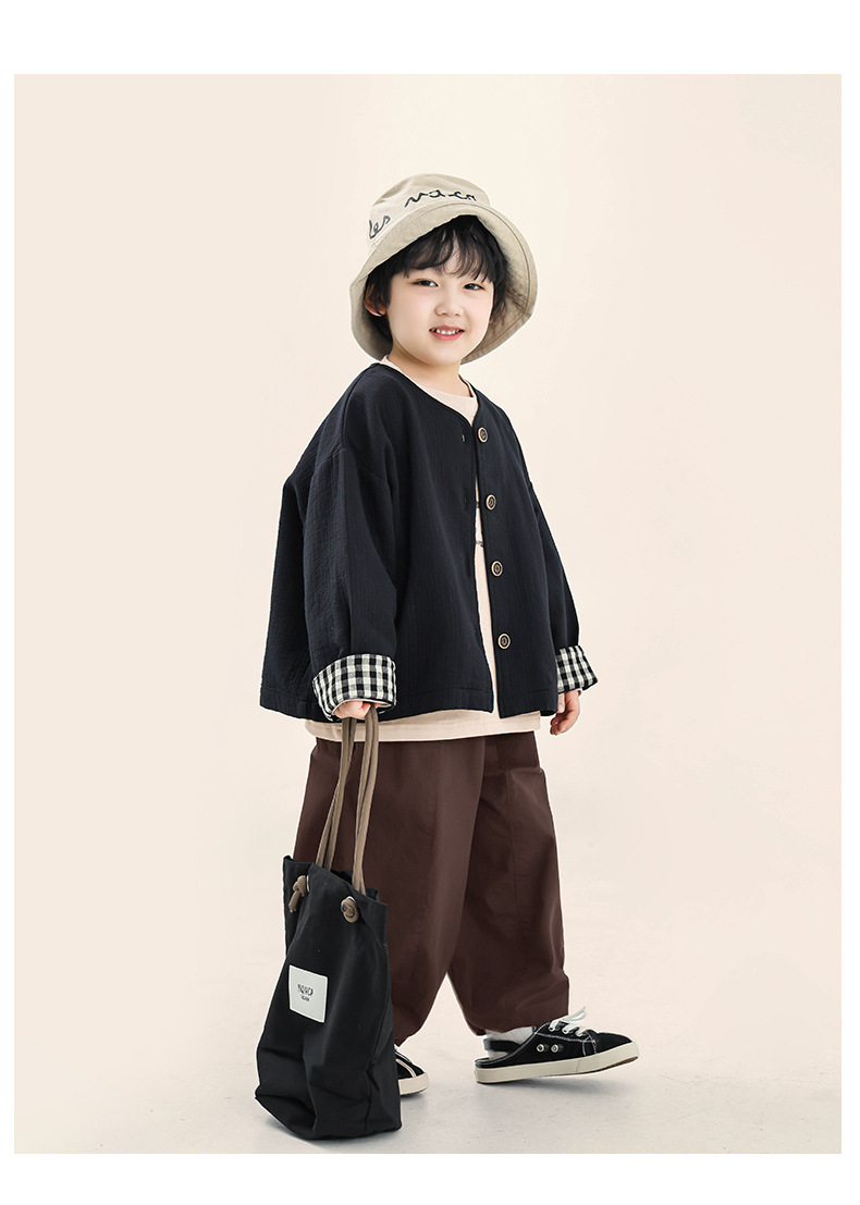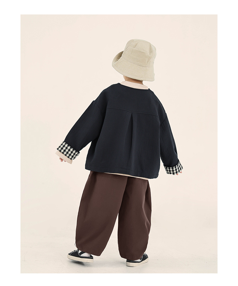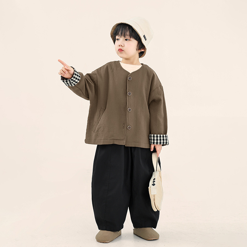 창구아동복 남아 자켓 가을 신상 아동 봄가을 체크 배색 상의 유아복 레트로 가디건