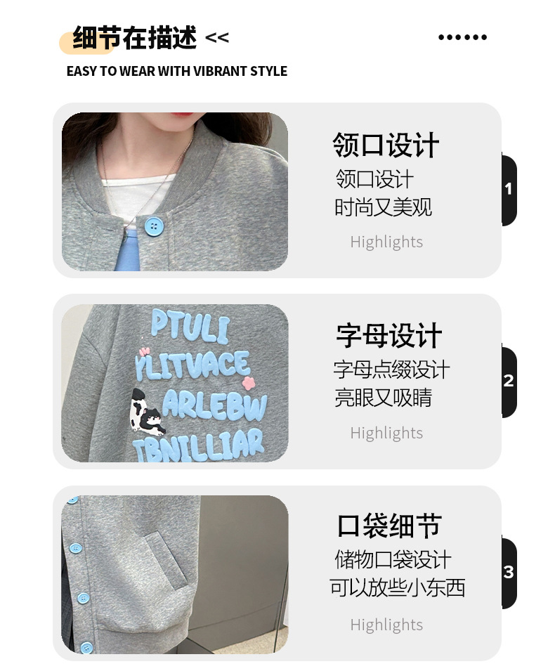 여자 봄 알파벳 야구 세트 2025 새로운 서양식 소녀 봄 가을 한국 스타일 스웨터 캐주얼 카디건 재킷스토어 가기