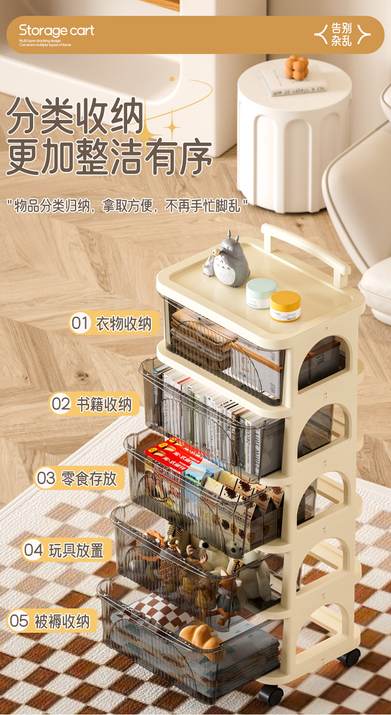 이동식 카트 스토리지 랙 다층 아기 제품 스낵 장난감 스토리지 랙 주방 거실 침실 유니버설스토어 가기
