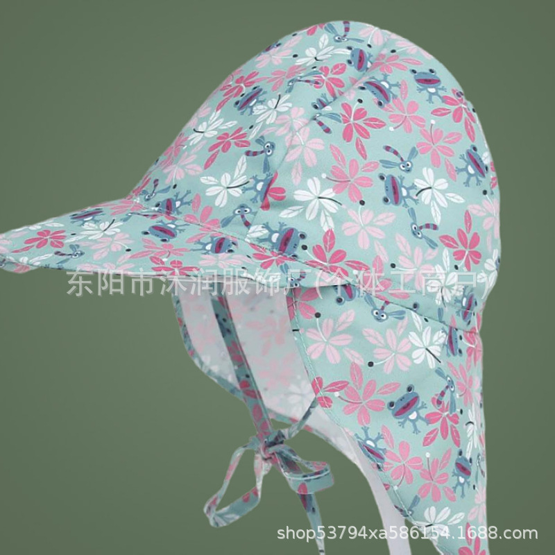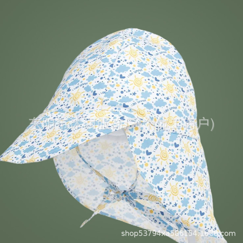 재고 일본 아기 봄과 여름 그늘 어부 모자 인쇄 어린이 모자 야외 놀이 선 스크린 목 보호 목도리 모자스토어 가기