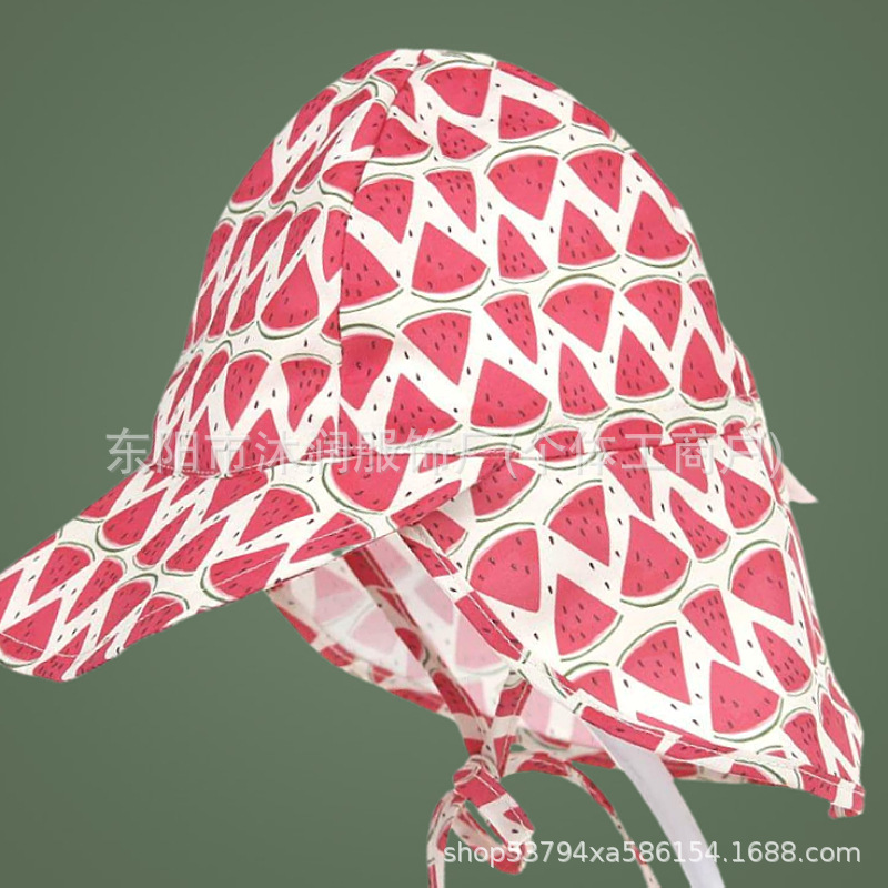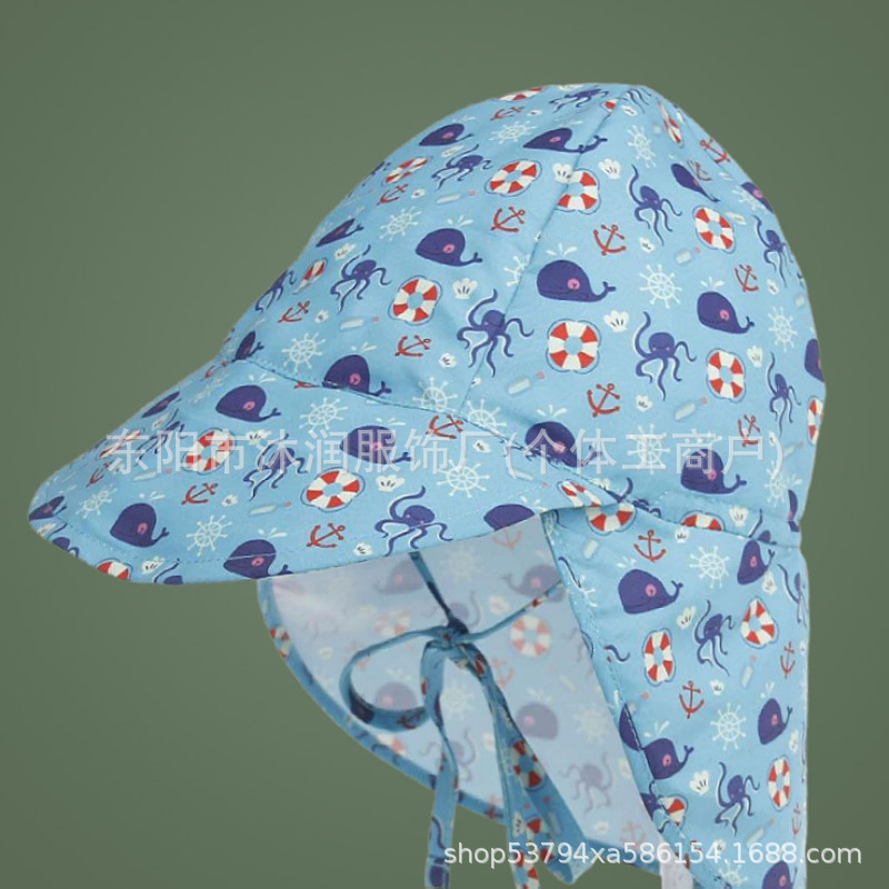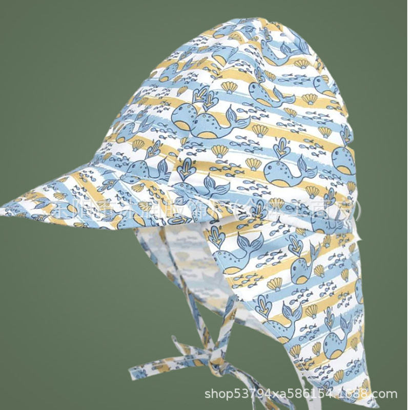 재고 일본 아기 봄과 여름 그늘 어부 모자 인쇄 어린이 모자 야외 놀이 선 스크린 목 보호 목도리 모자